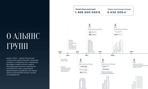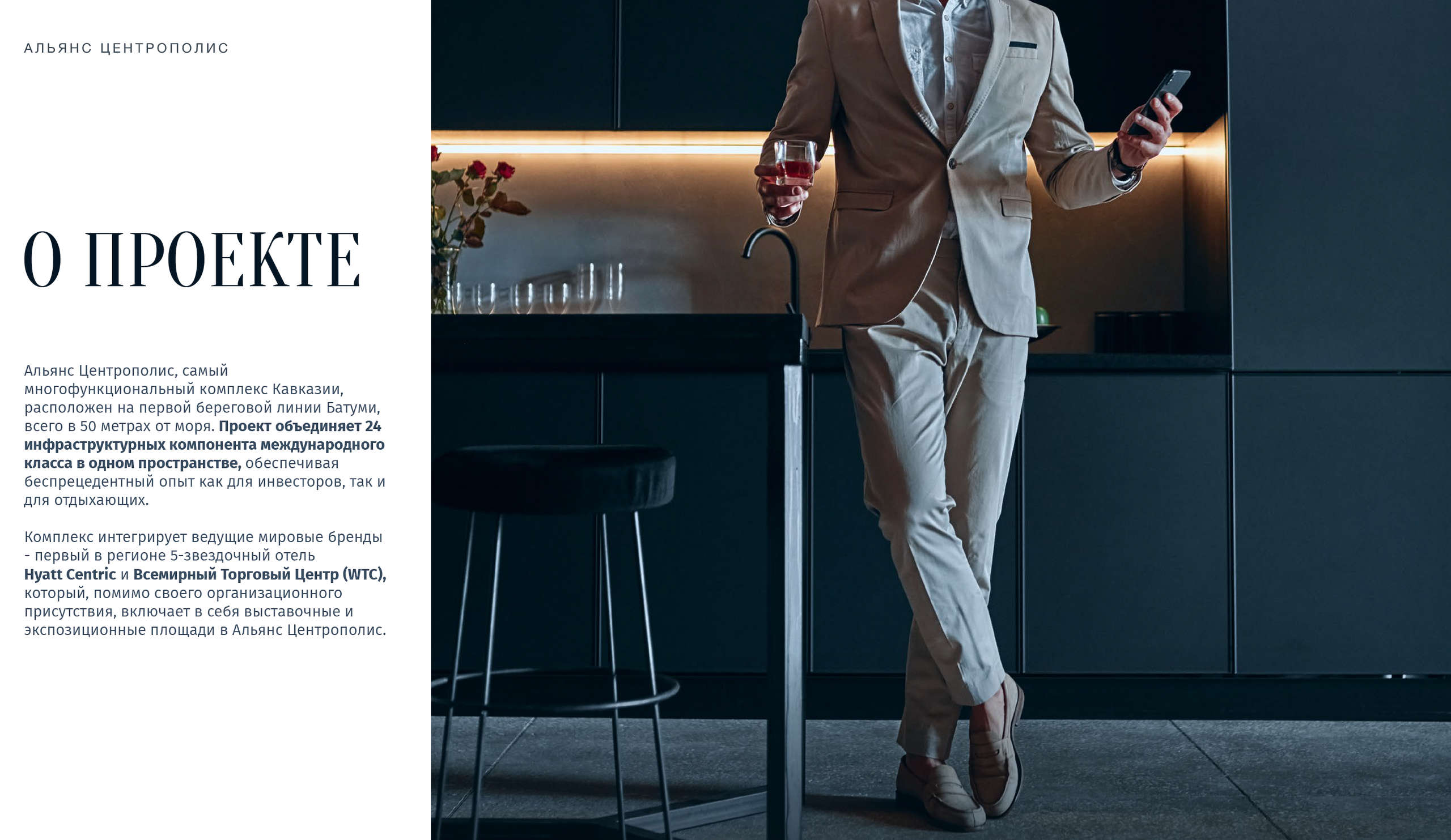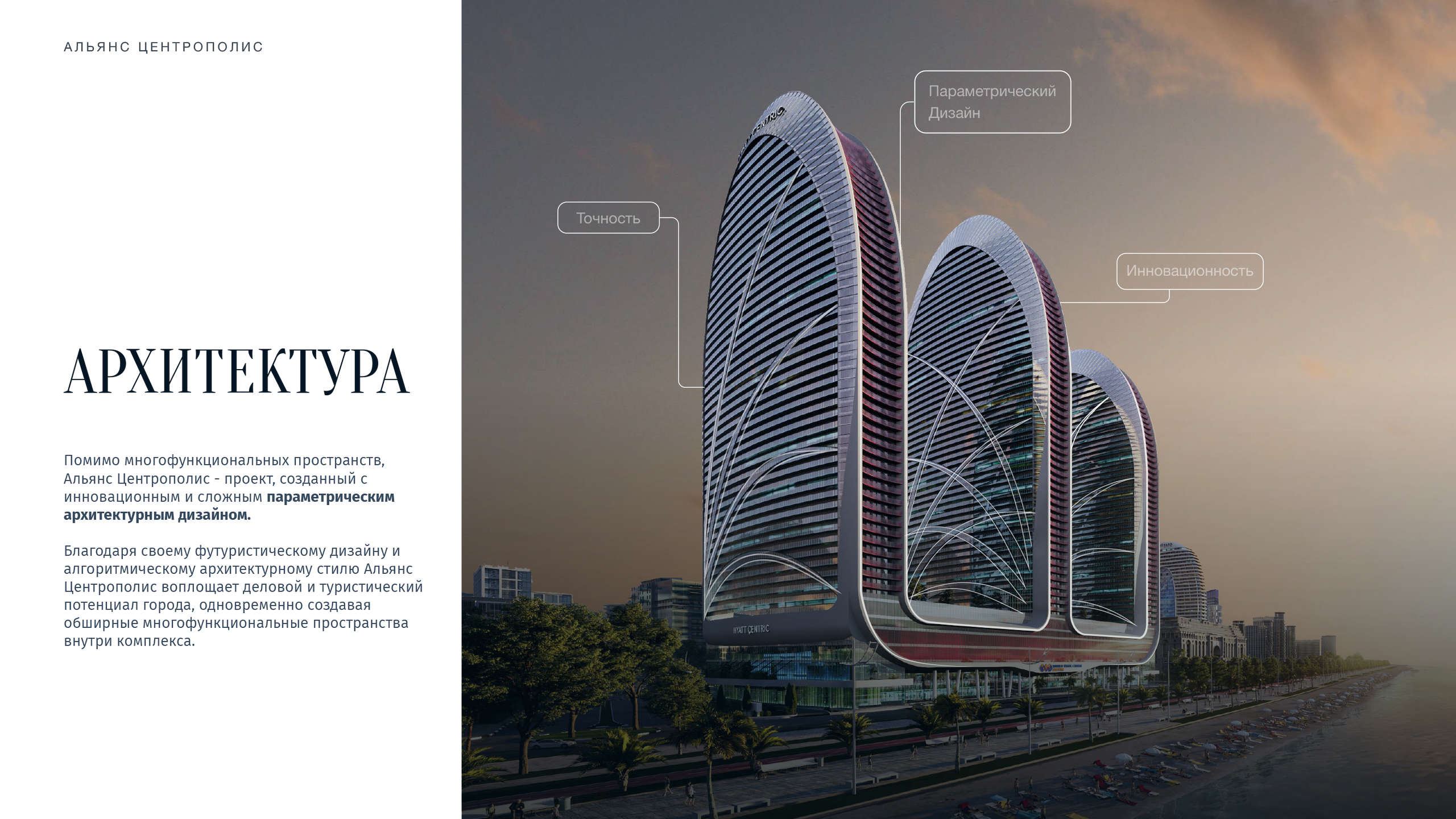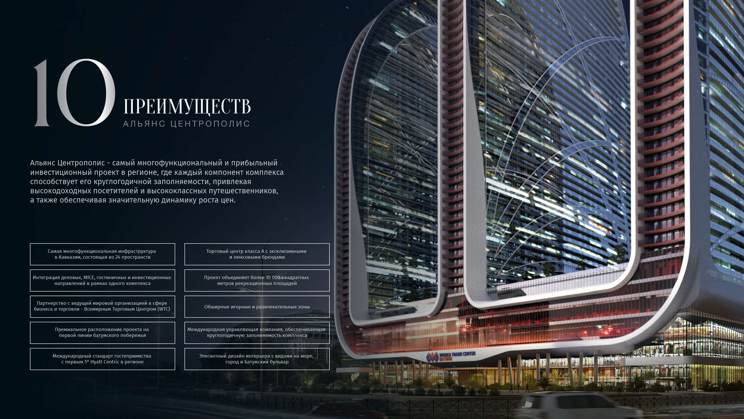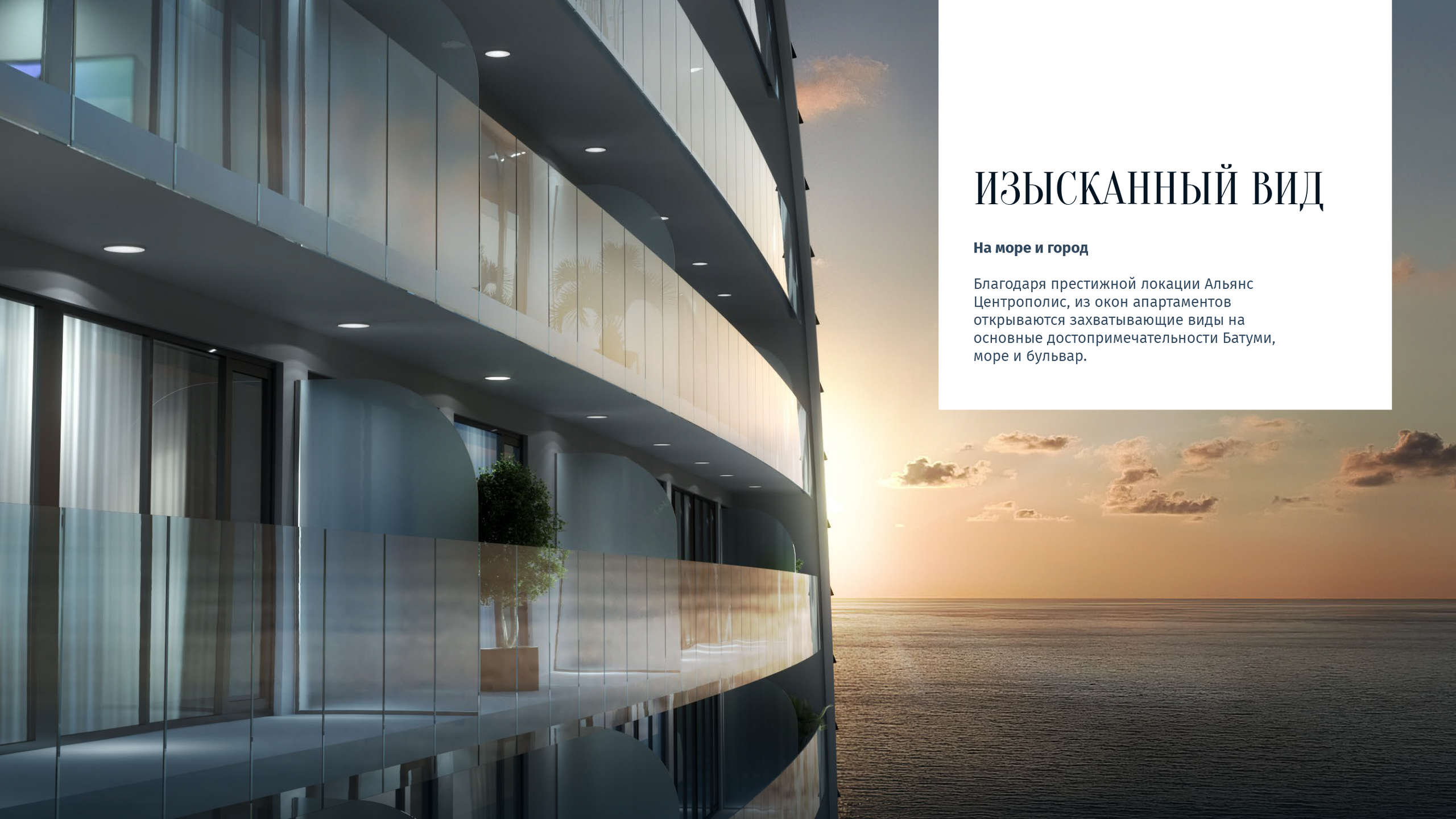 Alliance Centropolis — флагманский проект на первой линии Чёрного моря, в сердце Батуми. Комплекс объединяет апартаменты, 5-звёздочный отель Hyatt Centric, торговый центр класса А и бизнес-пространства международного уровня.