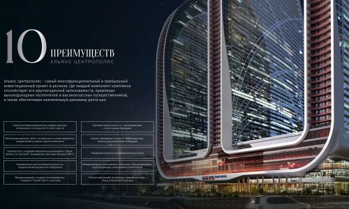 Покупка апартаментов в Alliance Centropolis — это инвестиция в ликвидную недвижимость с доходностью от аренды и стабильным ростом стоимости. Проект реализуется при поддержке международной управляющей компании, что обеспечивает высокий уровень сервиса и заполняемости круглый год.