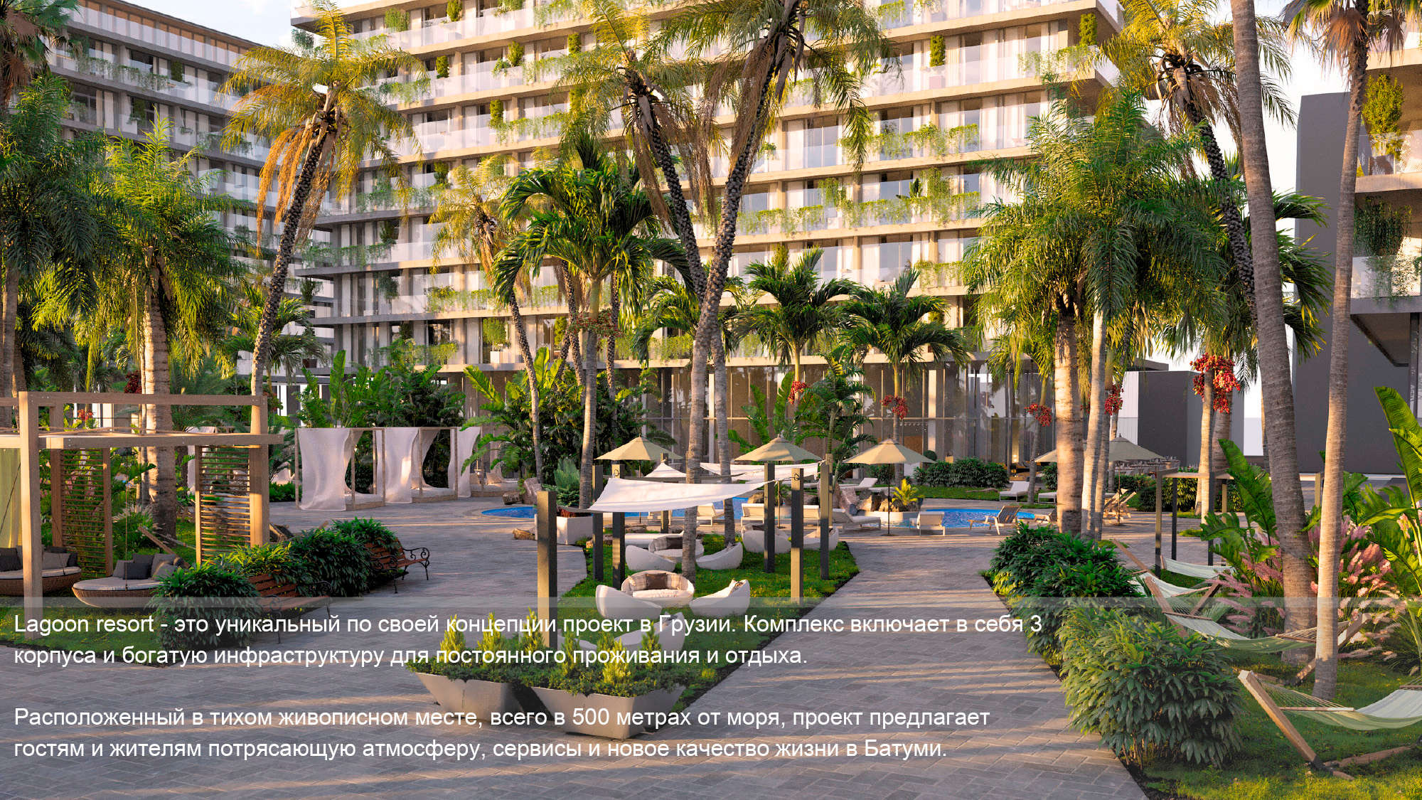 Lagoon resort - это уникальный по своей концепции проект в Грузии. Комплекс включает в себя 3 корпуса и богатую инфраструктуру для постоянного проживания и отдыха.