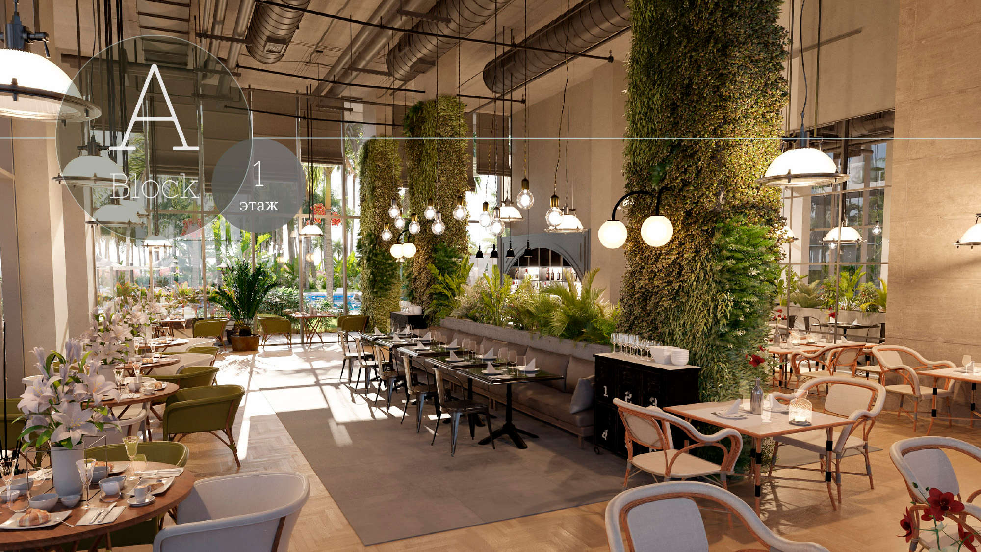 - 1 этаж – лобби, ресторан, SPA