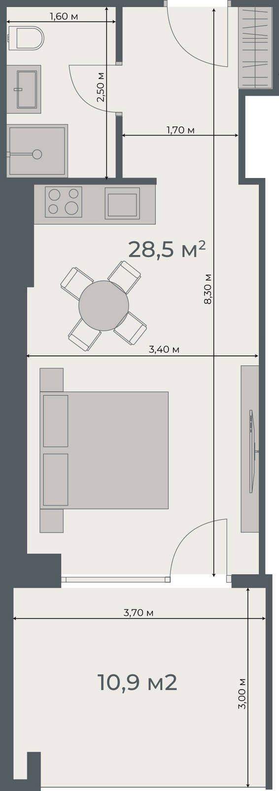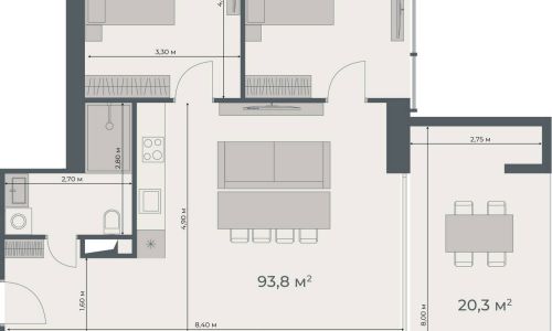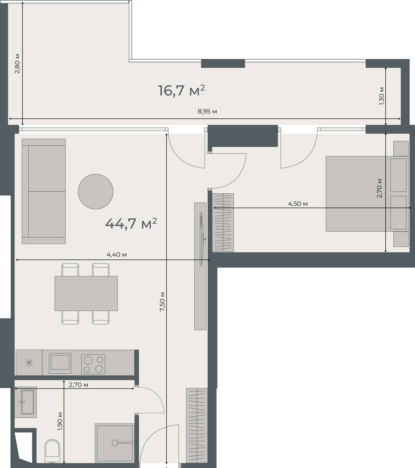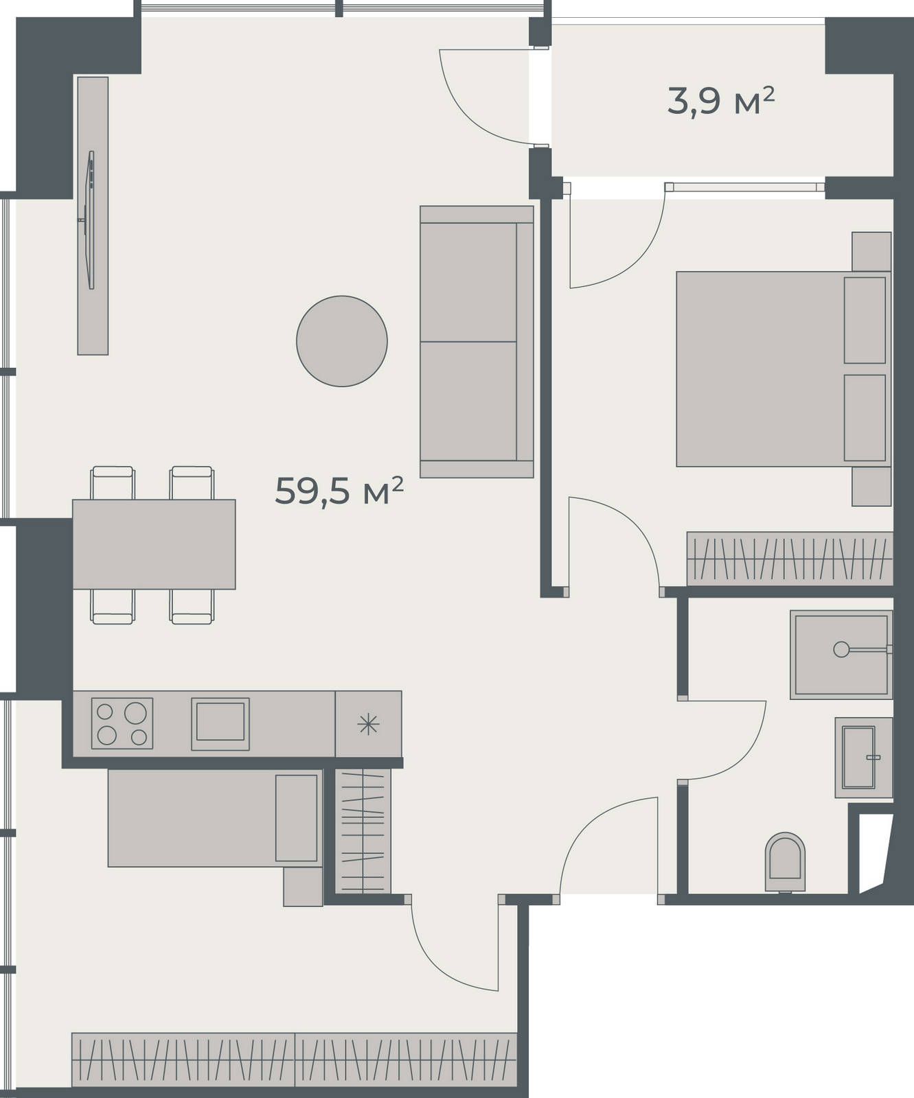 межкомнатных дверей, входной двери, кухонного гарнитура, сантехники, розеток, выключателей, светильников и радиаторов отопления) - Под ключ + 515€/м²