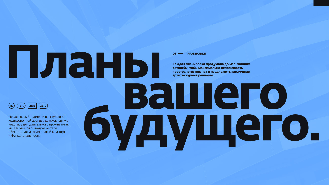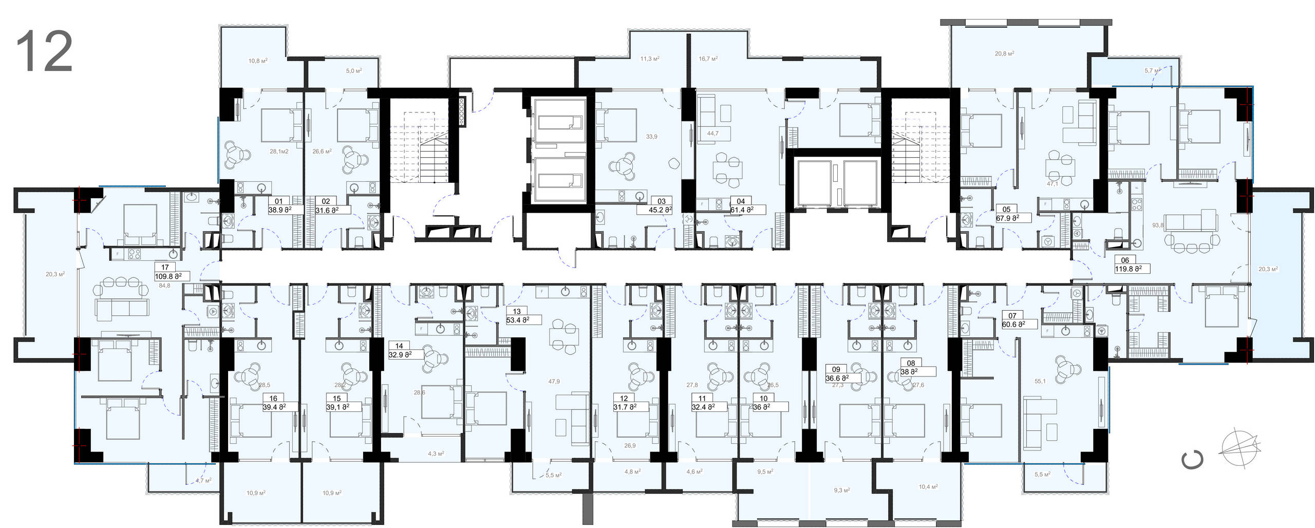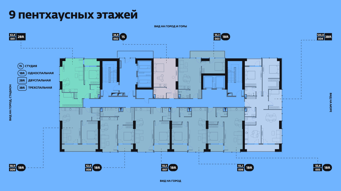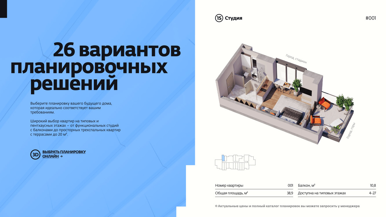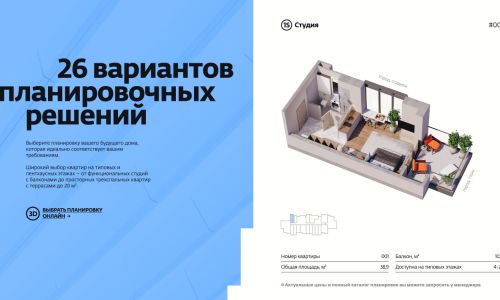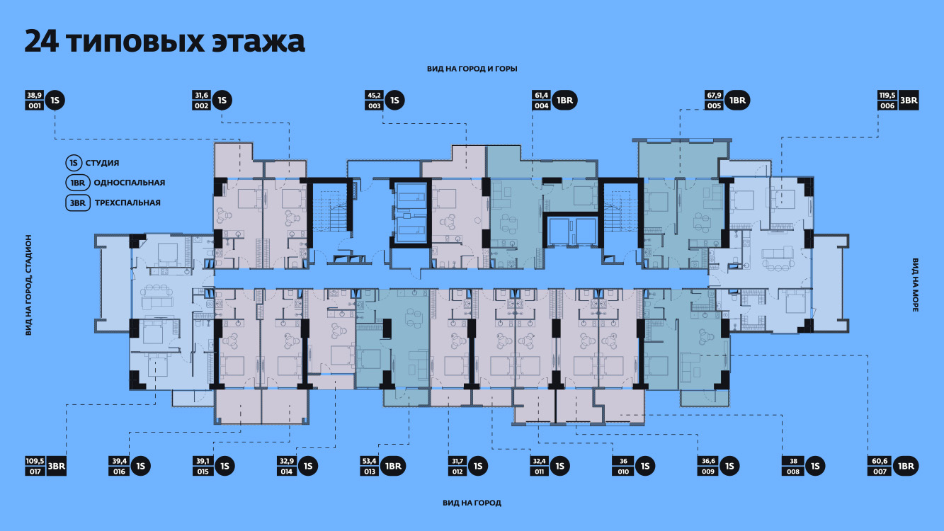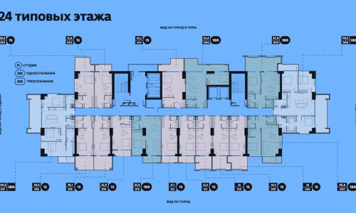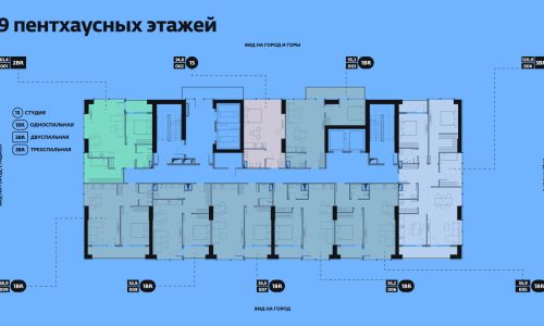 24 этажа - 9 пентхаусных этажей - 26 планировочных решений