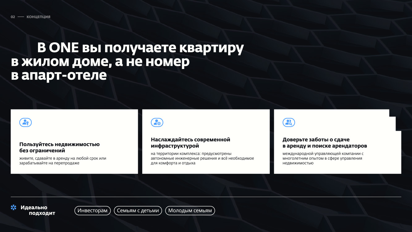 В ONE вы получаете квартиру в жилом доме, а не номер