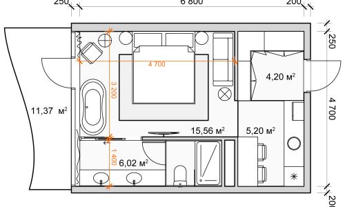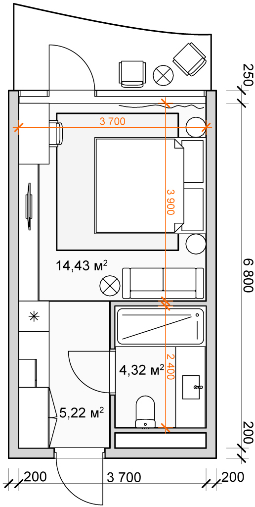 План квартиры 1+0
