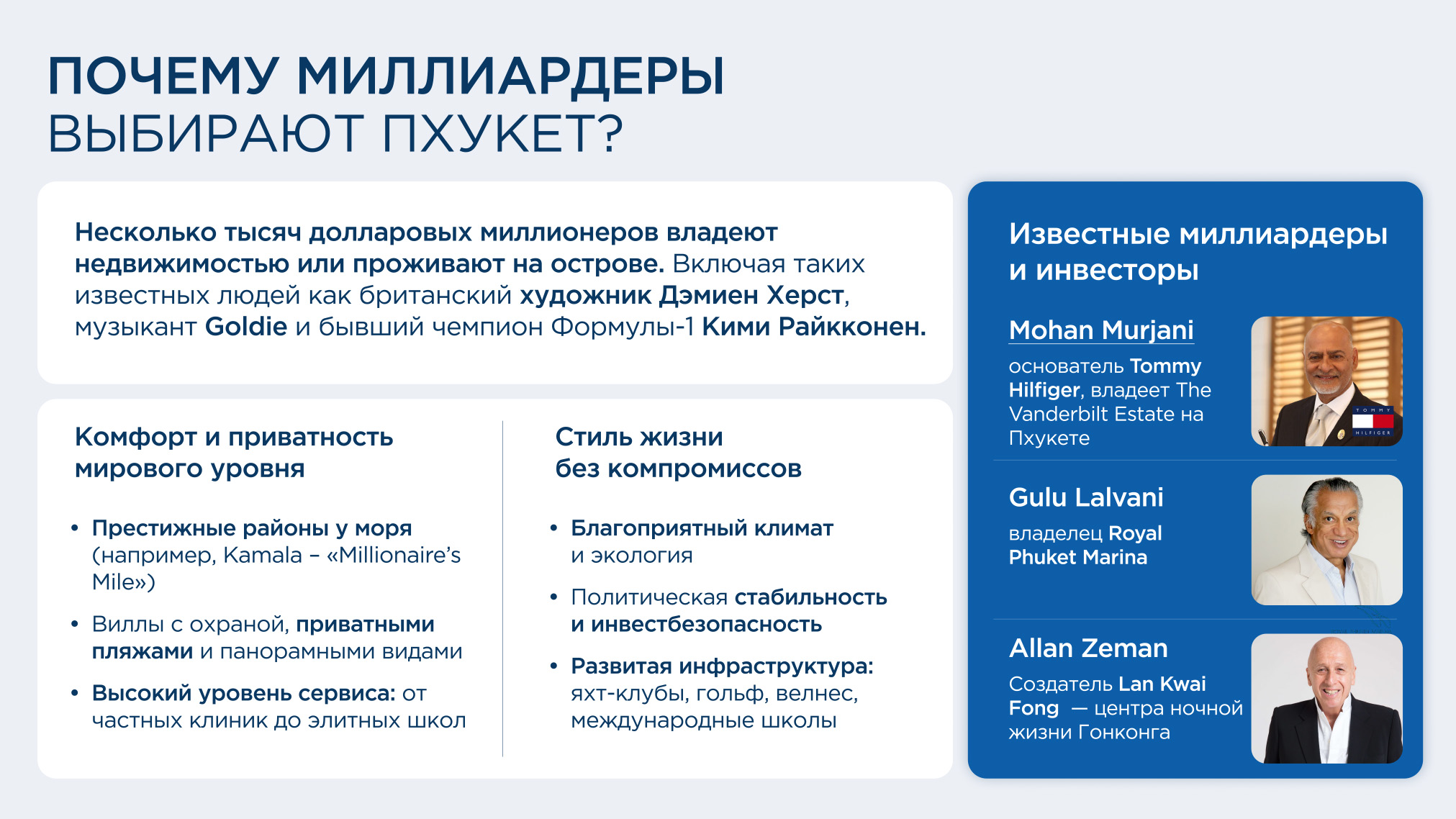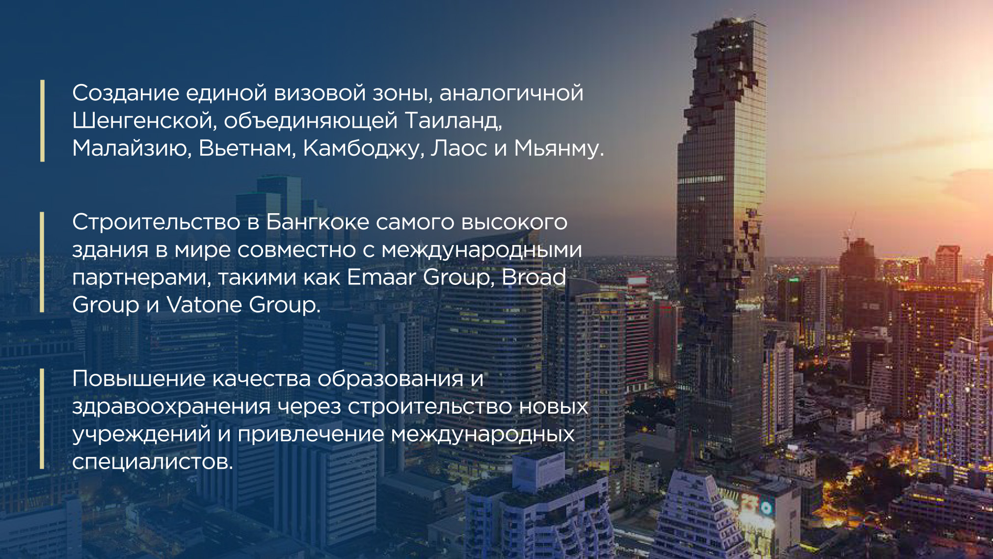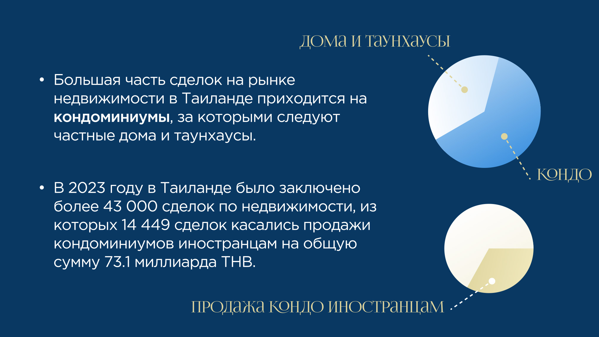 Добро пожаловать в Таиланд — удивительное сочетание экзотики и комфорта, восточной философии и современного ритма жизни. Здесь бескрайние пляжи с белоснежным песком встречаются с бирюзовыми волнами Андаманского моря, а пальмы нежно шелестят над уютными виллами и стильными апартаментами.