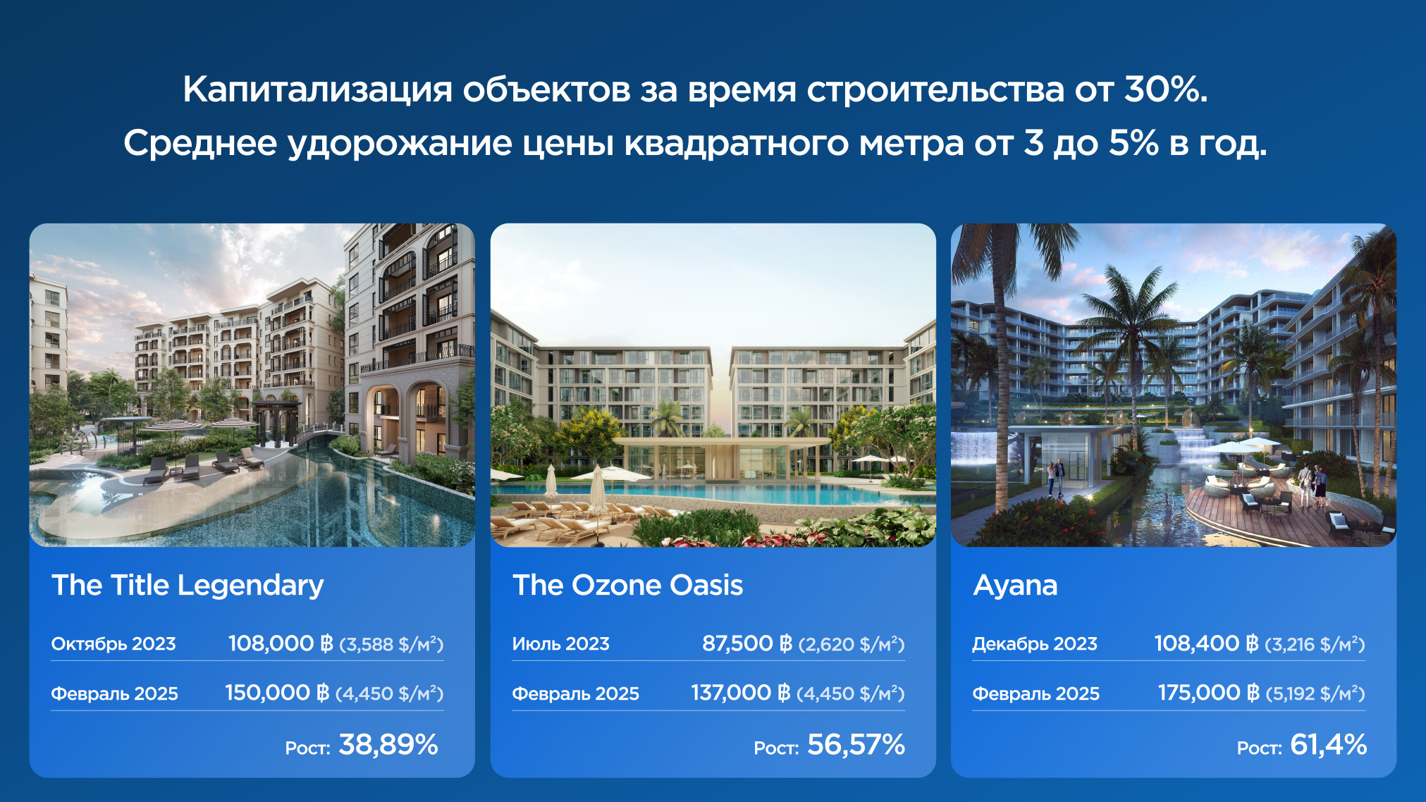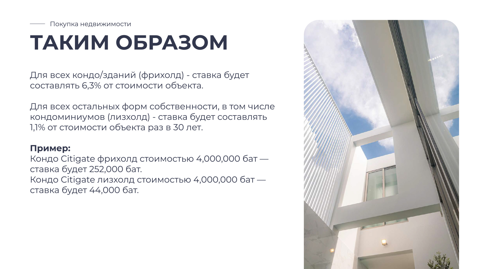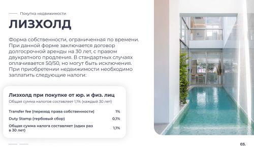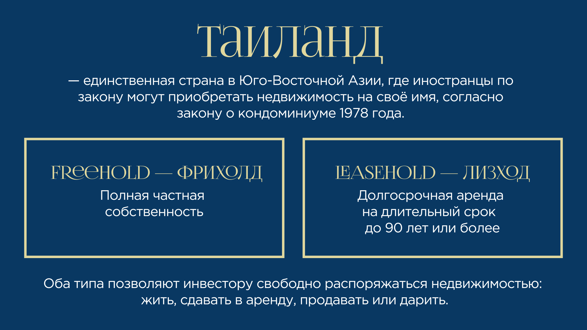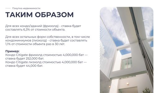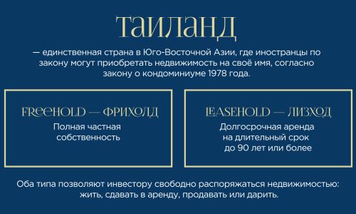 Таиланд — это страна улыбок, где каждый день наполнен солнцем, ароматами свежих фруктов, расслабляющей атмосферой и ощущением настоящей свободы. Инфраструктура мирового уровня, доступные условия для жизни и инвестиций, а также гостеприимство местных жителей делают эту страну идеальным местом для переезда, отдыха и стабильного дохода от недвижимости.