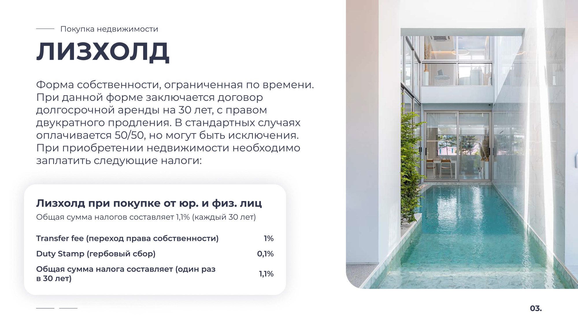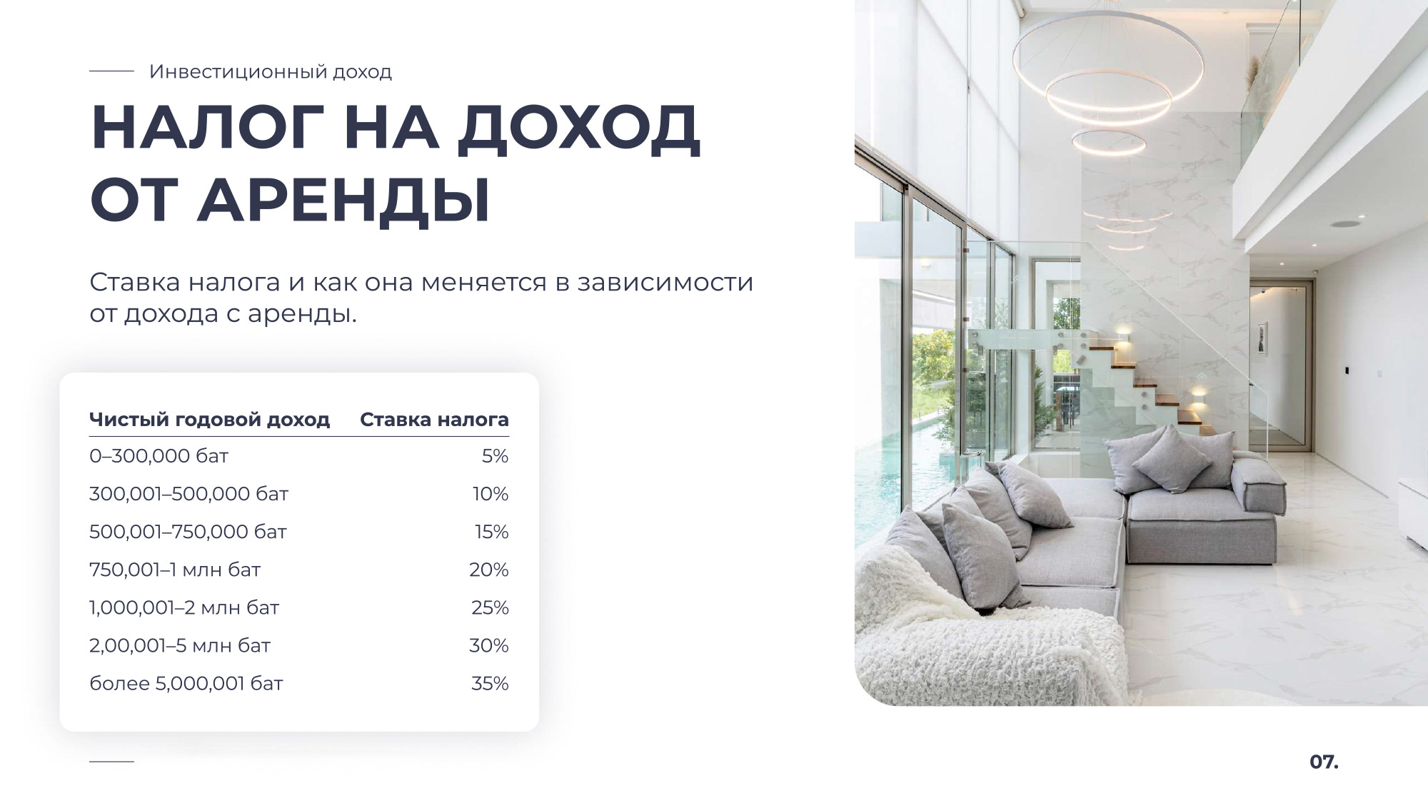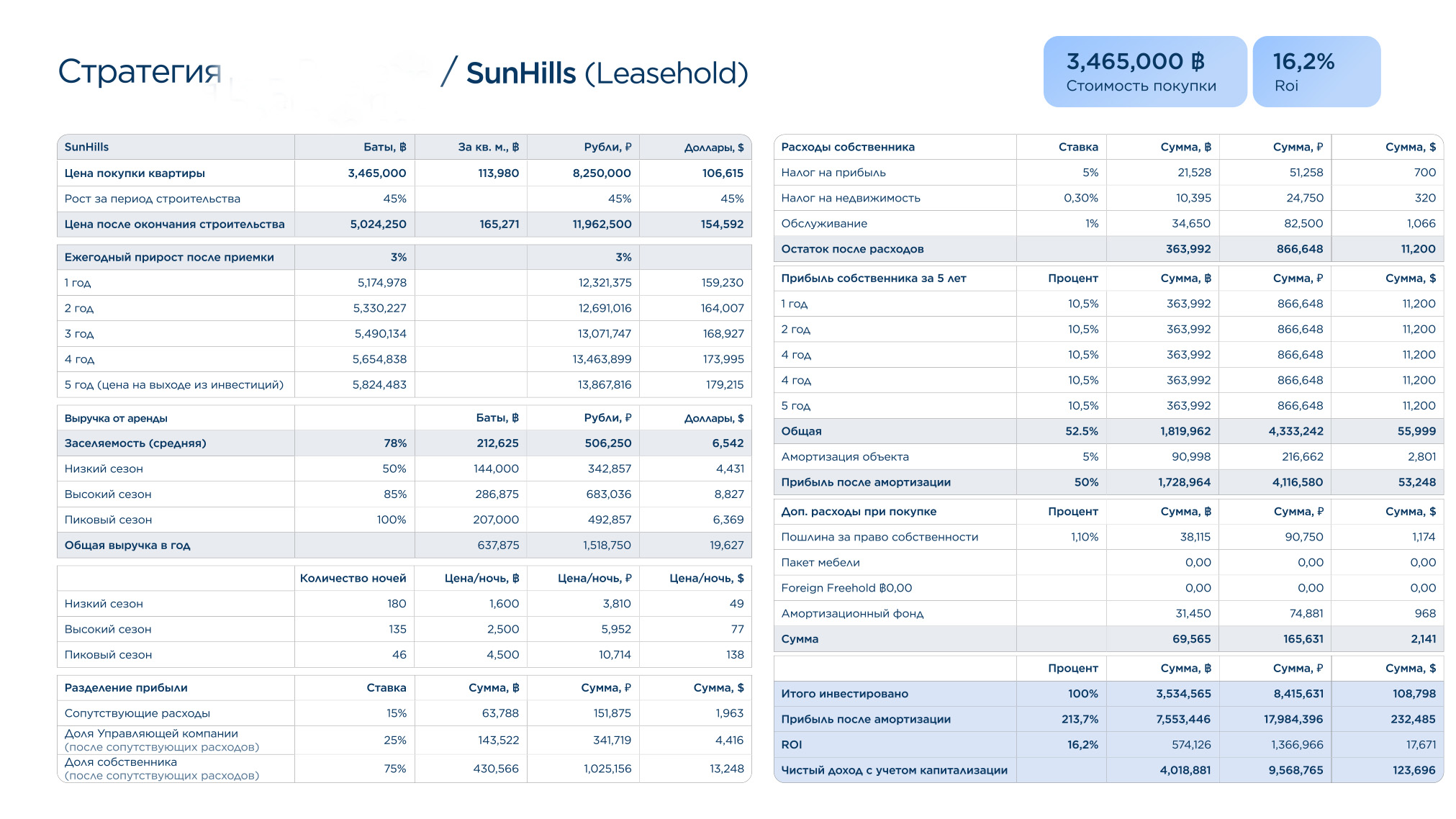 Таиланд — это страна улыбок, где каждый день наполнен солнцем, ароматами свежих фруктов, расслабляющей атмосферой и ощущением настоящей свободы. Инфраструктура мирового уровня, доступные условия для жизни и инвестиций, а также гостеприимство местных жителей делают эту страну идеальным местом для переезда, отдыха и стабильного дохода от недвижимости.