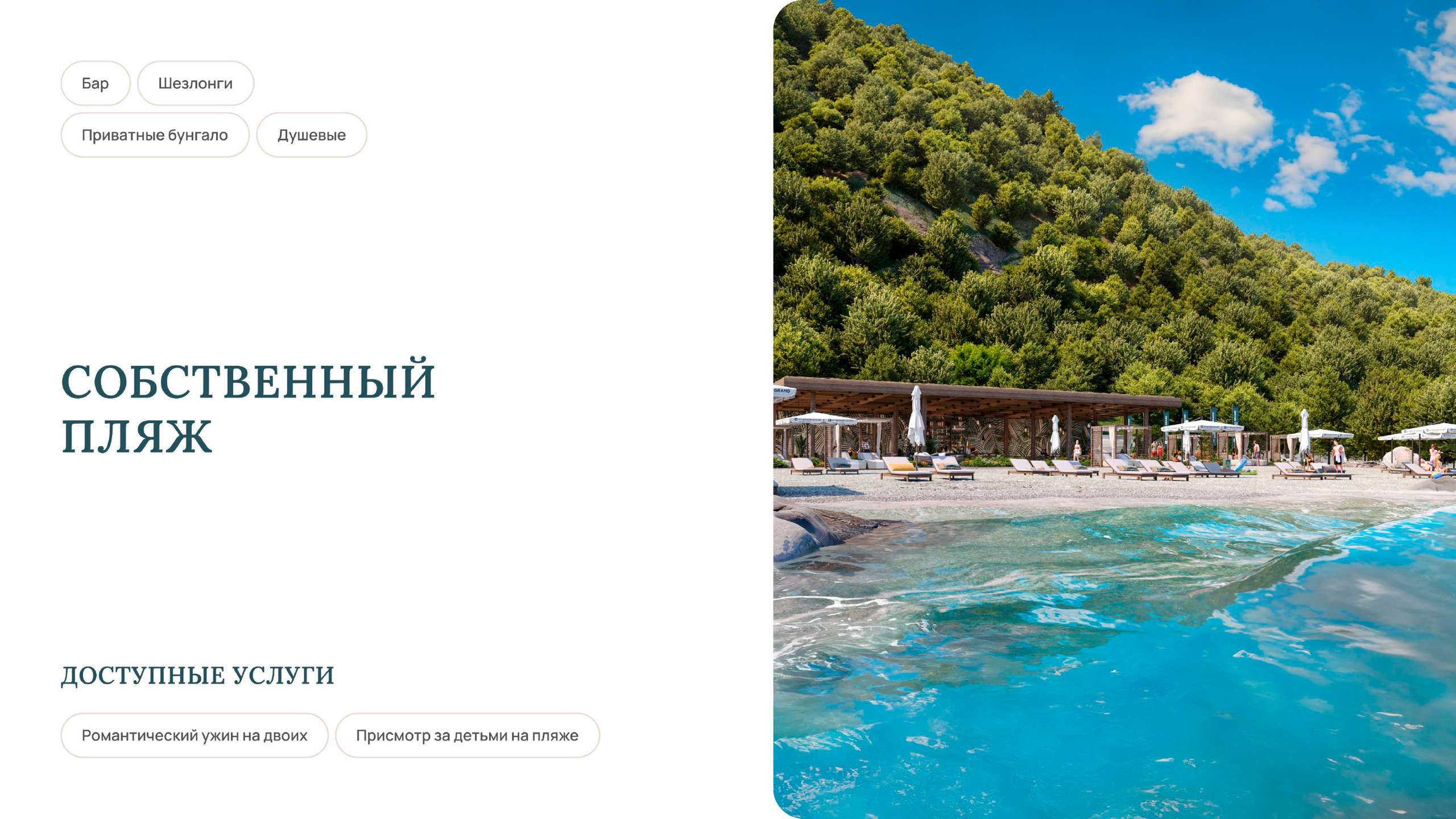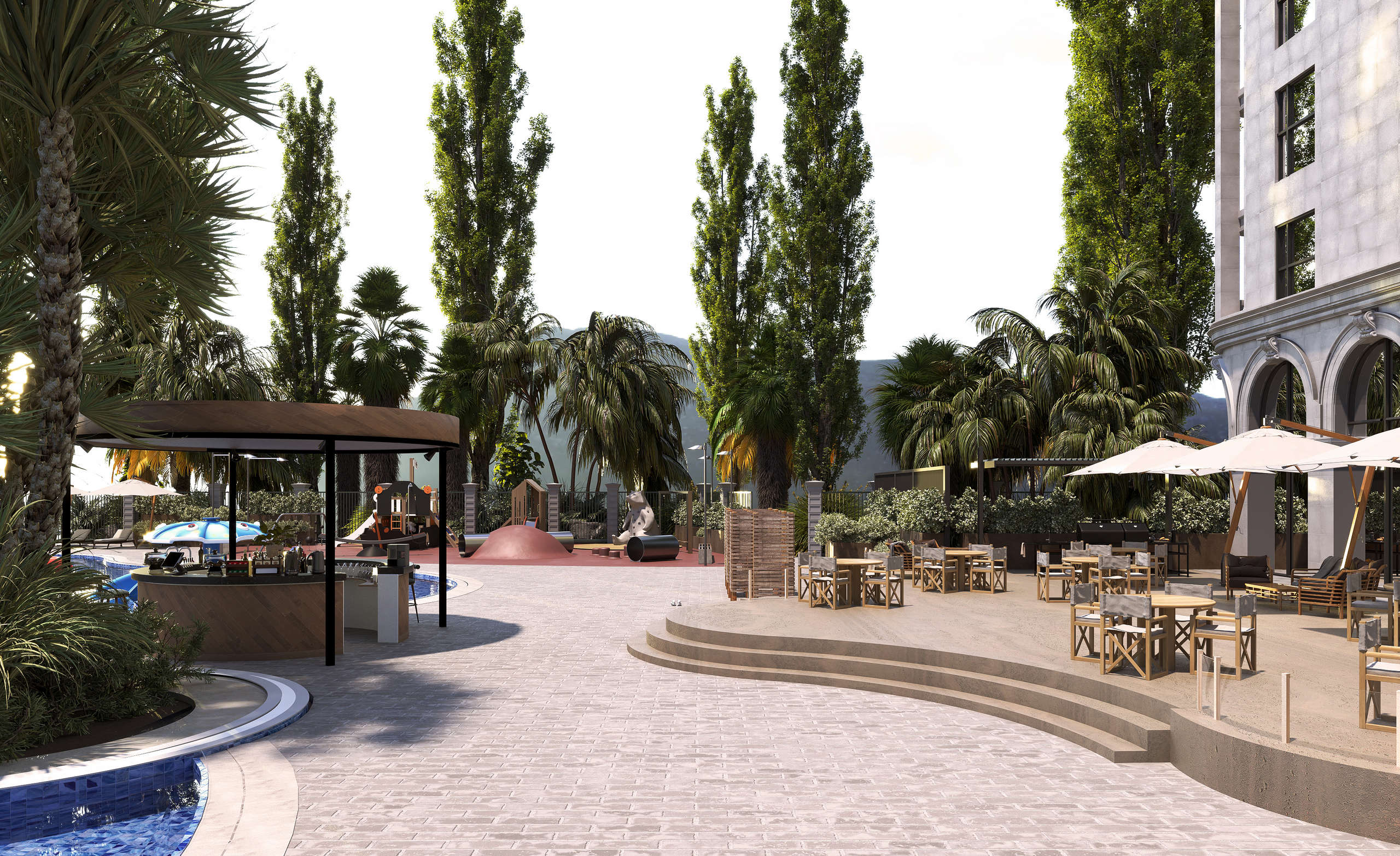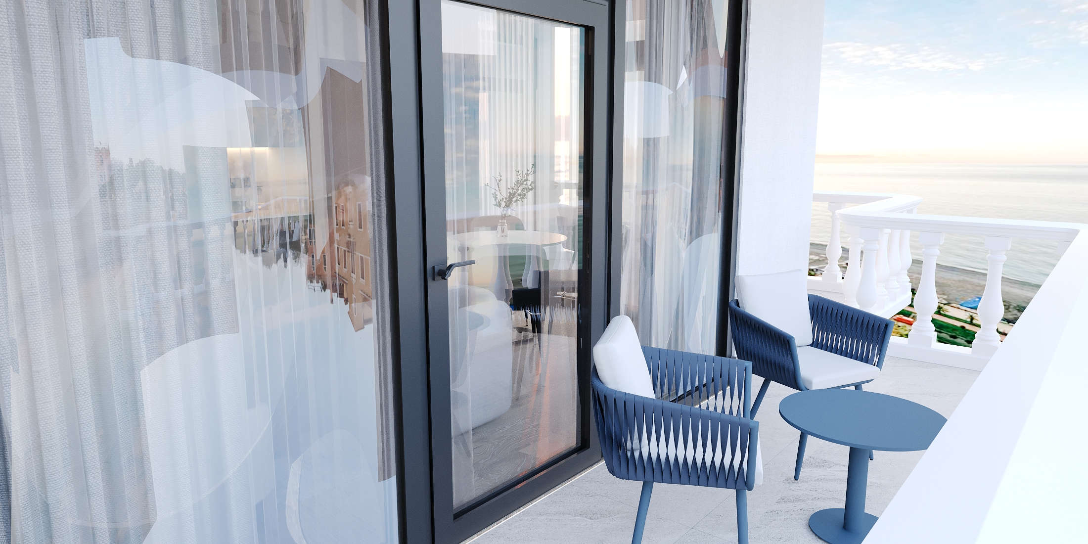 Проект совмещает функции санаторно-курортного отеля, modern medical clinic, аква-зоны и развитой инфраструктуры — всё в одном здании, в пешей доступности от моря.