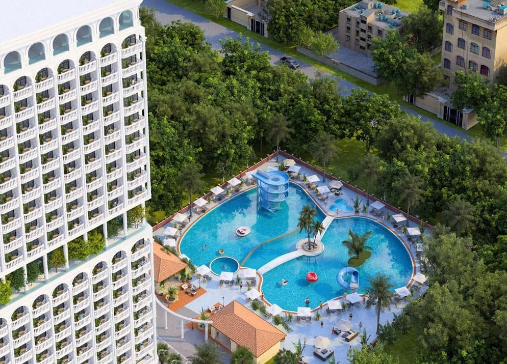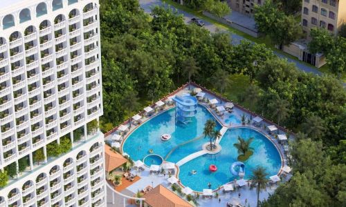 Aqua — это не просто апарт-отель, а 20-этажный 5★ комплекс формата All Inclusive под брендом Wyndham Grand: санаторно-курортный отель, медицинская клиника, аквазона и огромная инфраструктура в одном здании, в паре минут от моря. Вы покупаете номер, а дальше за вас работает международный гостиничный бизнес.
