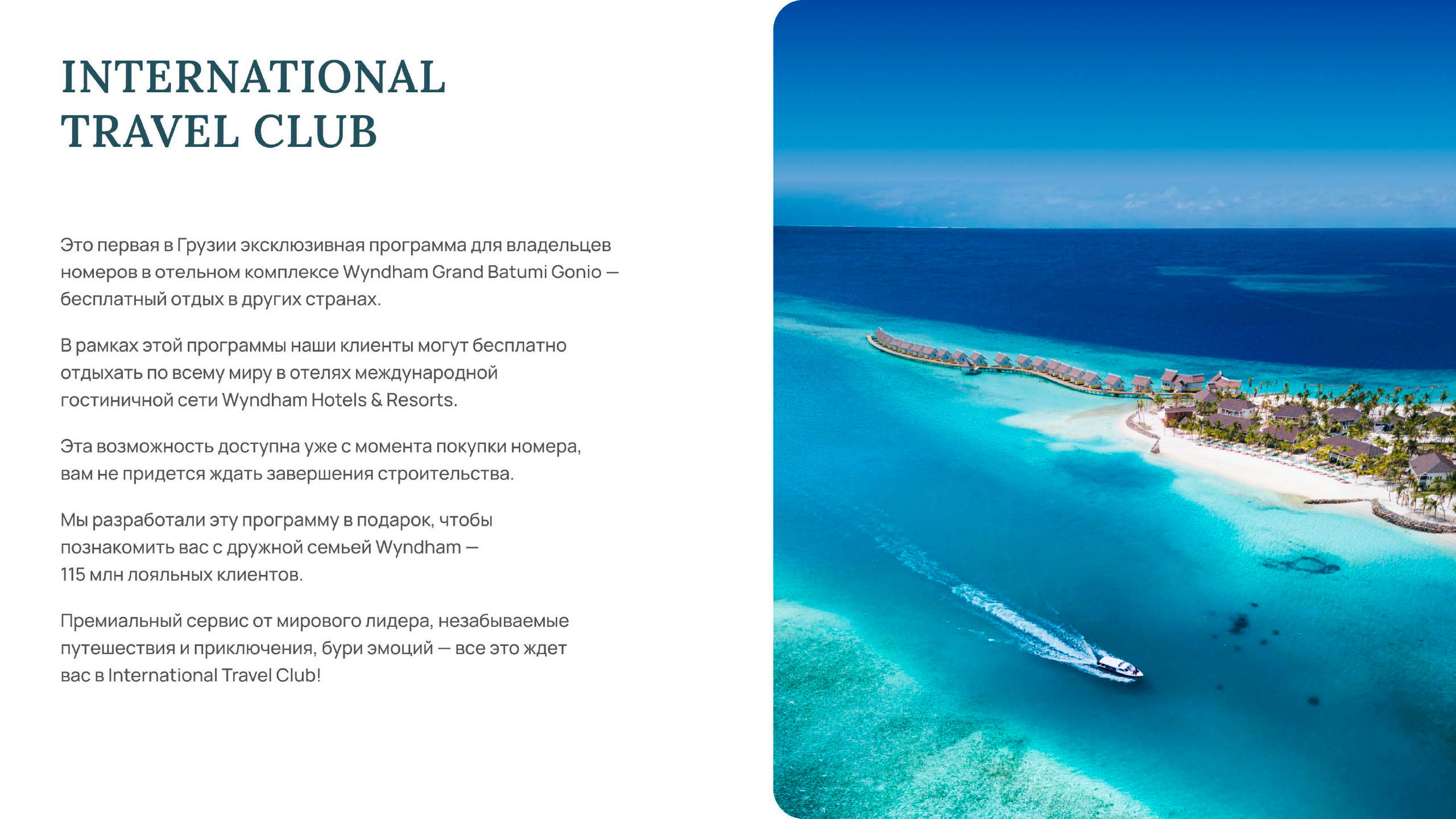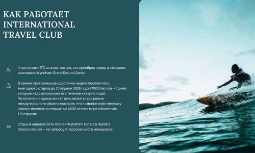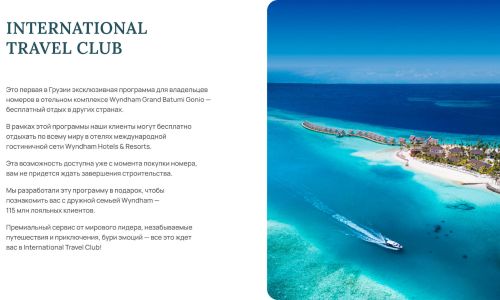 - первый в Грузии all inclusive-комплекс уровня Wyndham Grand с крупнейшей инфраструктурой;