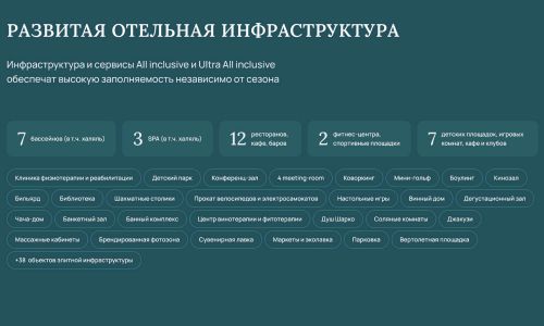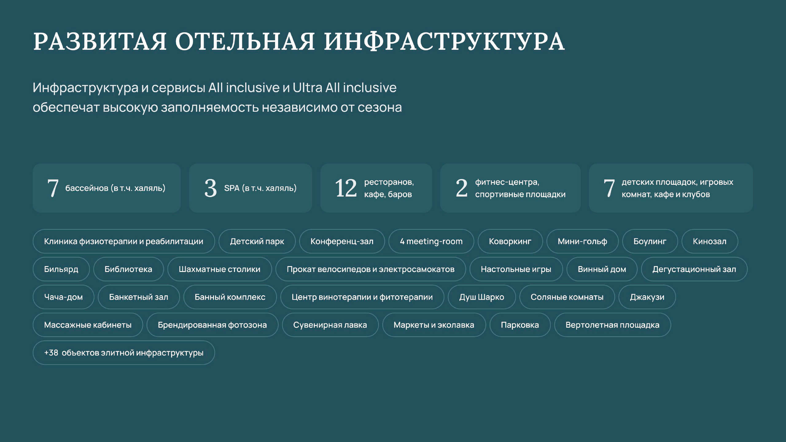 - Курорт, клиника и аквапарк в одном месте: вы отдыхаете сами и зарабатываете, пока отель работает круглый год