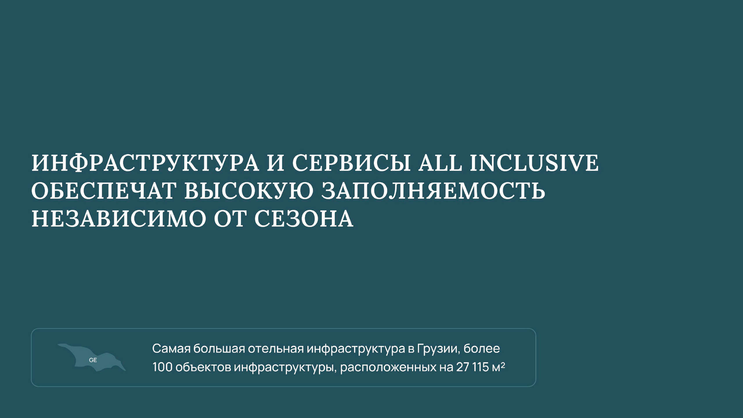 - Первый в Западной Грузии 5★ All Inclusive-отель с такой инфраструктурой