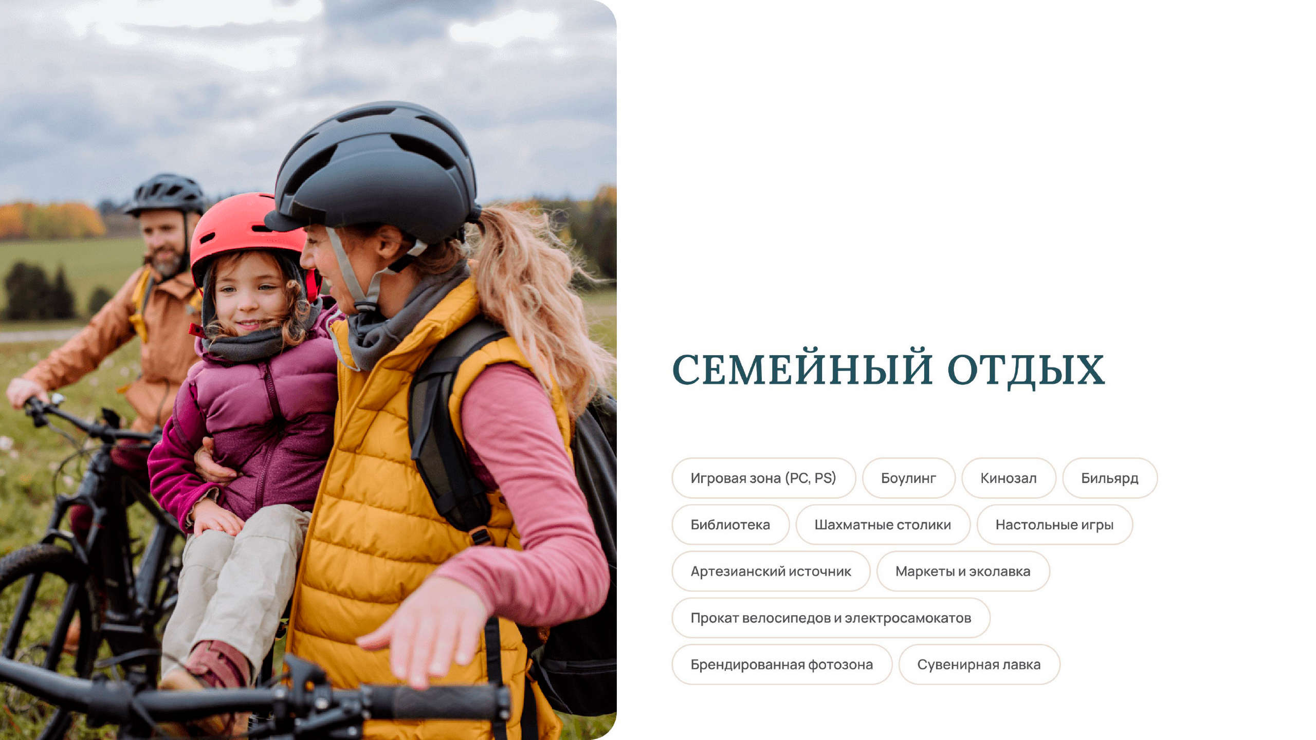 - маркет и eco-shop, кафе, лаундж-зоны, прогулочные зоны, большой ландшафтный парк;