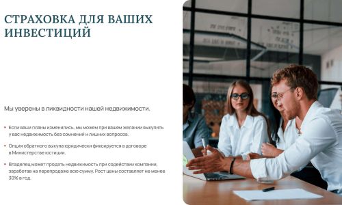 - прописанная в договоре опция buyback — девелопер готов выкупить номер обратно, что снижает риски для инвестора.
