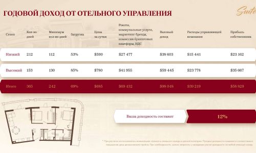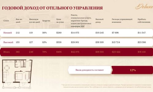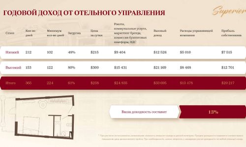 - клиентам, планирующим совмещать инвестицию и свой отдых (несколько недель в году живут сами, остальное время номер работает как доходный актив);
