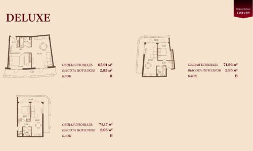 - футурный дизайн, возможны варианты с камином (Deluxe with Fireplace от 65 м²).