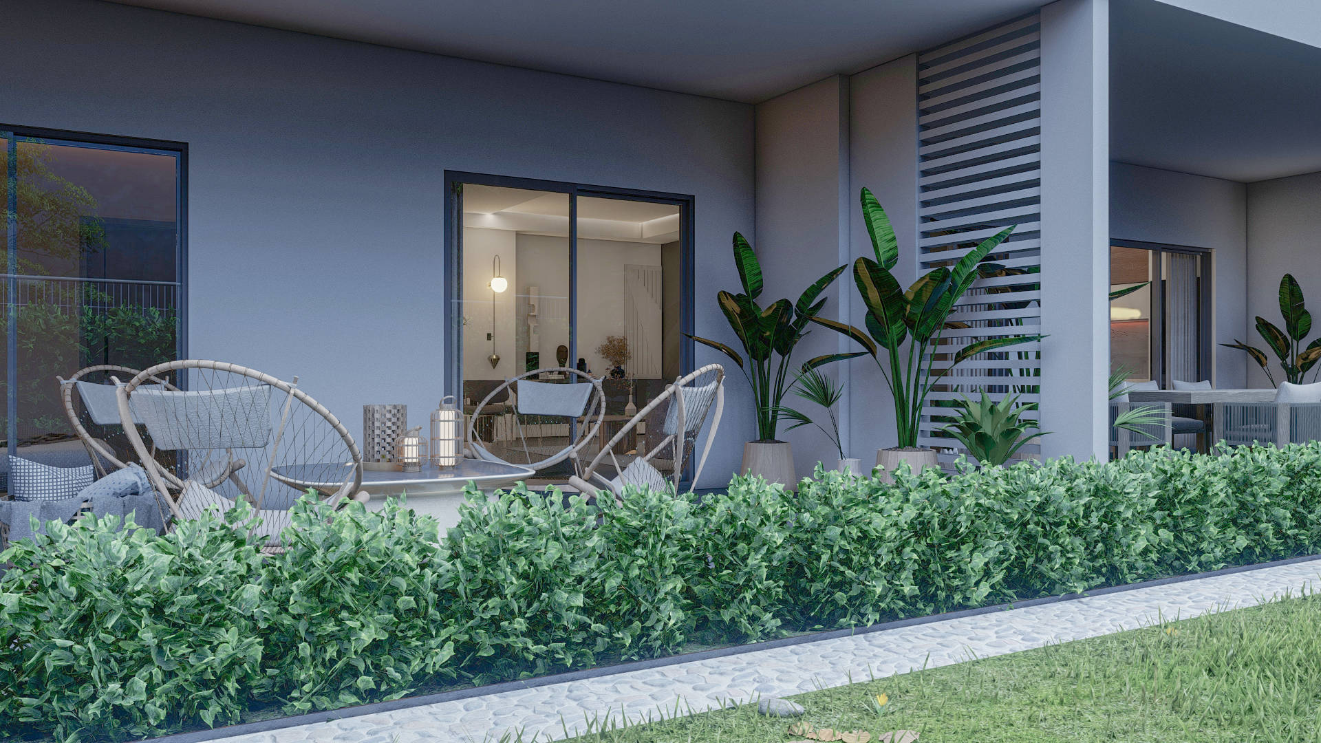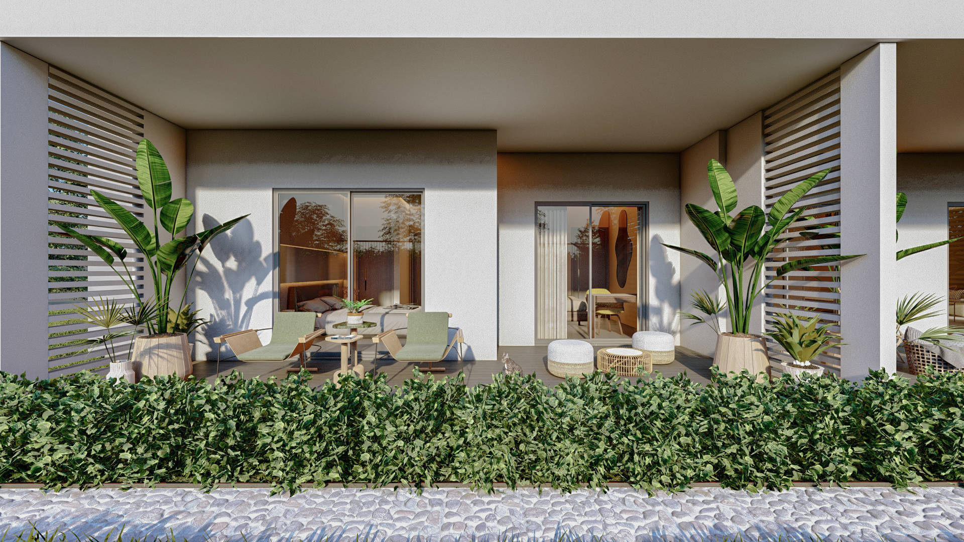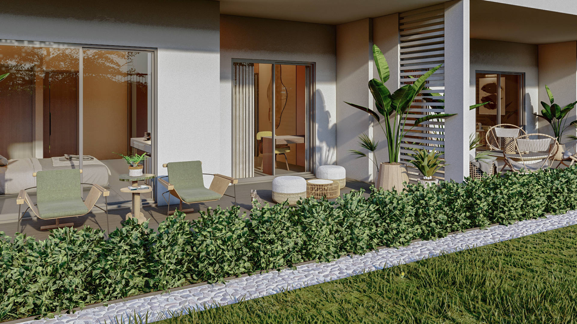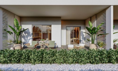 Территория вокруг комплекса с трех сторон застроена элитными частными виллами.