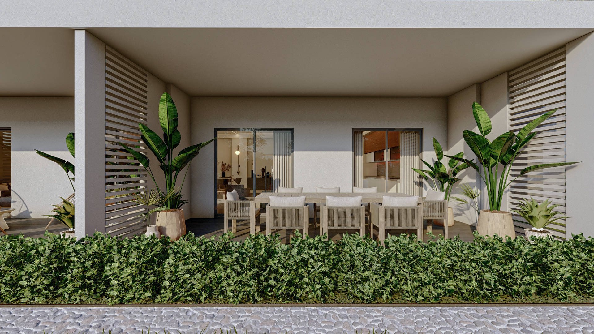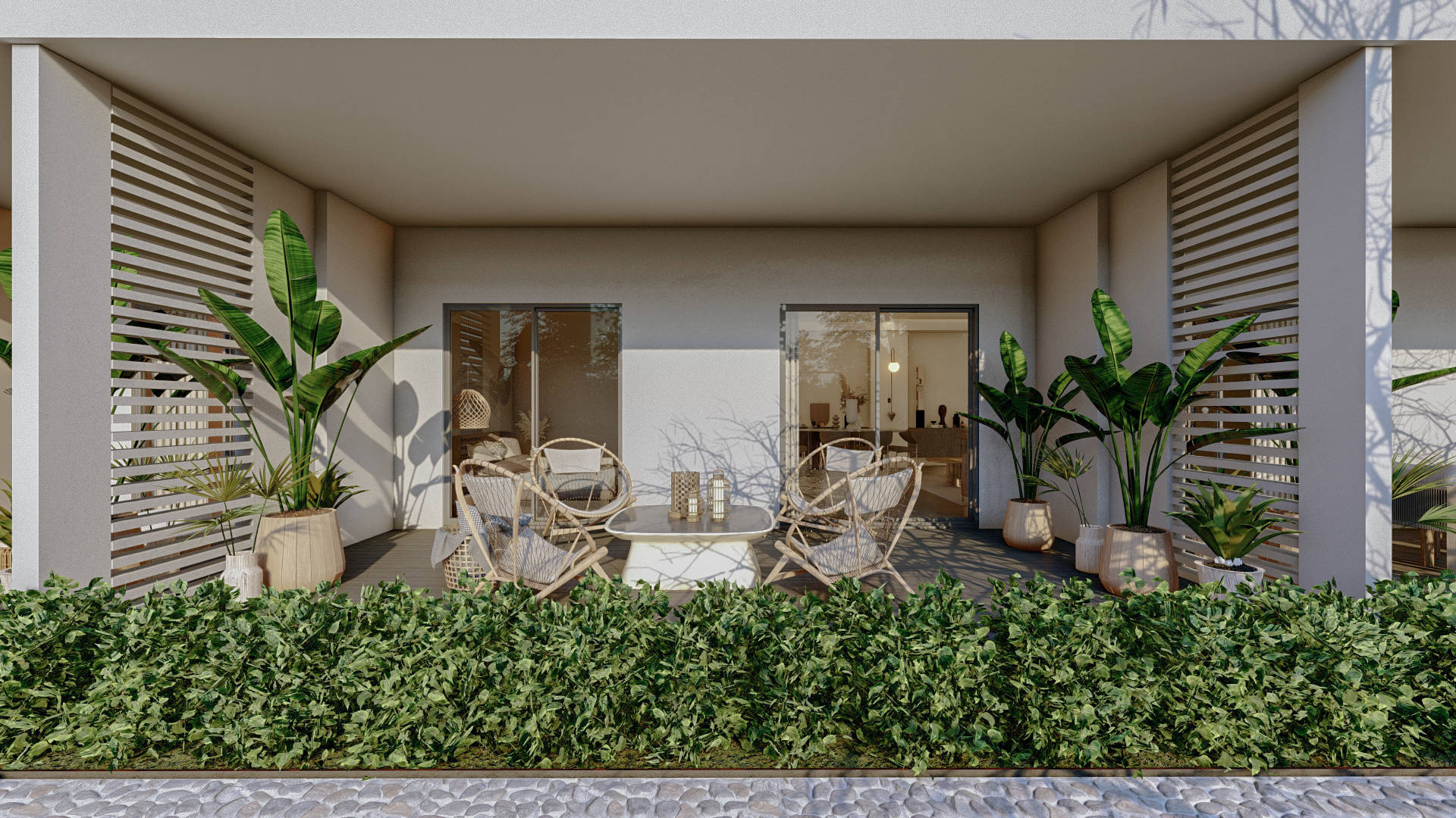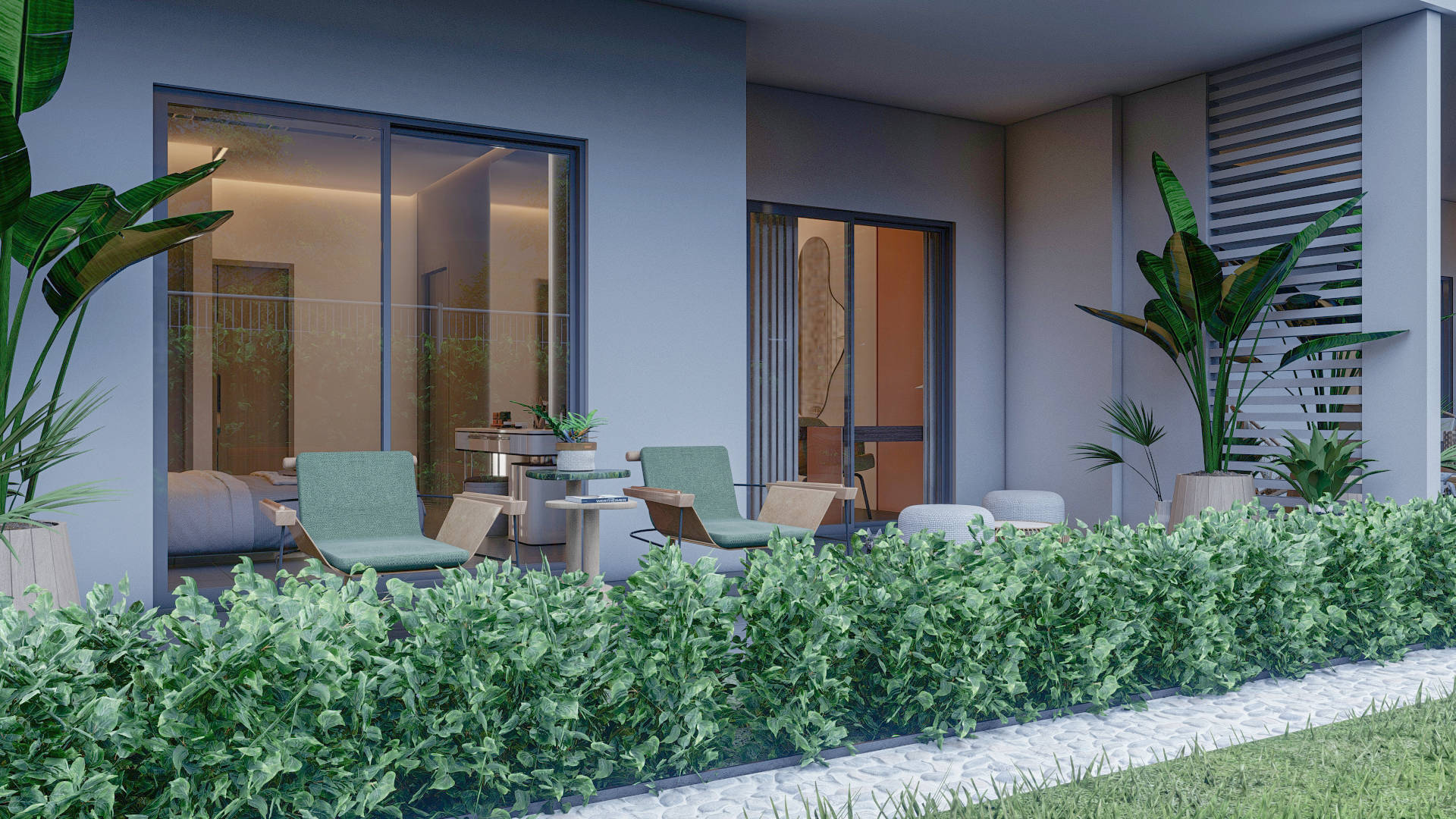 Территория вокруг комплекса с трех сторон застроена элитными частными виллами.