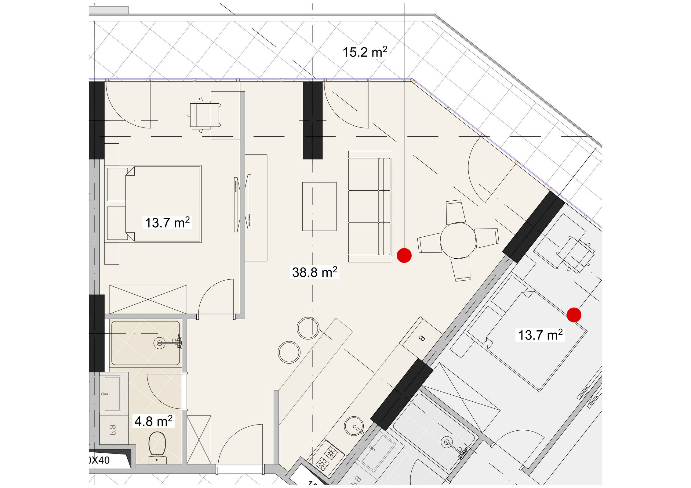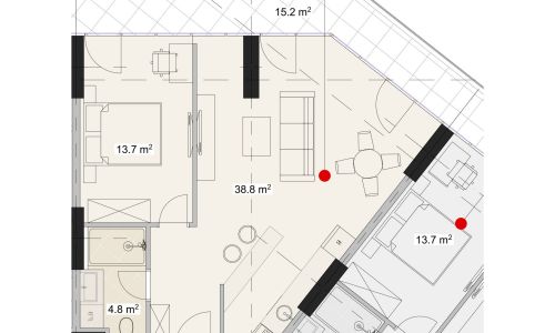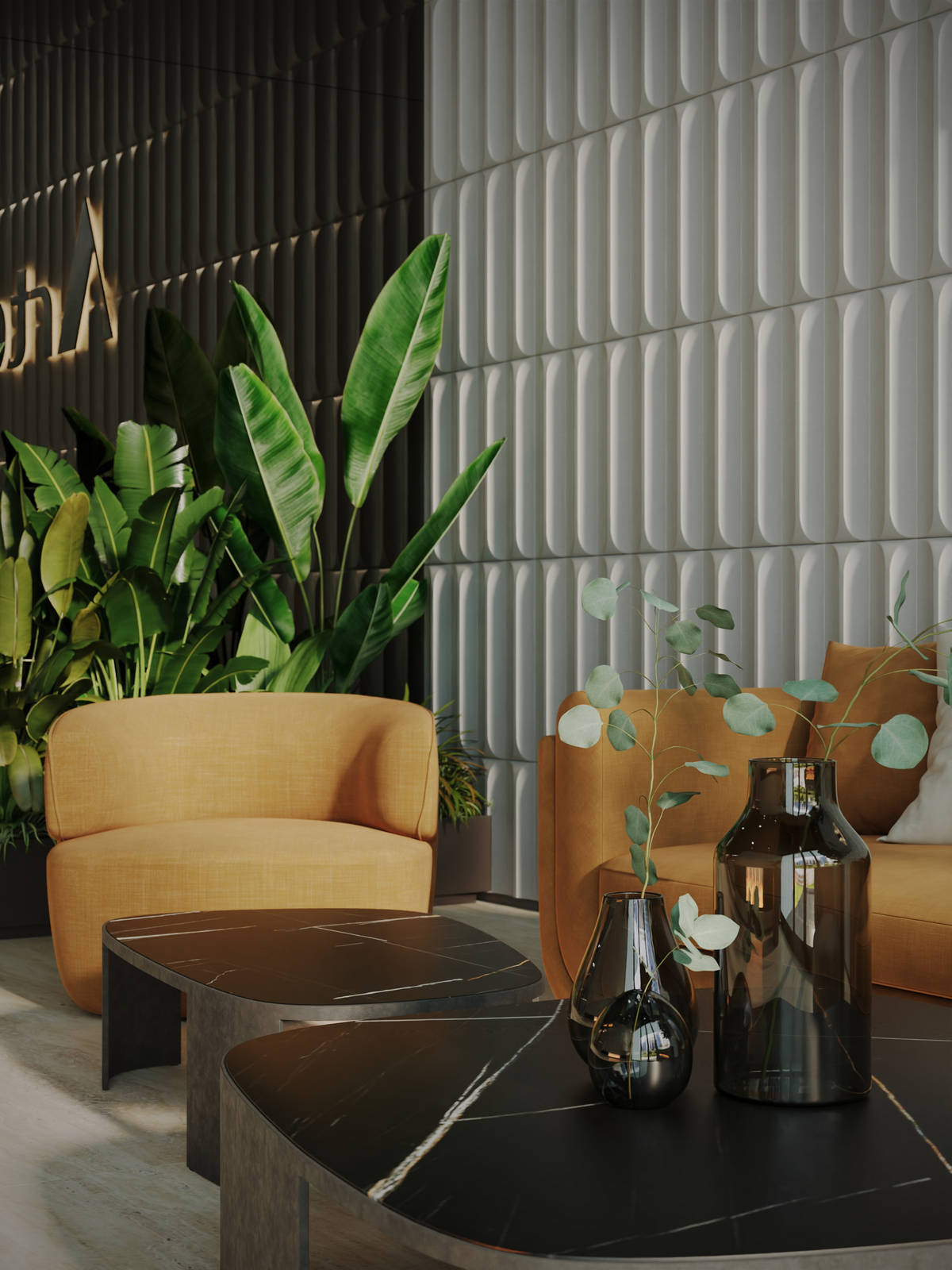 Все три блока будут иметь свою входную группу и свой ресепшен с