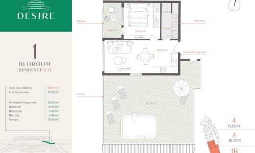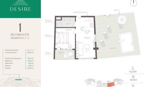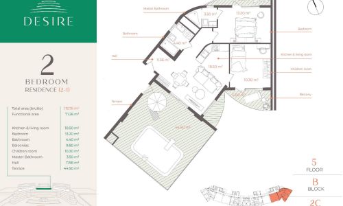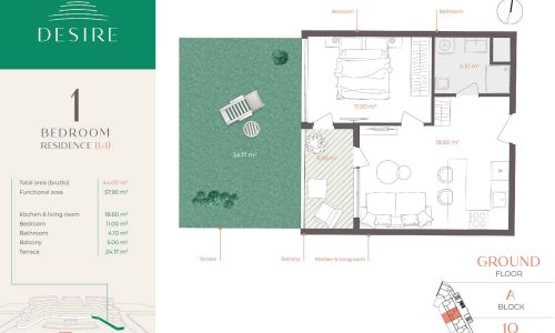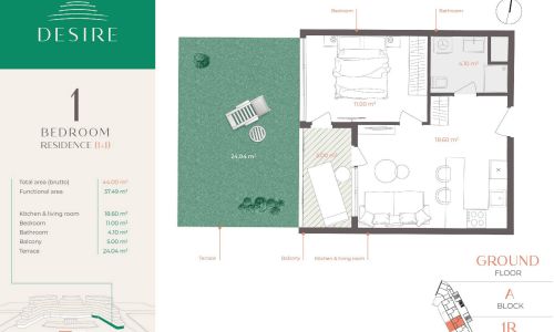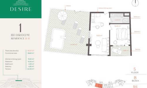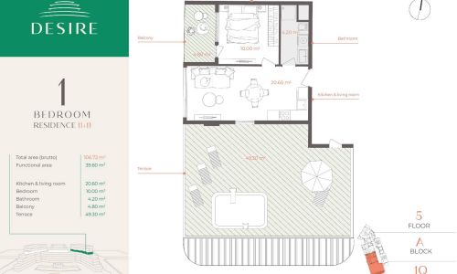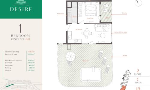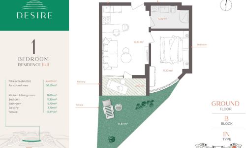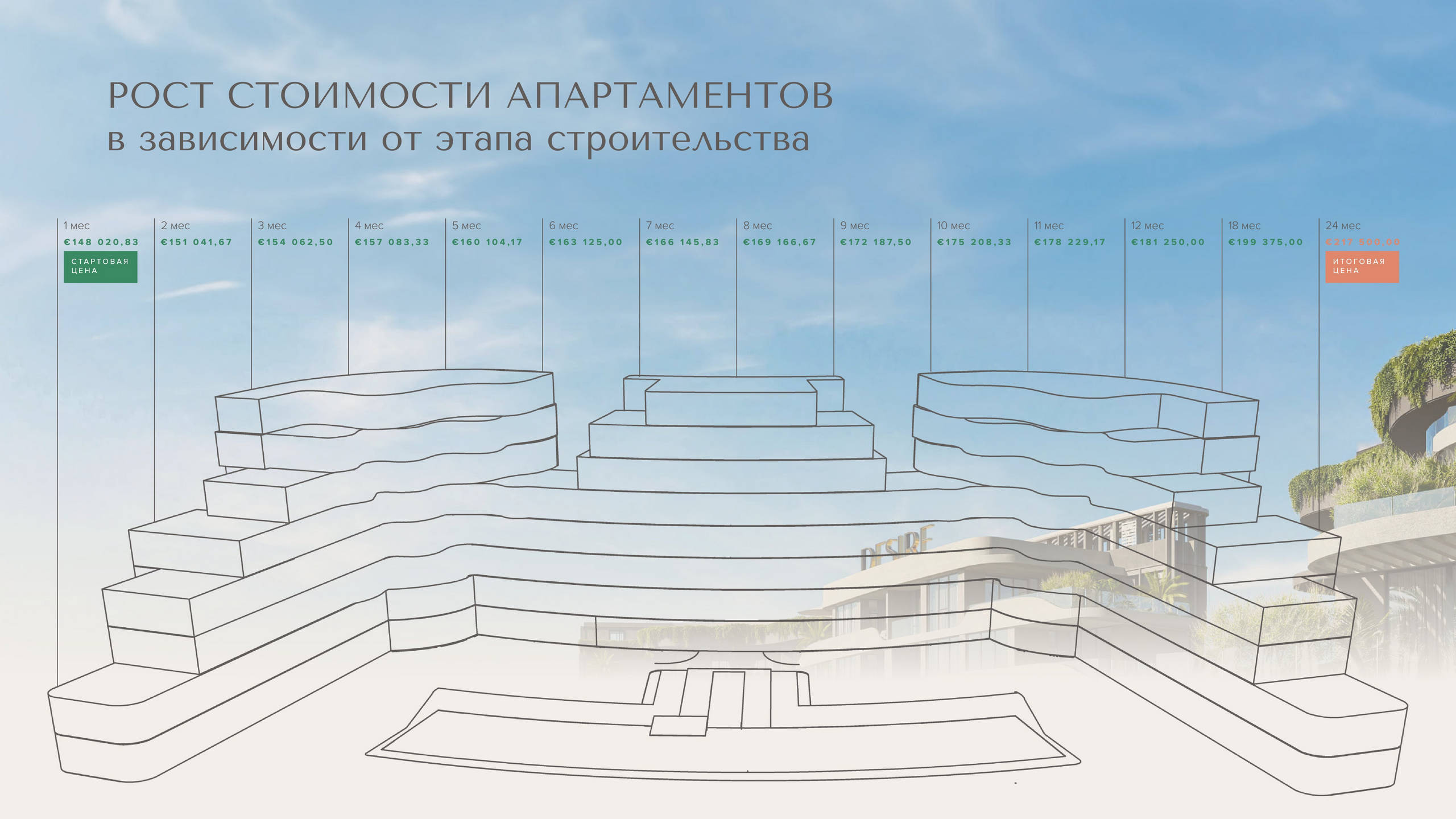 Доступны резиденции и отельные апартаменты с террасой 50 м2. На