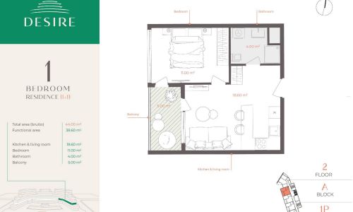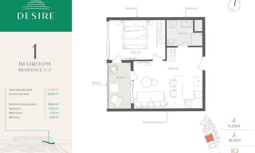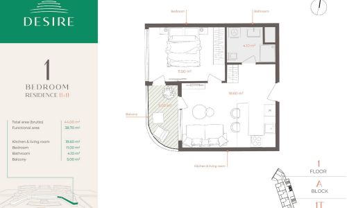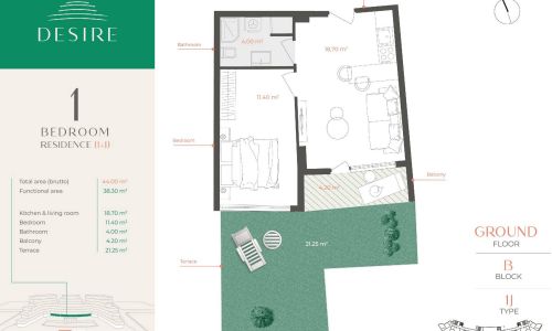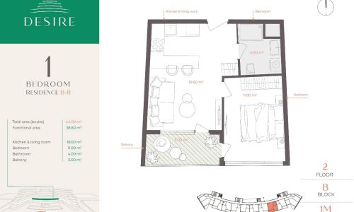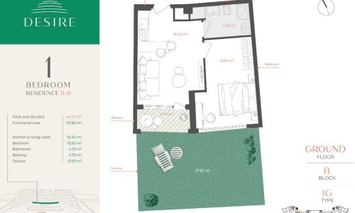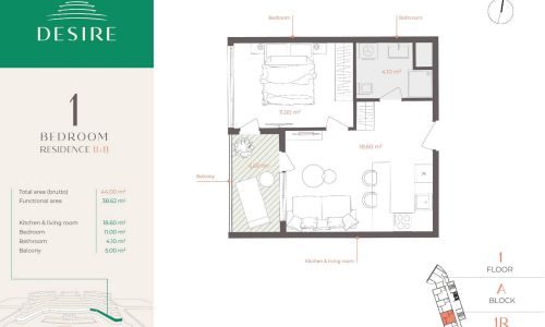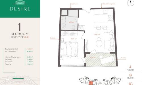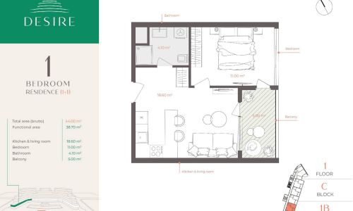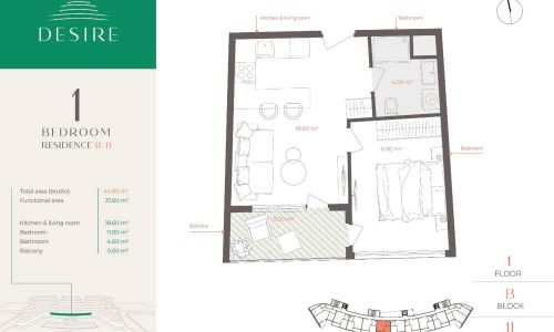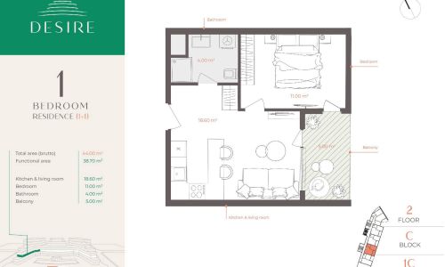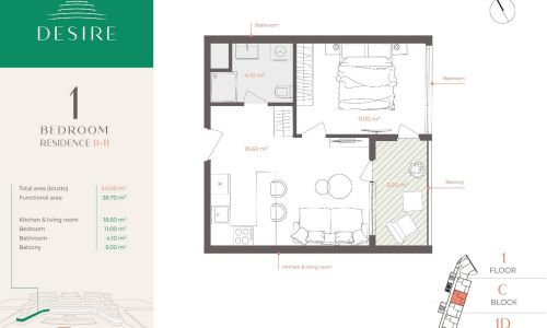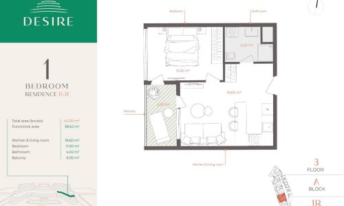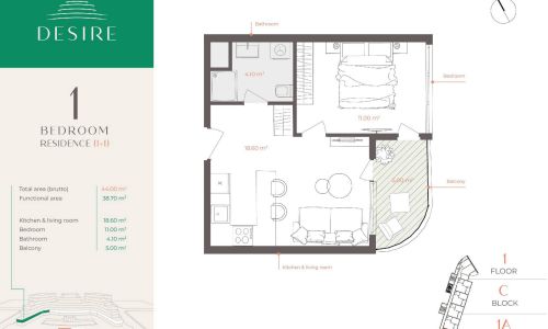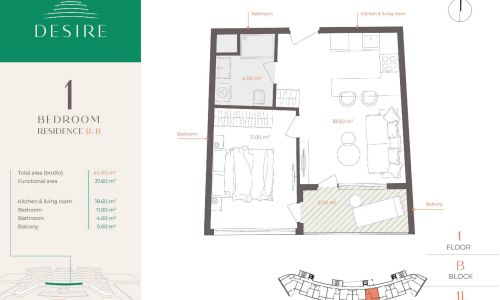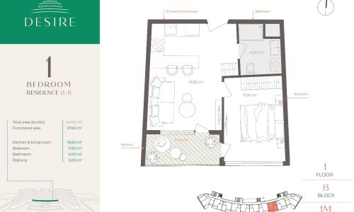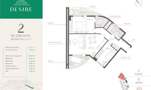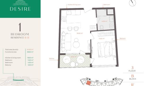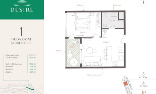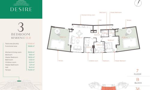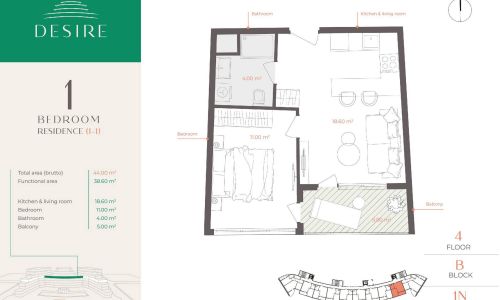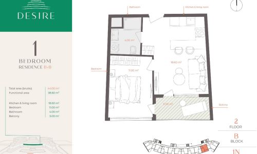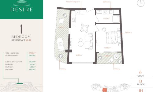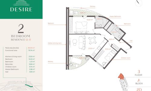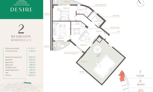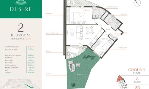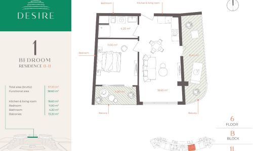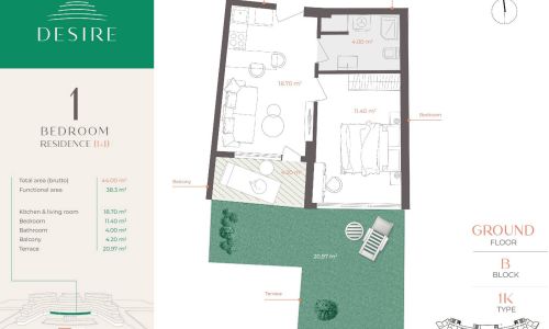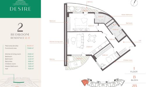 В проекте спланированы жилые резиденции с 1-й-3-мя спальнями, а также