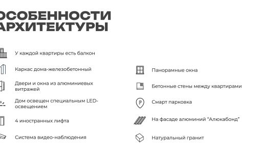 - 21 этаж, монолитный каркас, панорамное остекление и балконы в каждой квартире