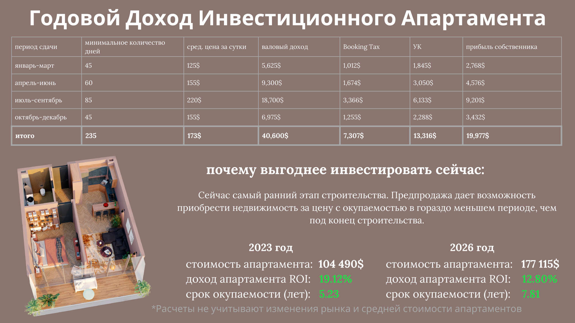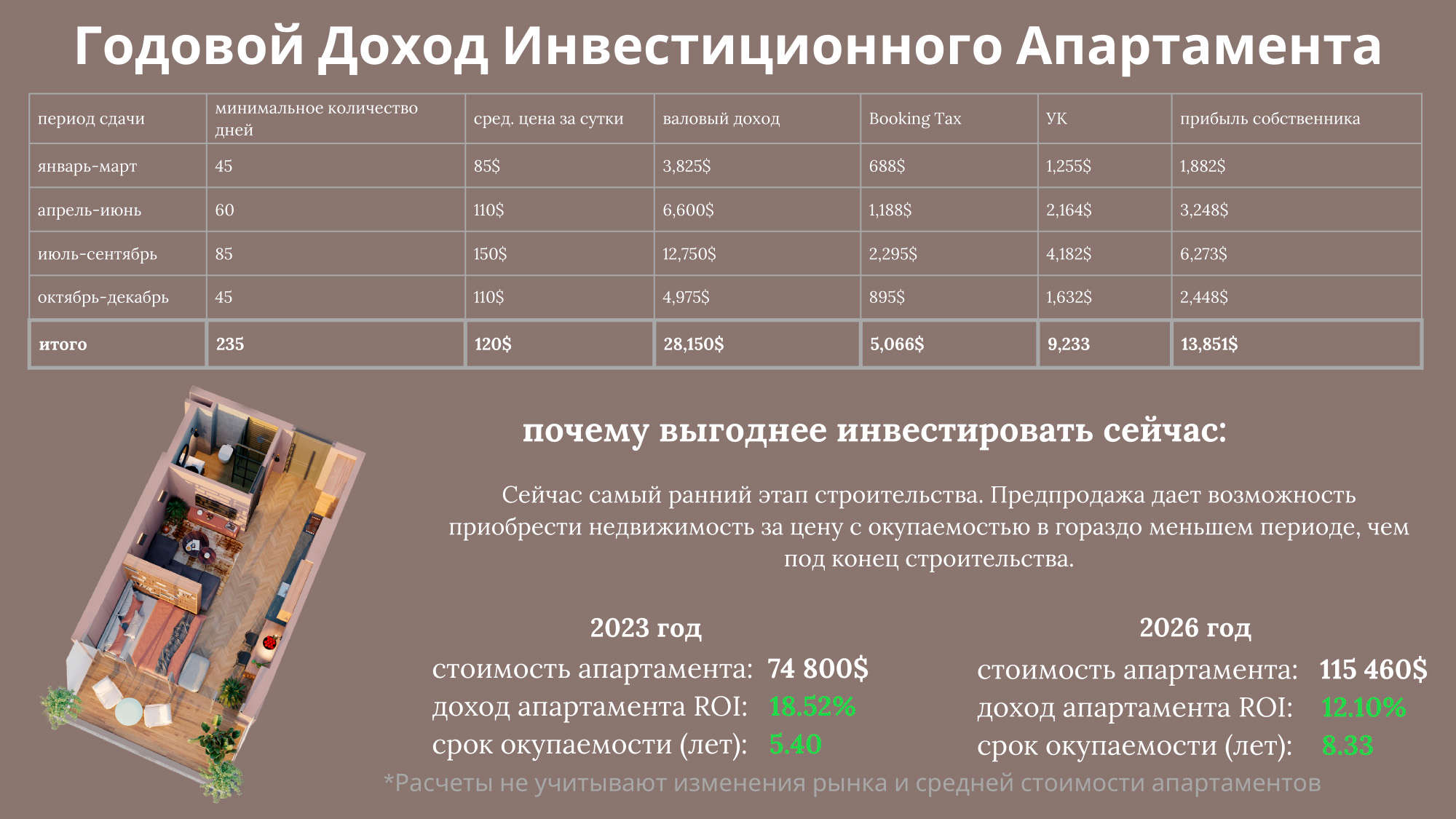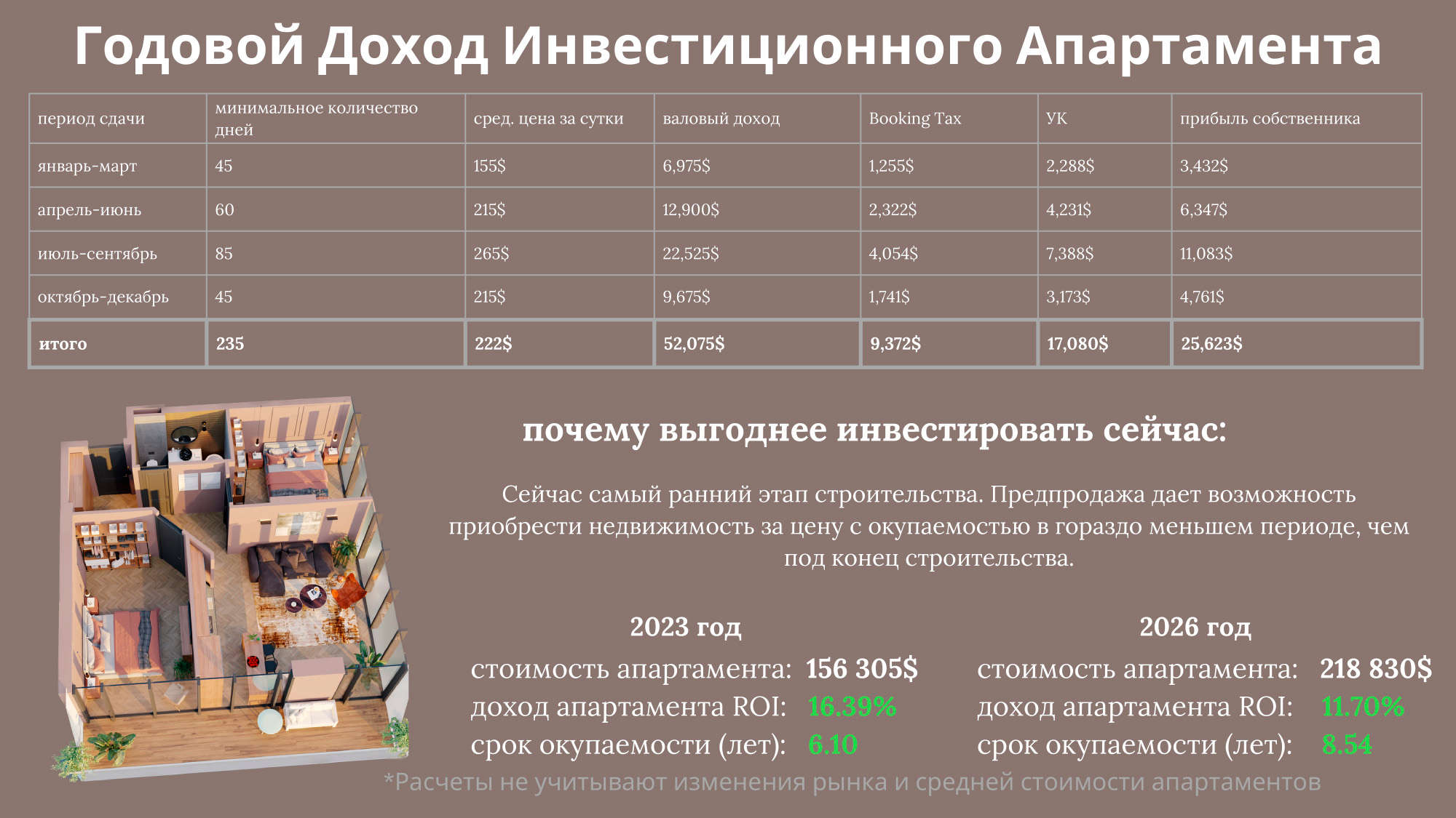 В разделе ниже "Доходность" представлены расчёты.
