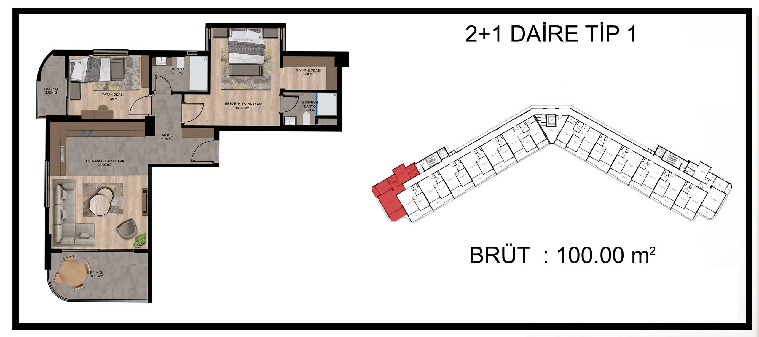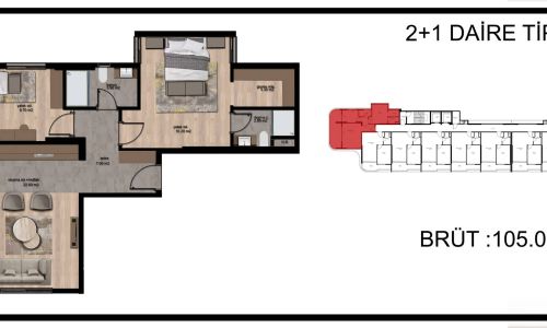 2+1 брутто: 100-105m²