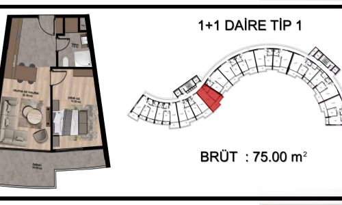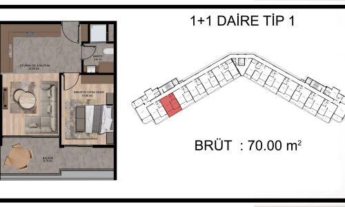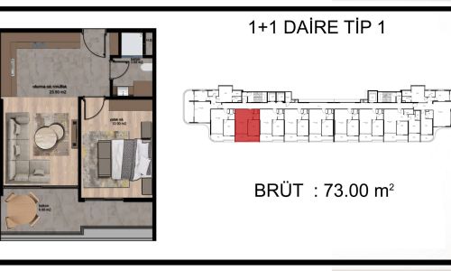 1+1 брутто: 70-75m²