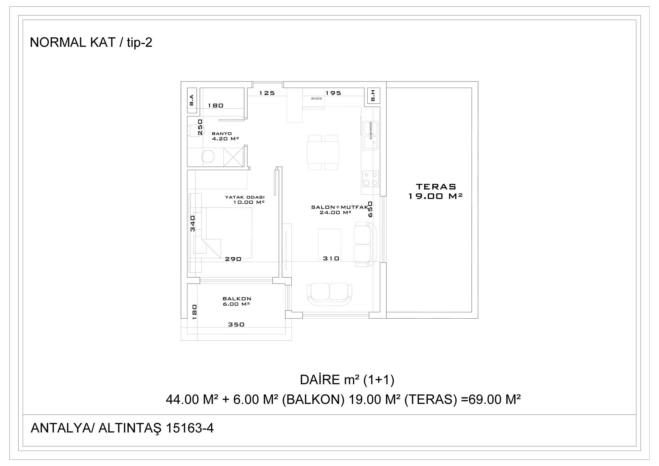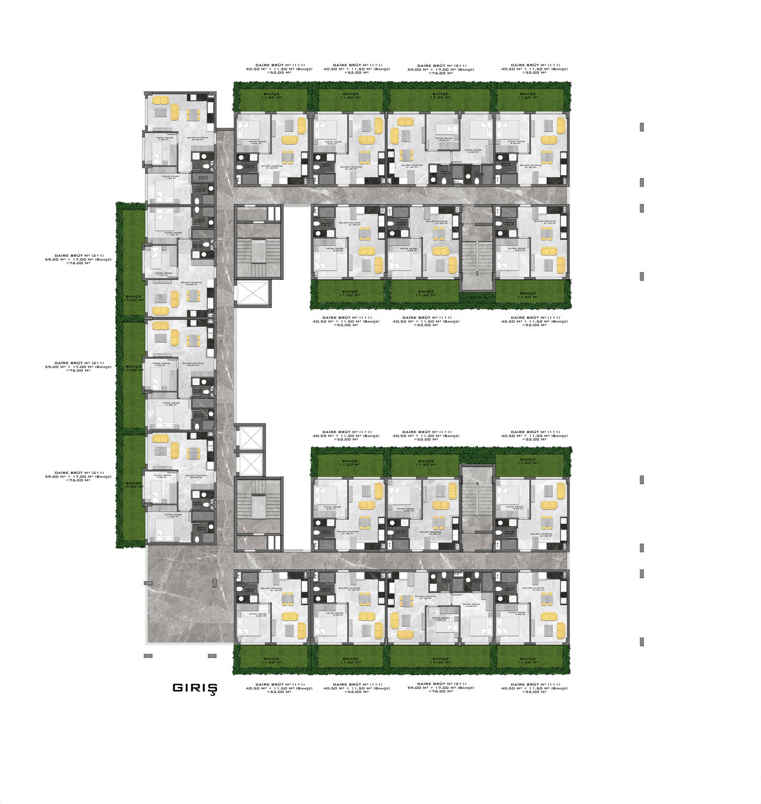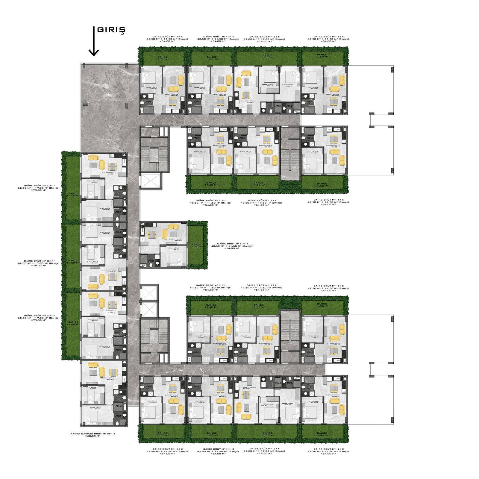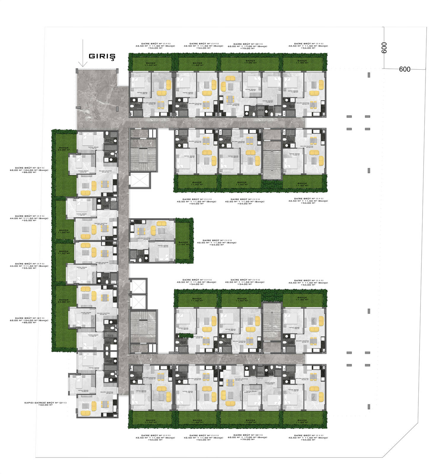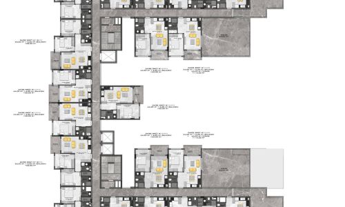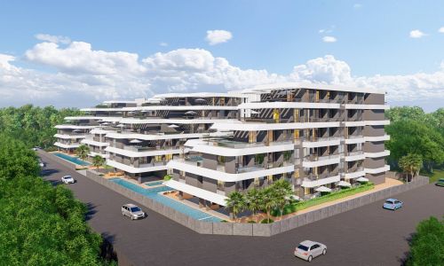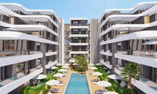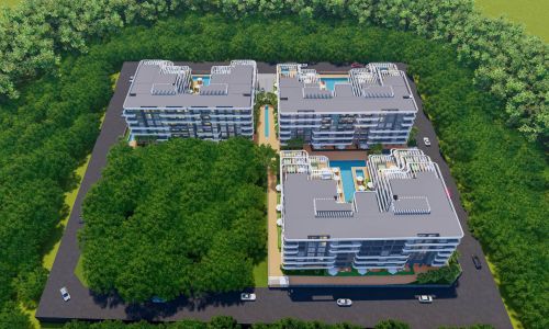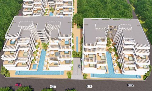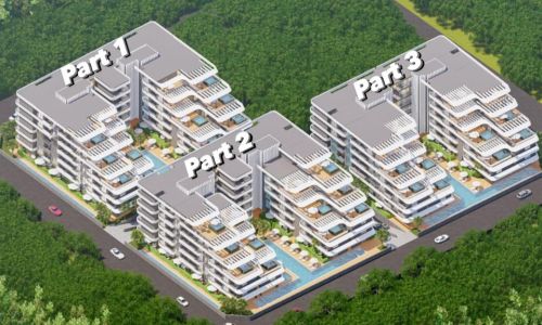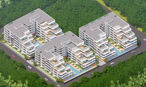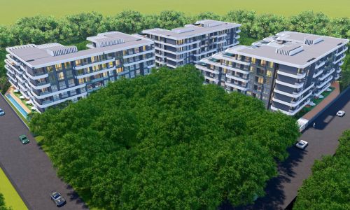 Всего 331 квартира в 3 блоках комплекса: 1+1, 2+1. Есть апартаменты с собственным садиком и с собственной террасой с бассейном.