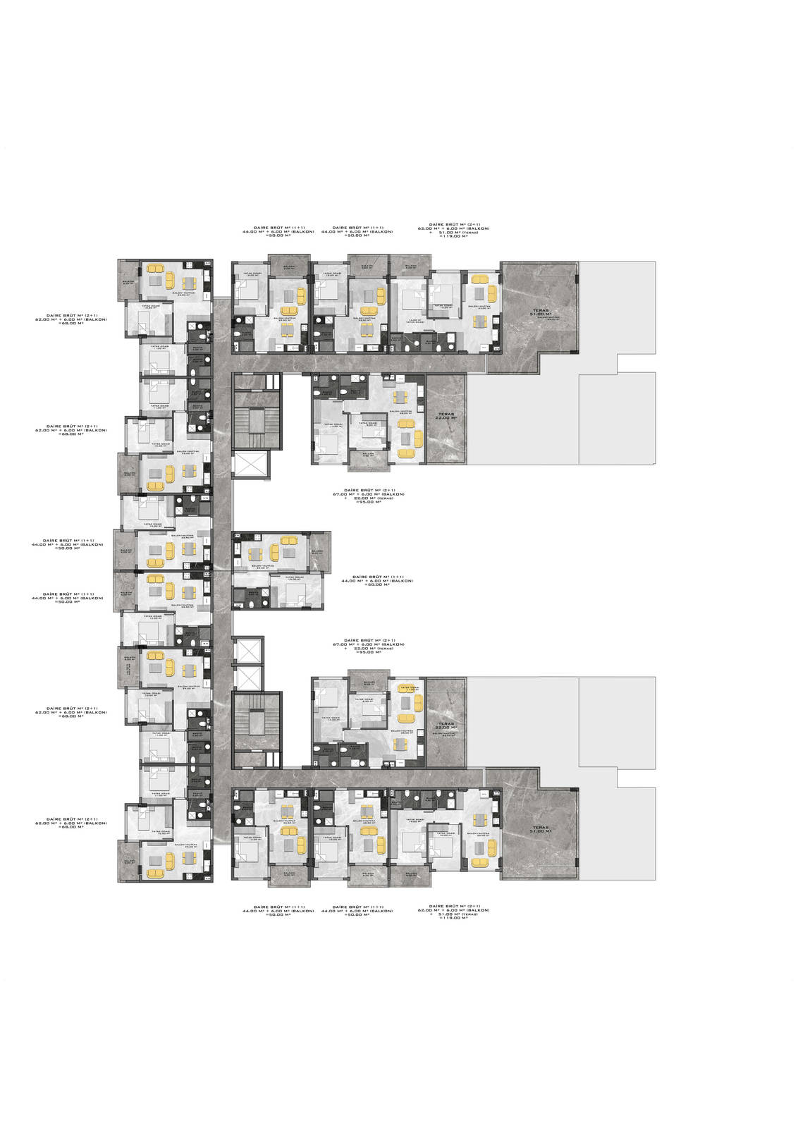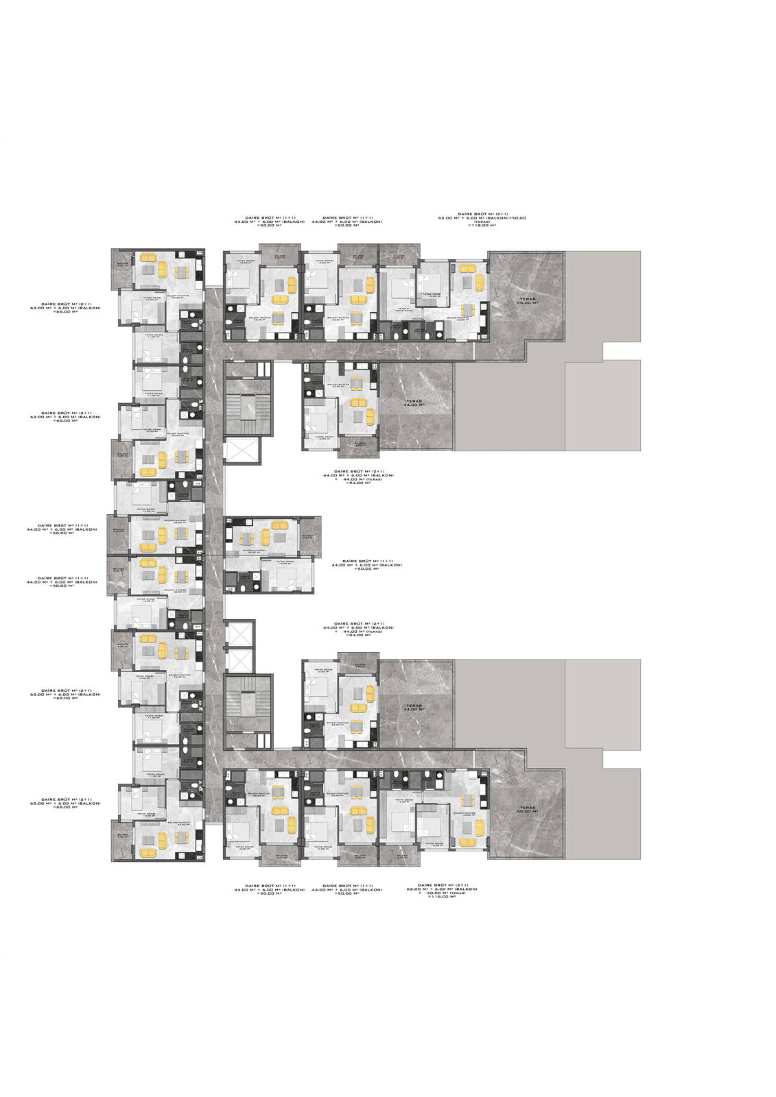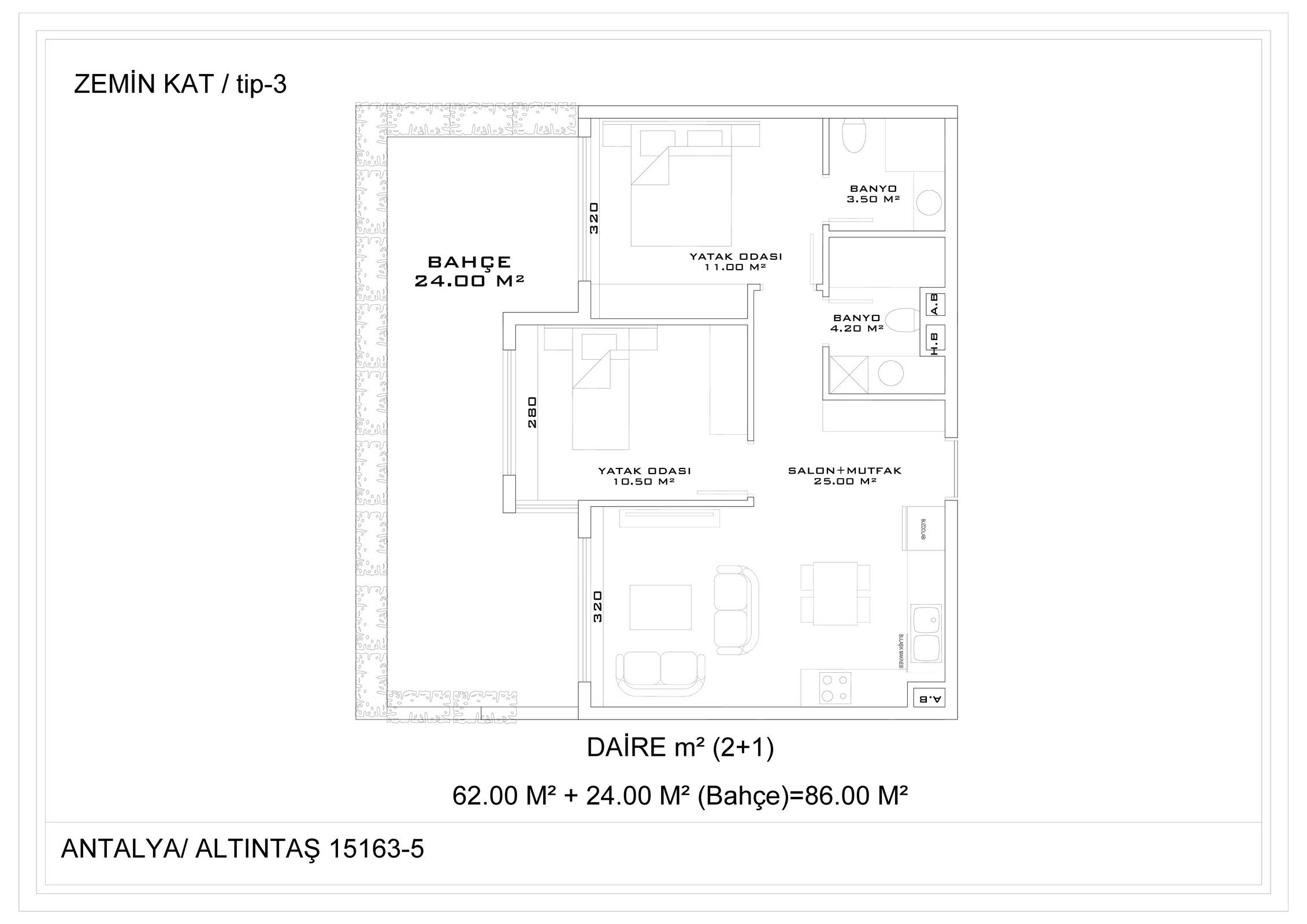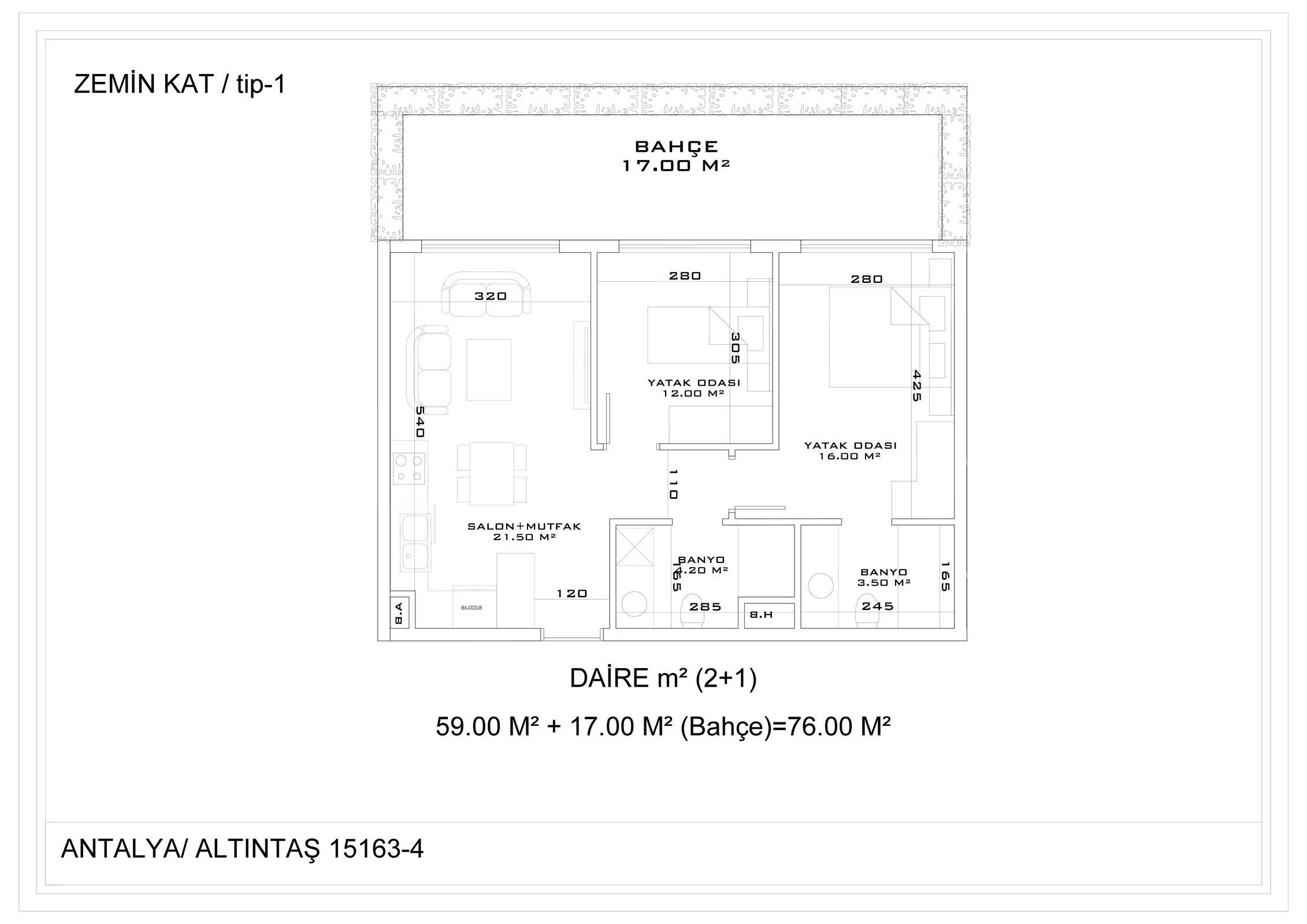 Всего 331 квартира в 3 блоках комплекса: 1+1, 2+1. Есть апартаменты с собственным садиком и с собственной террасой с бассейном.