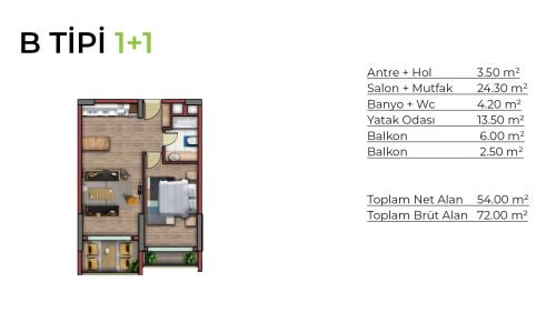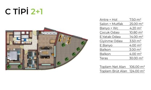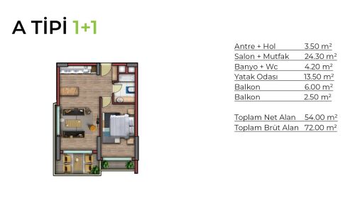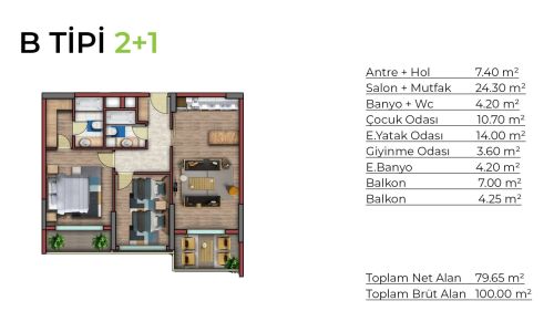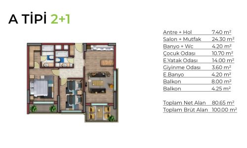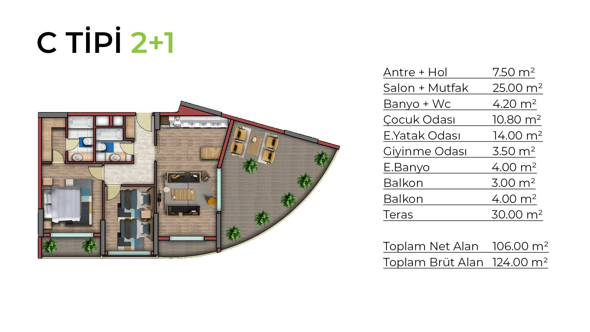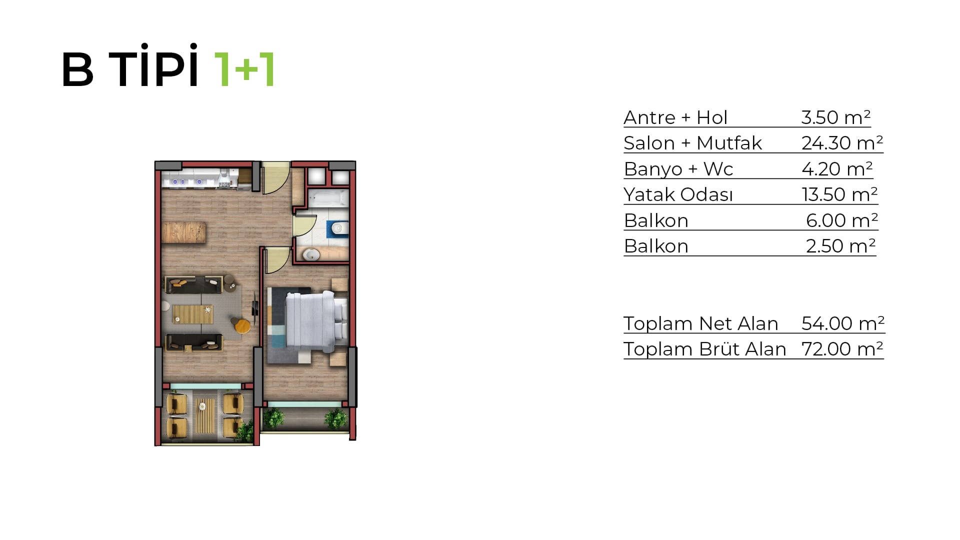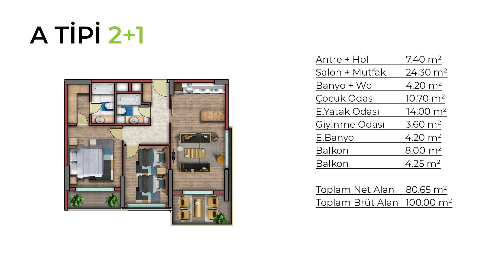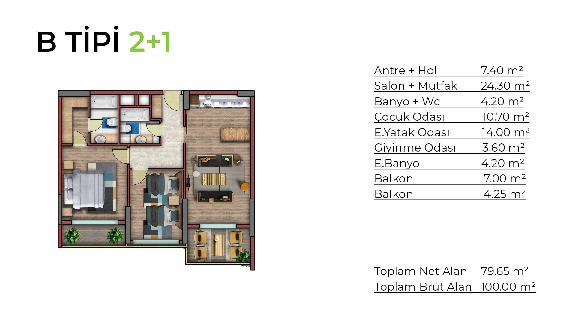 🔻 В наших квартирах 2+1 есть гардеробная и ванная комната.