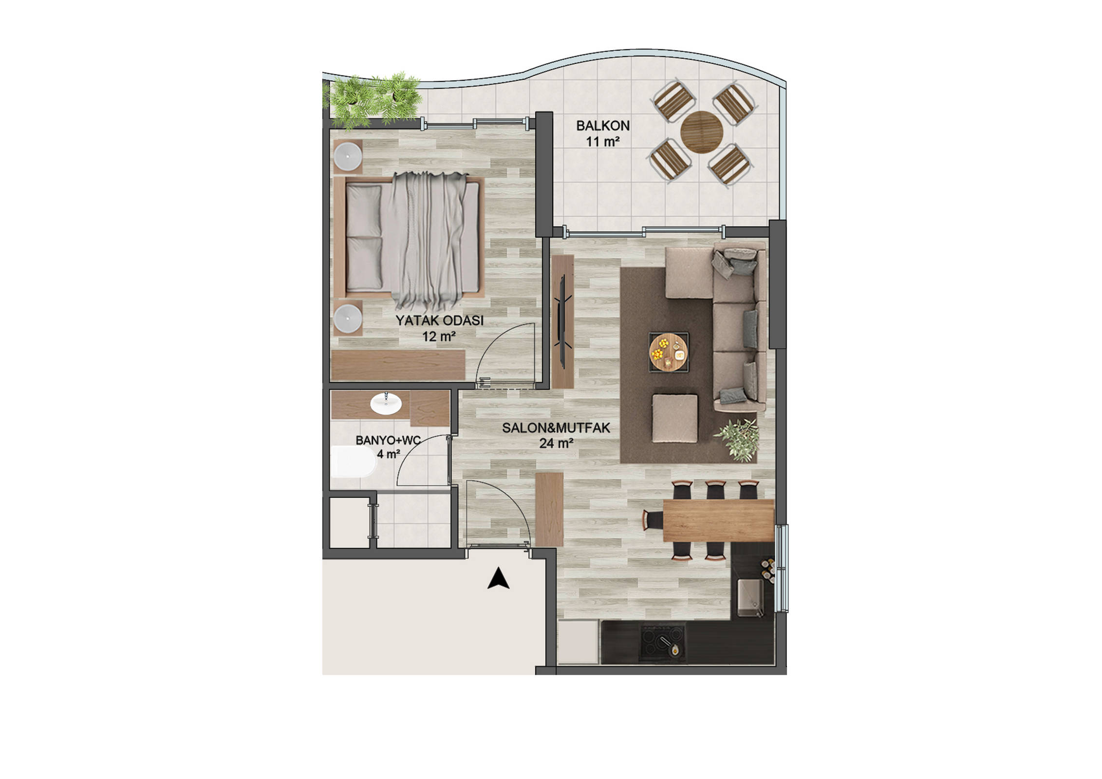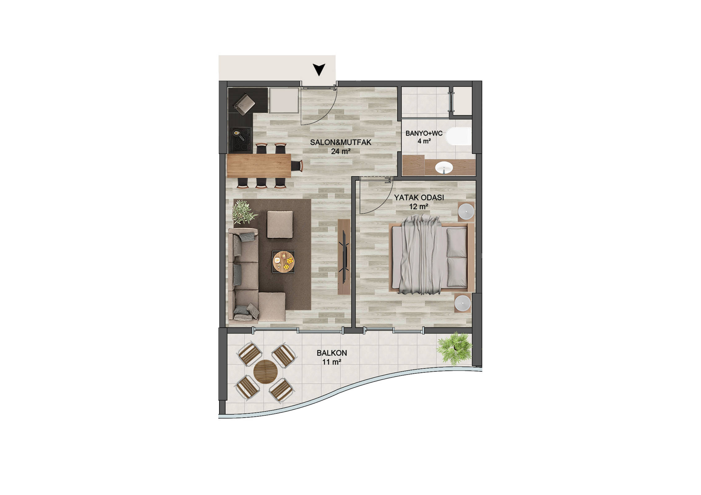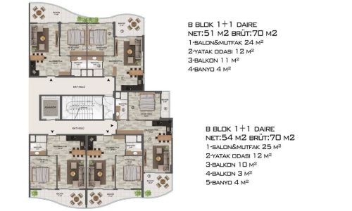 Просторные квартиры 1+1 и 2+1 с дизайнерской отделкой под ключ.