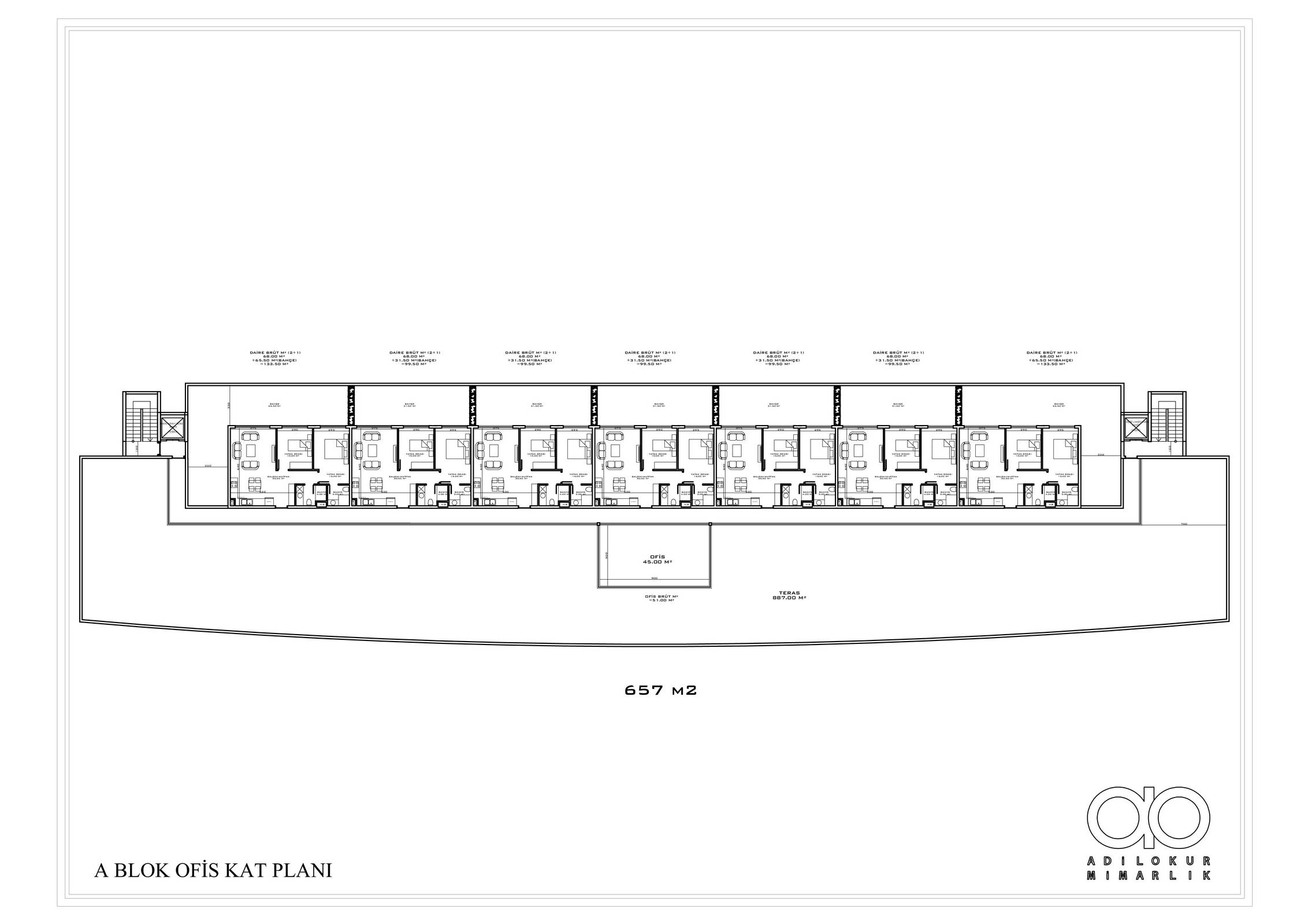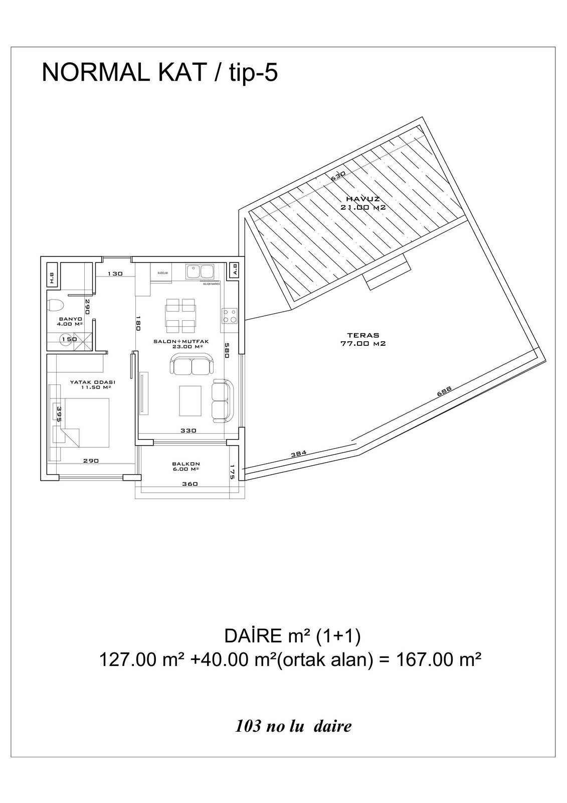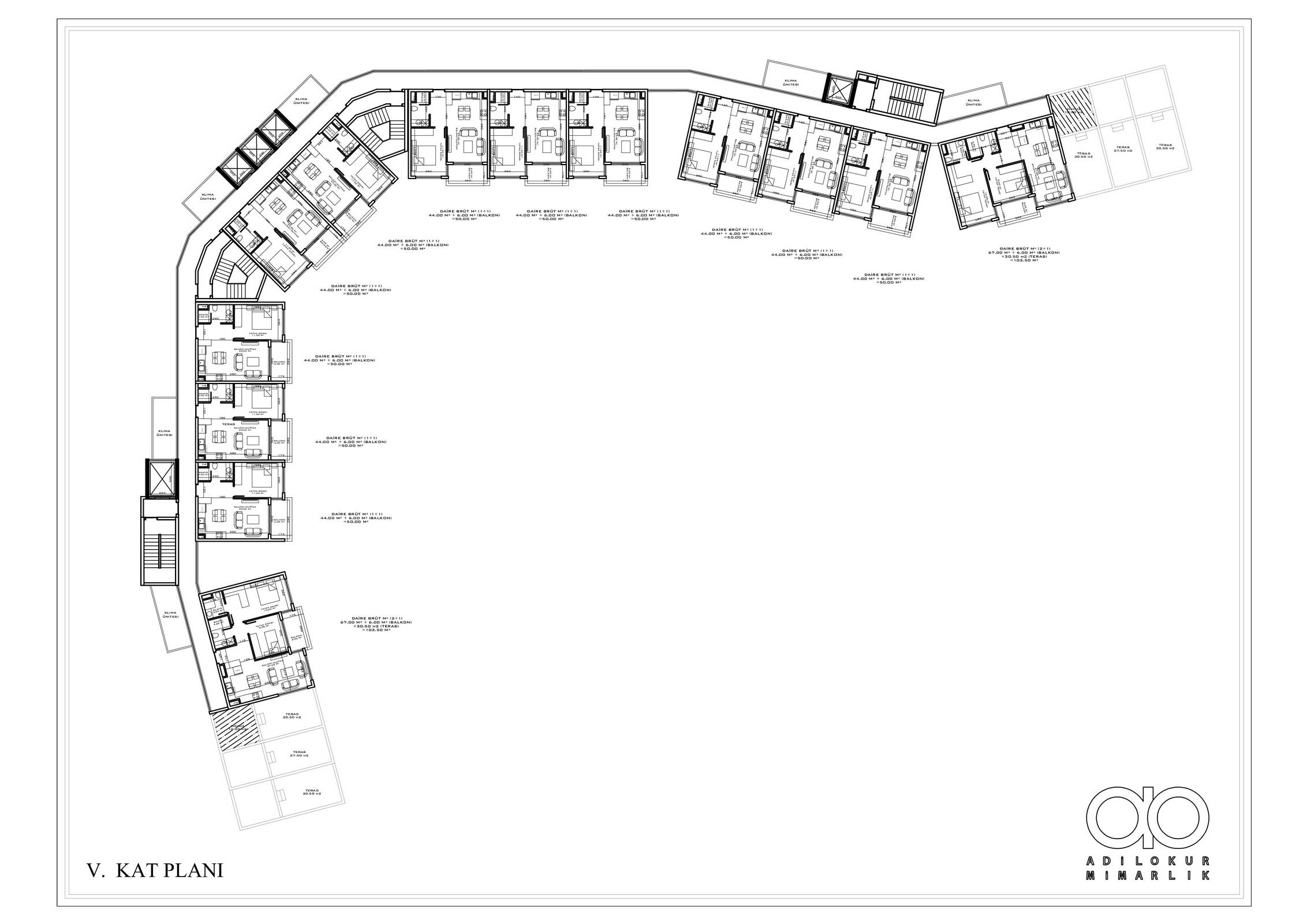 ● 5 Дуплексных пентхаусных 2+1 (92.5 – 93.5 – 155.5 m²)