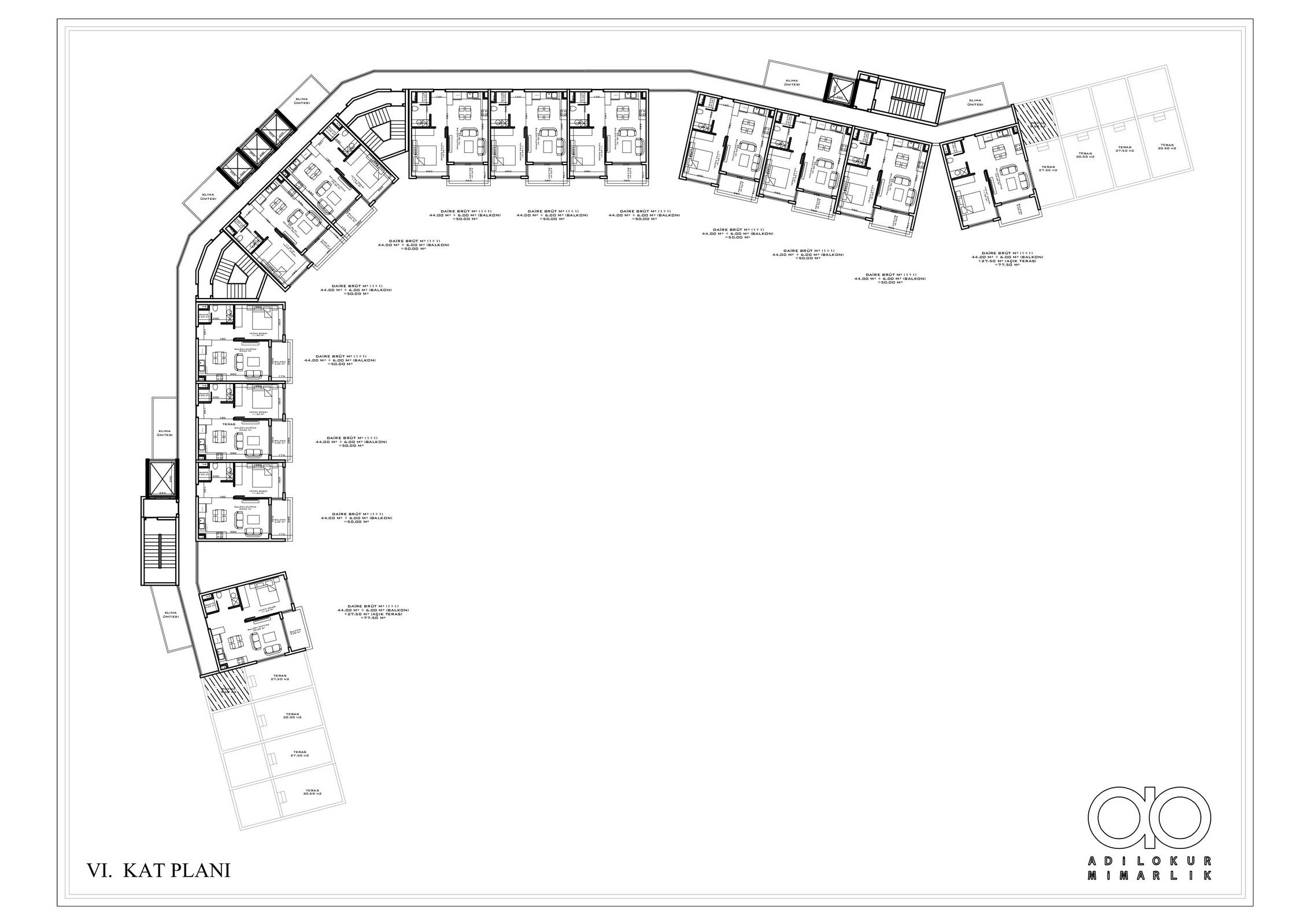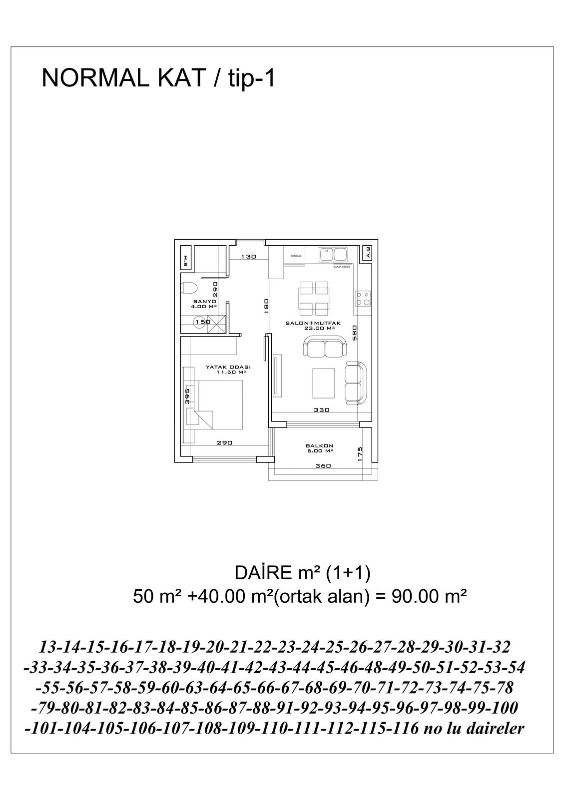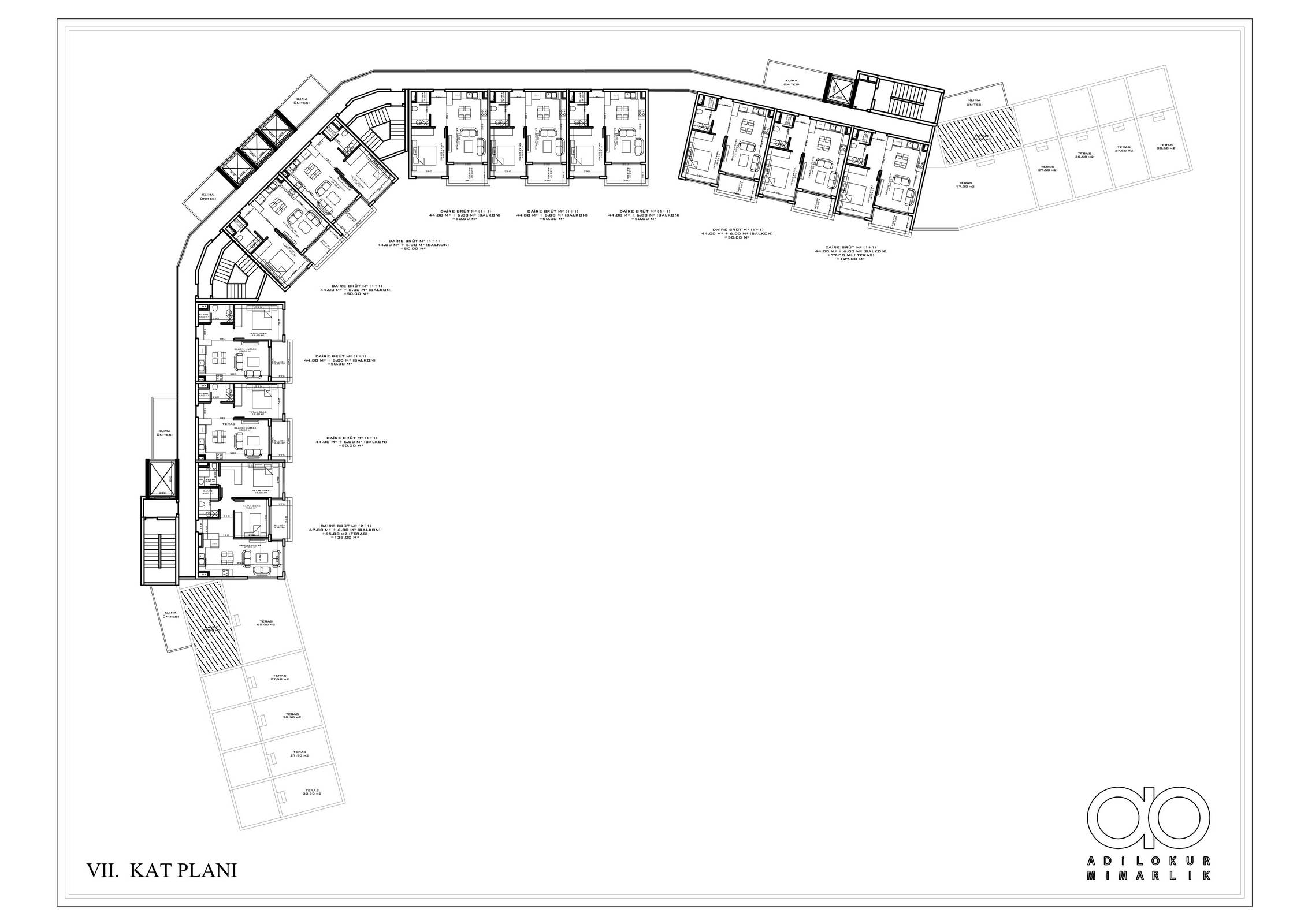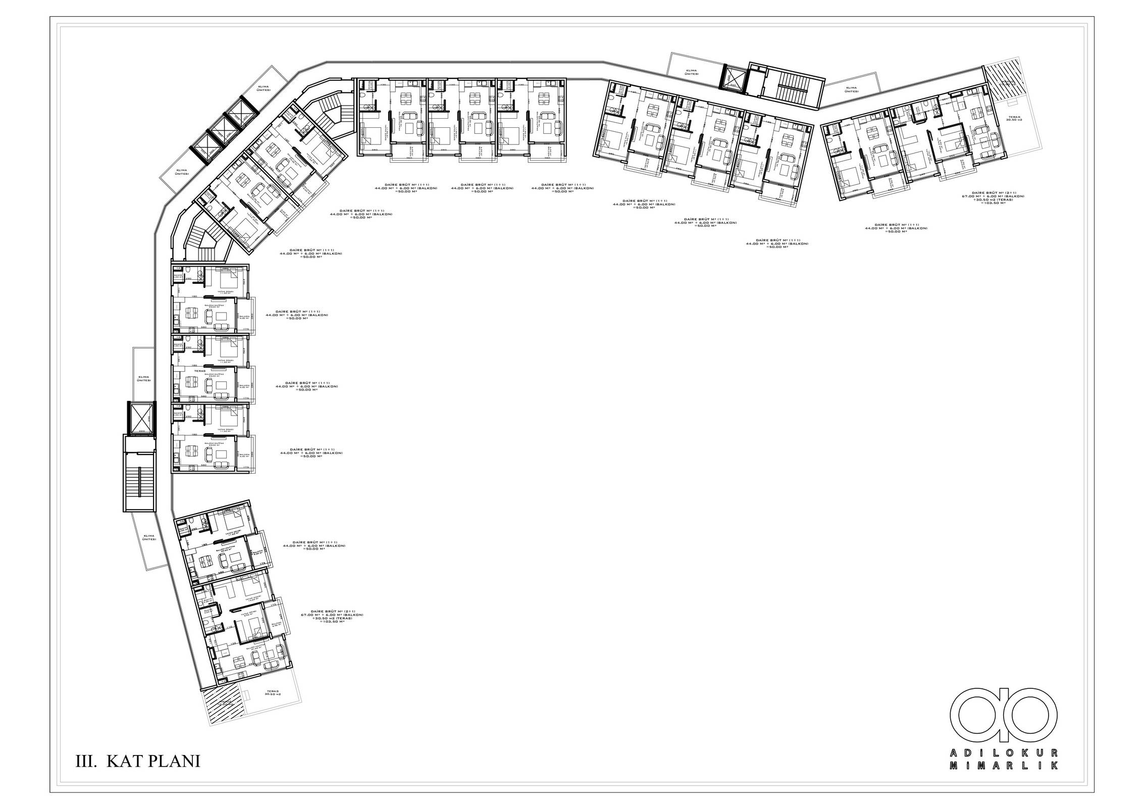 ● 5 Дуплексных пентхаусных 2+1 (92.5 – 93.5 – 155.5 m²)