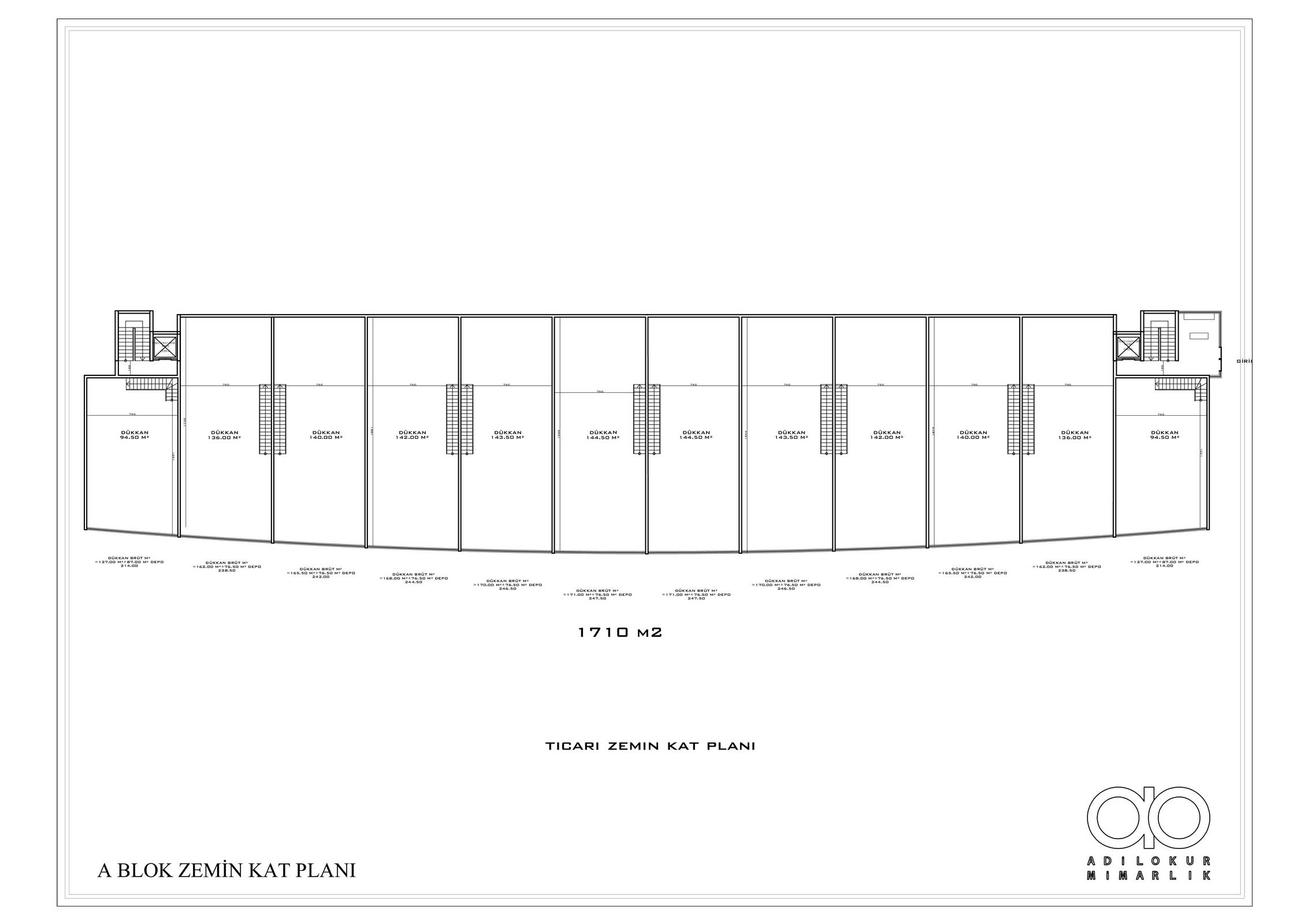 ● 12 уличных магазинов (300 м²) с антресольными этажами и складами,