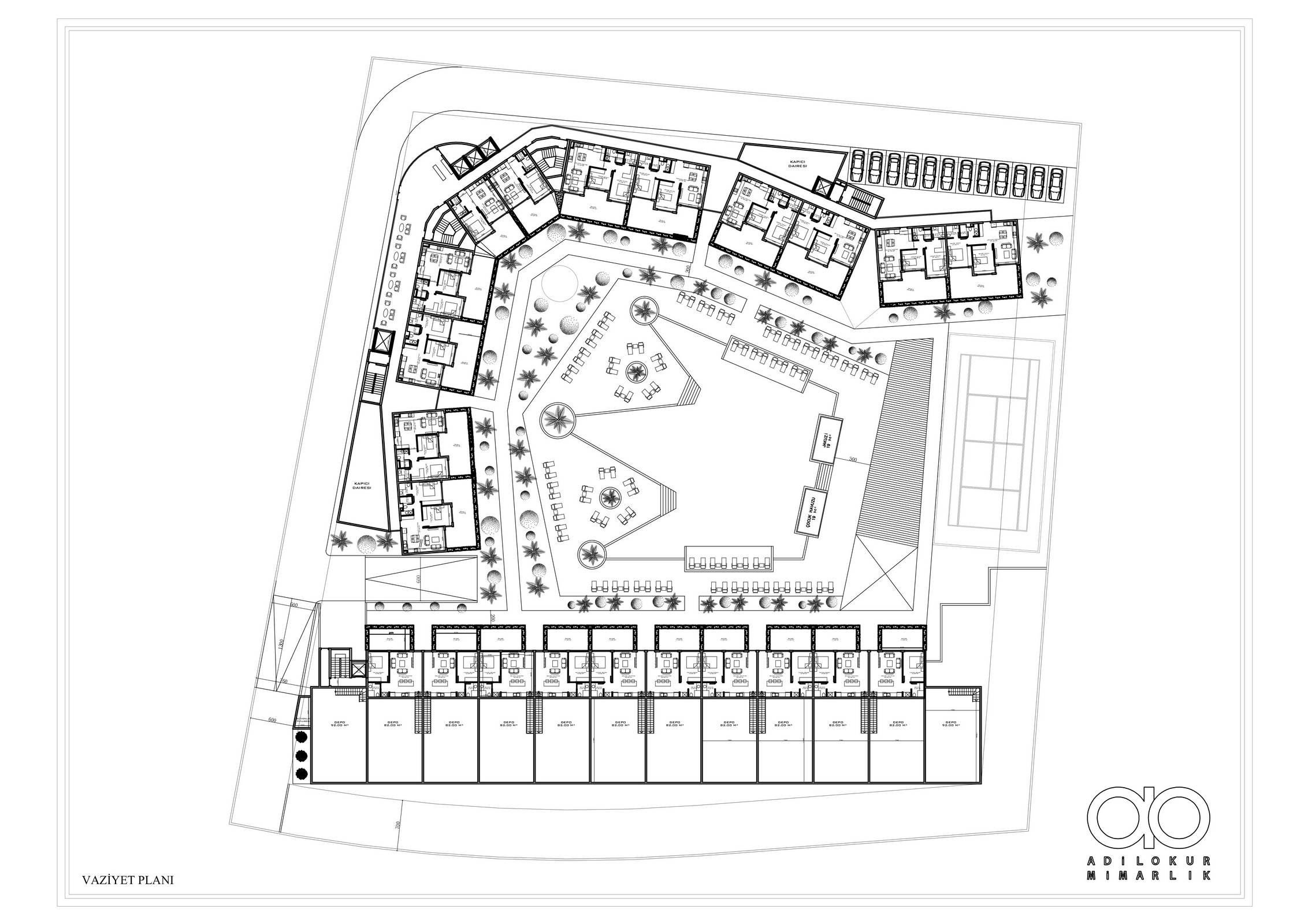 ● 99 обычных квартир и 1+1 с бассейном на террасе (50 – 83 - 131,5 м²)