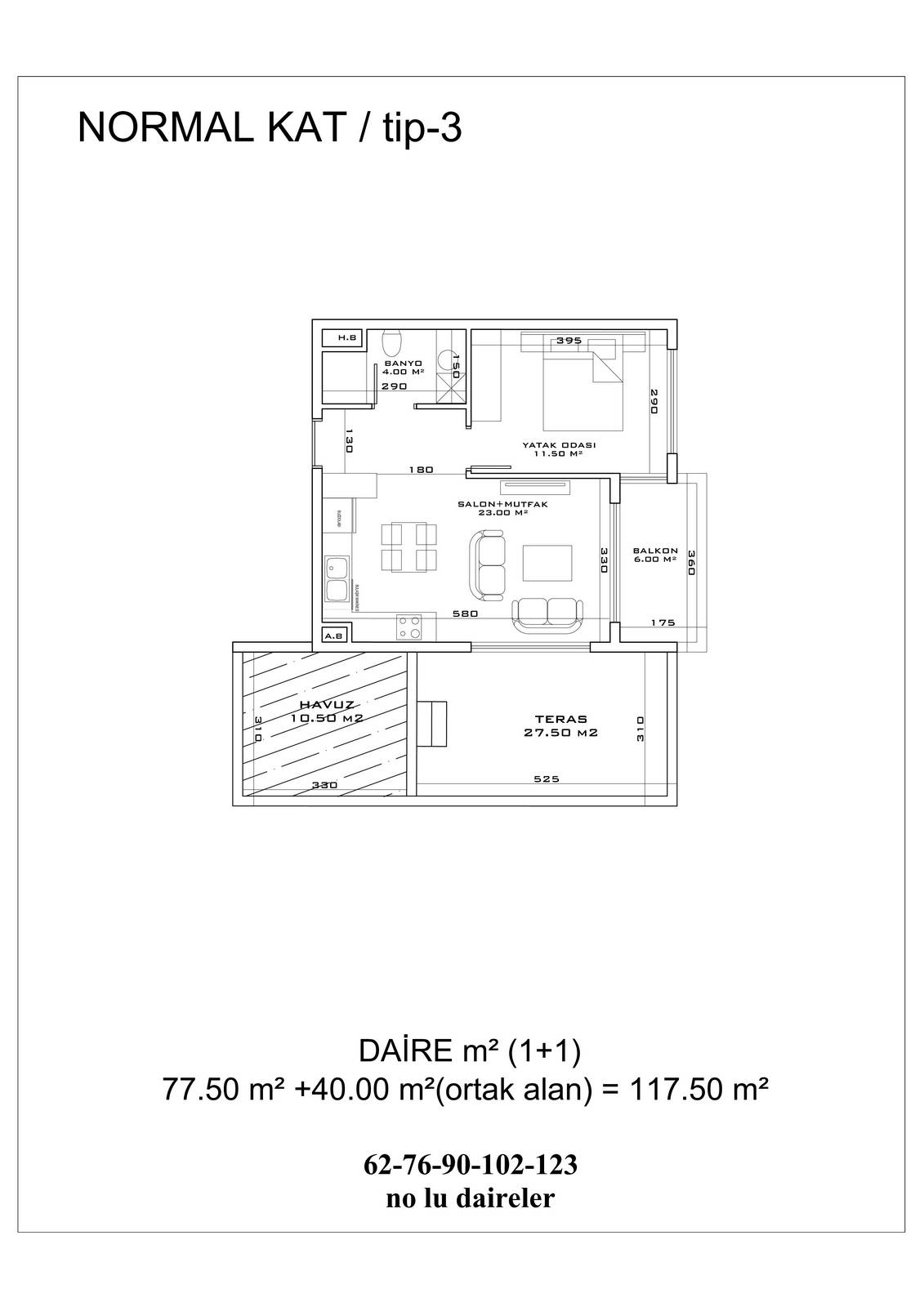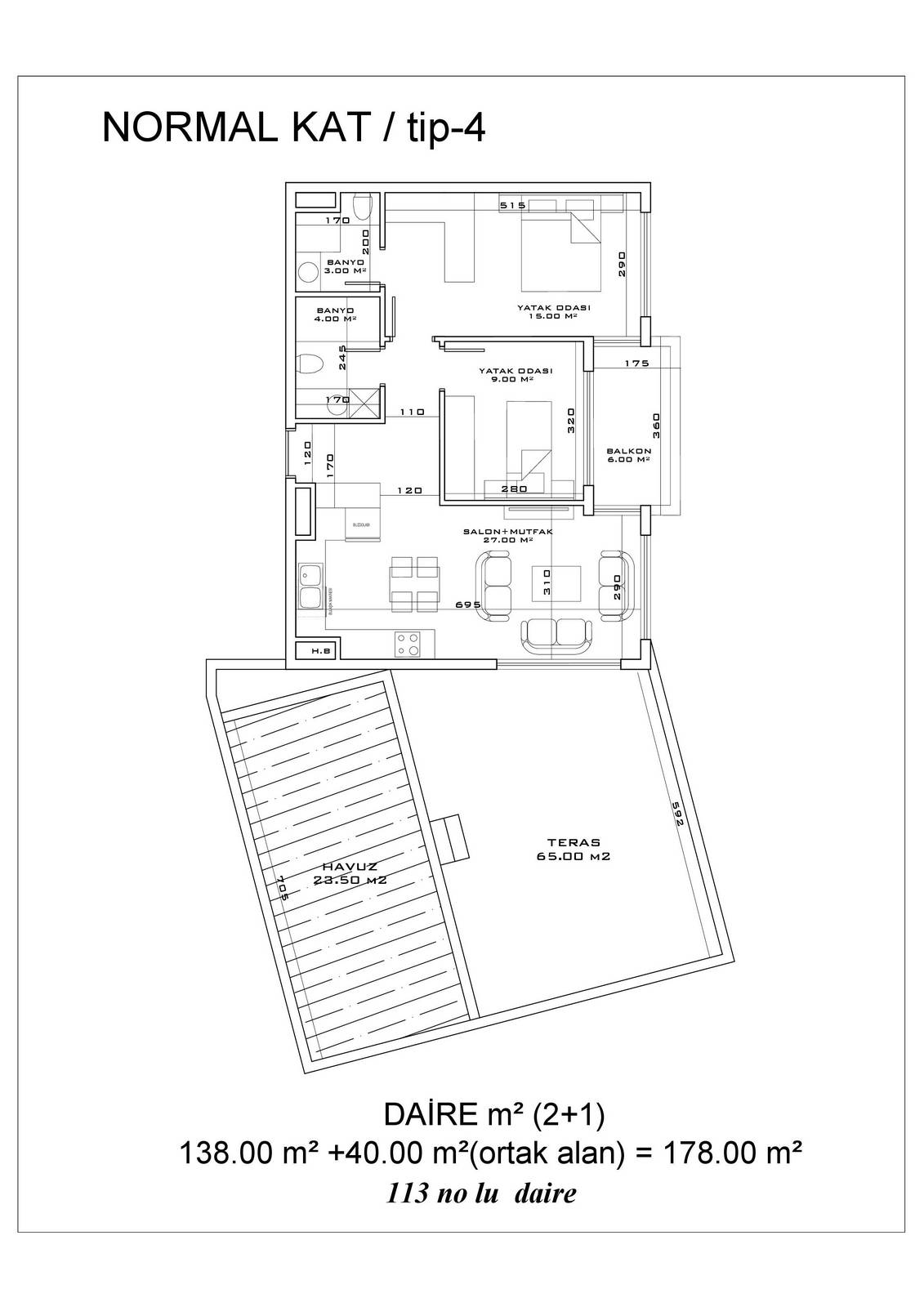 ● 6 Квартир 2+1 с бассейном на террасе 2+1 (109 -141.5 m²)