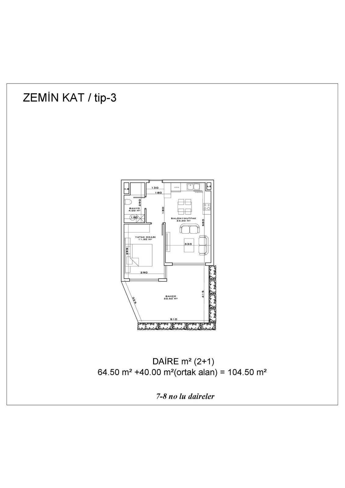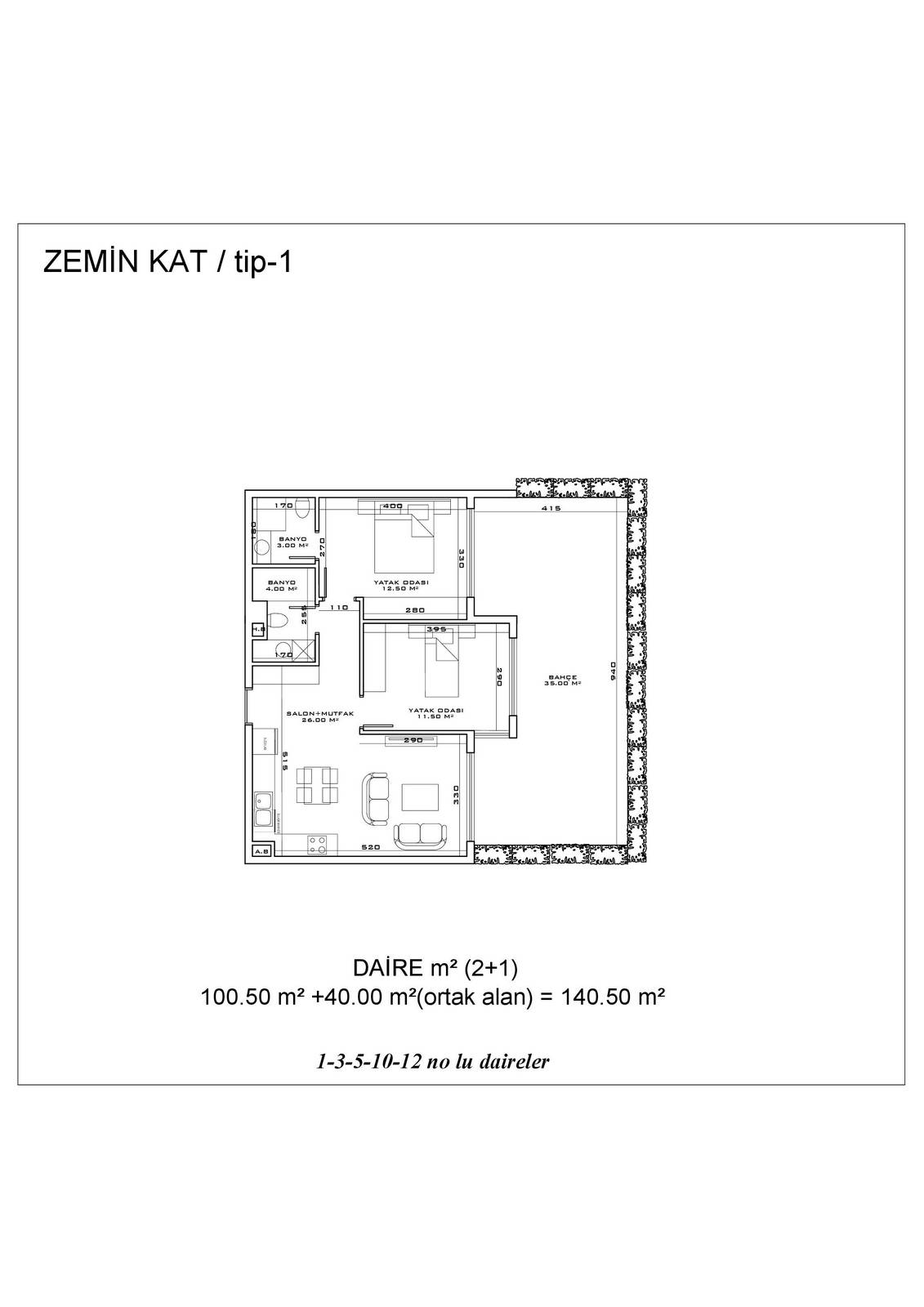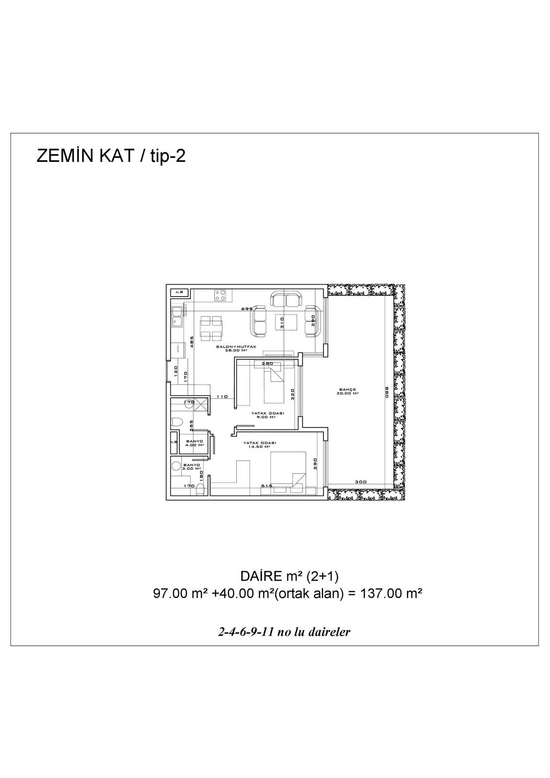 ● 10 Квартир 2+1 с выходом в сад 2+1 (97 – 110.5 m²)