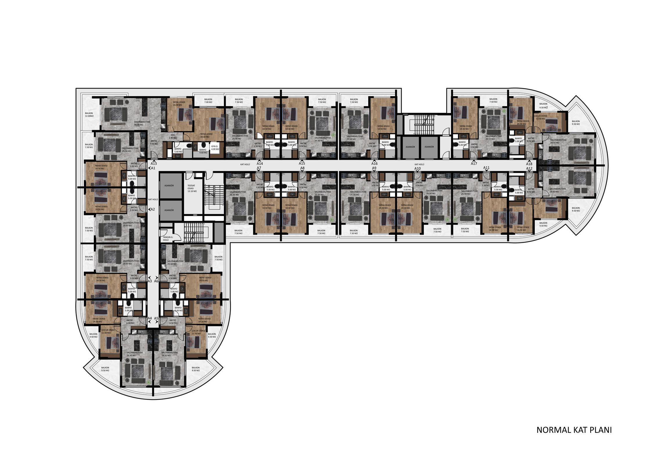 2+1 - 2 балкона / 2 ванные комнаты