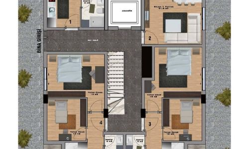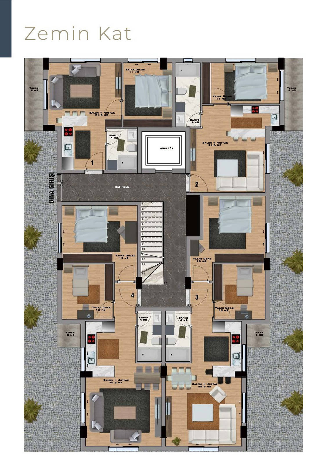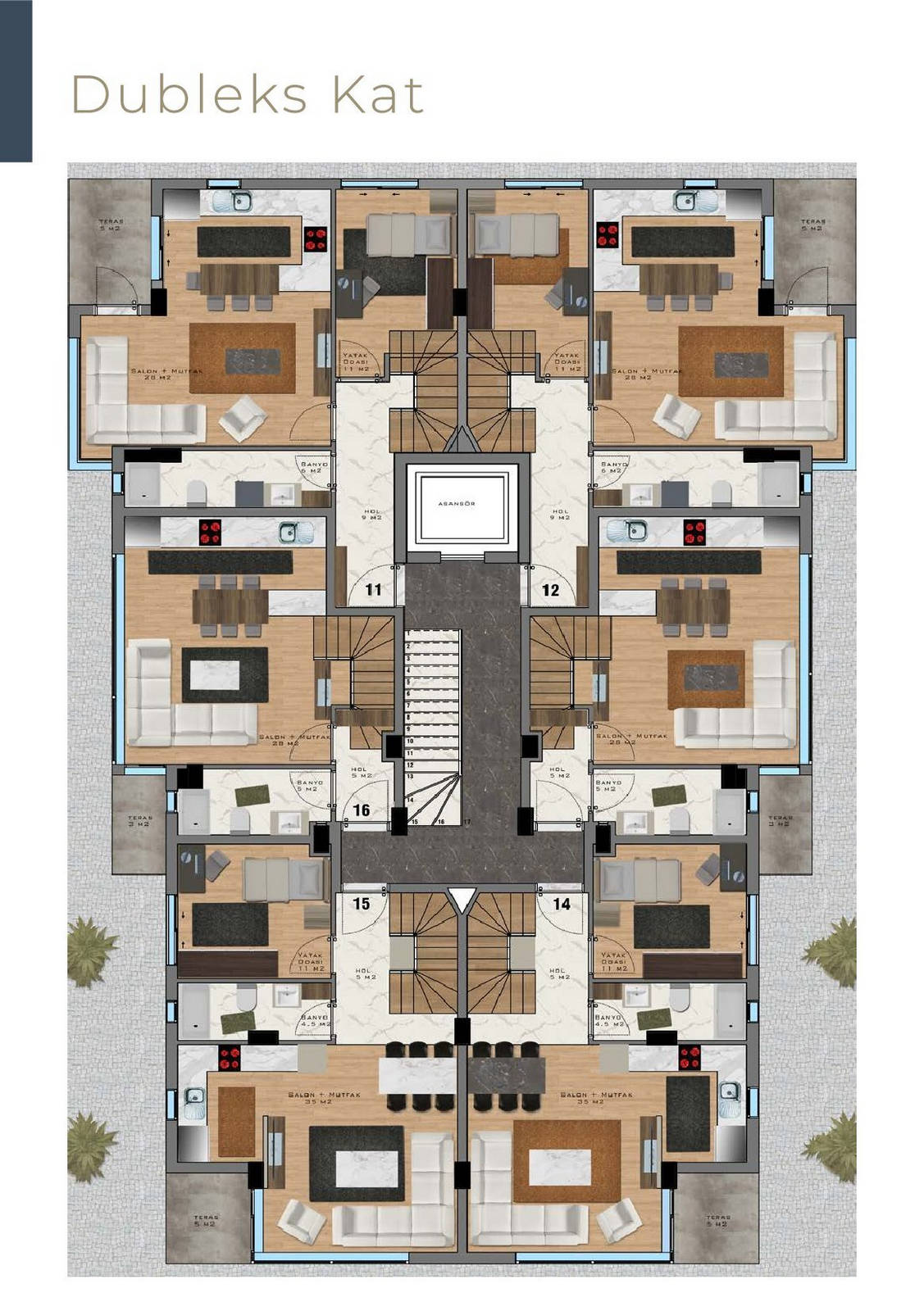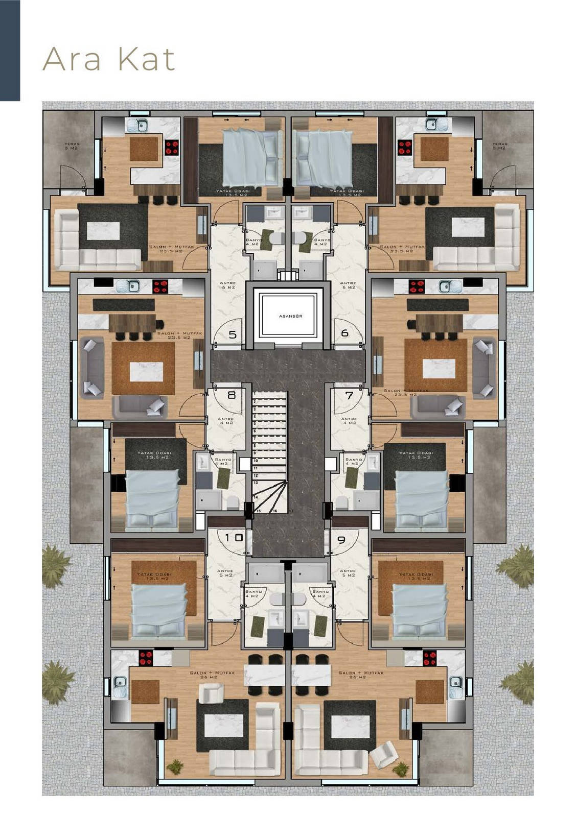 Это комплекс для тех, кто ценит качество жизни, доступность инфраструктуры и , в то же время, покой и уединенность. В комплексе всего 16 апартаментов, поэтому вы сможете наслаждаться тишиной дома, находясь при этом в самом центре шумного города. Расположение комплекса позволяет вам за 5 мин дойти до набережной Лары с кафе и ресторанами, по популярного парка «Дюден» и самого Дюденского водопада. Особенностью комплекса является то, море находится так близко, что вы сможете любоваться им, находясь даже на нулевом этаже.