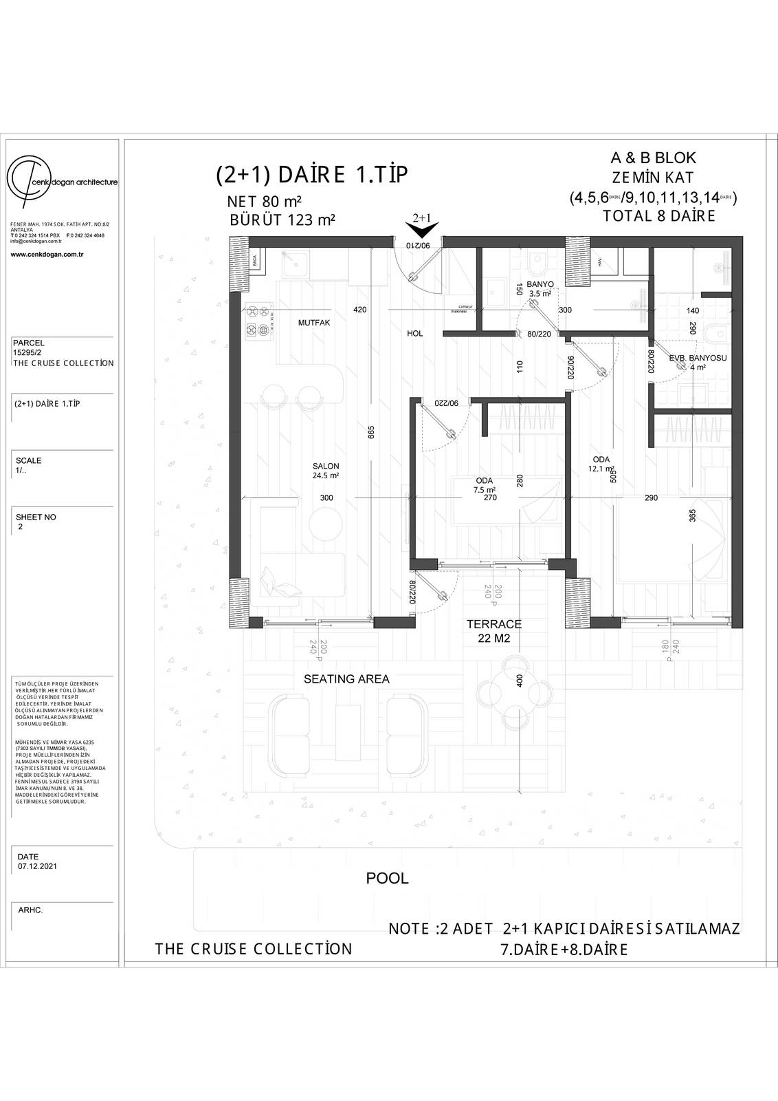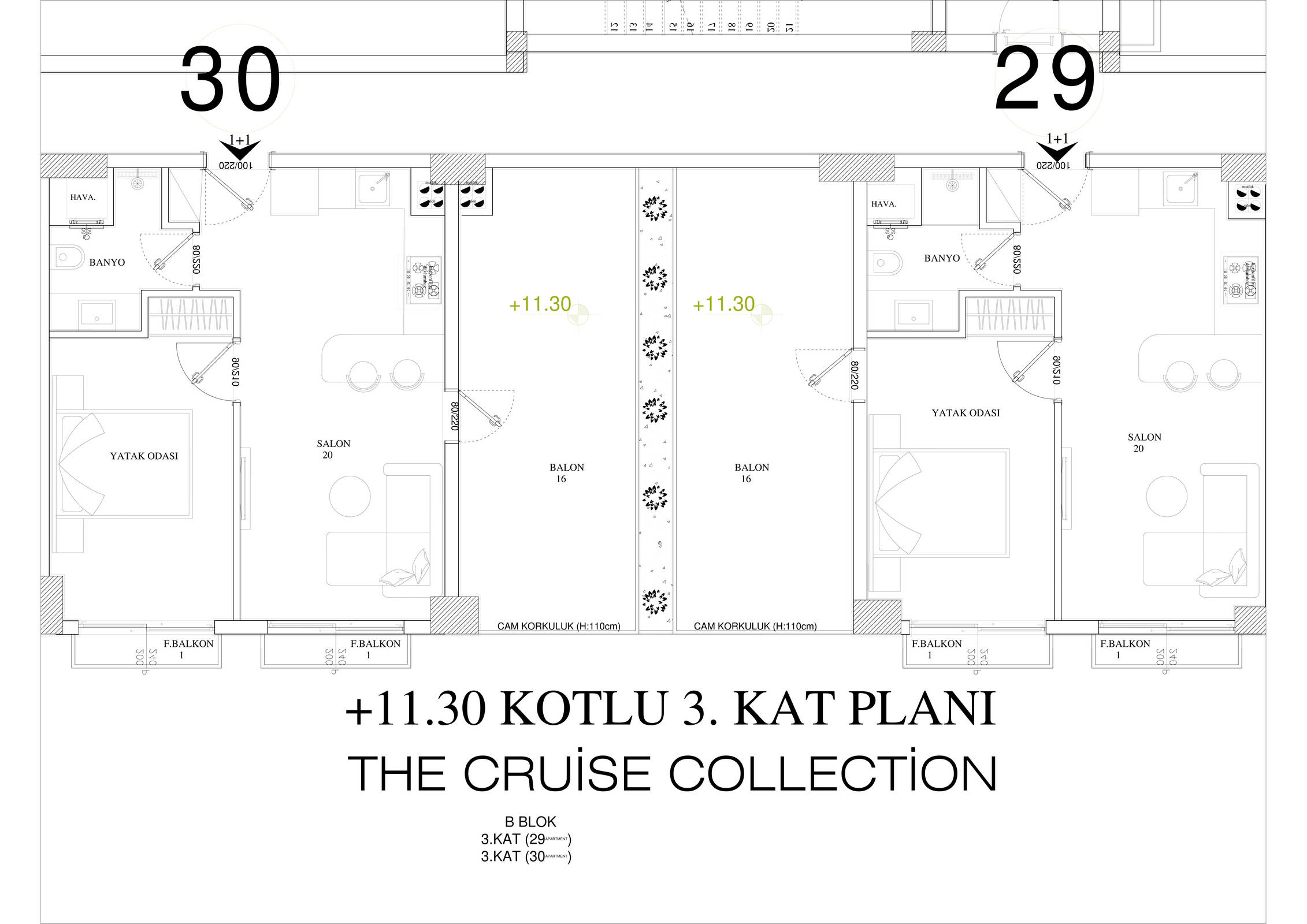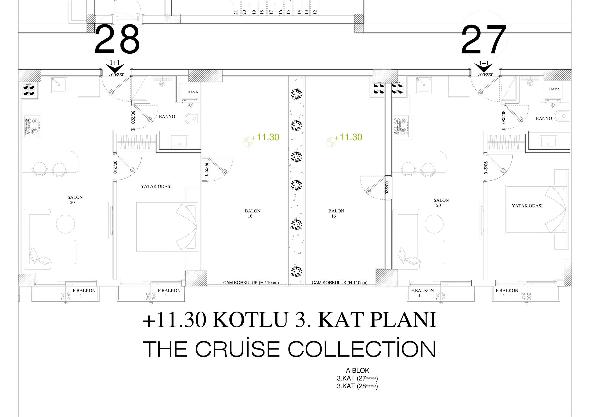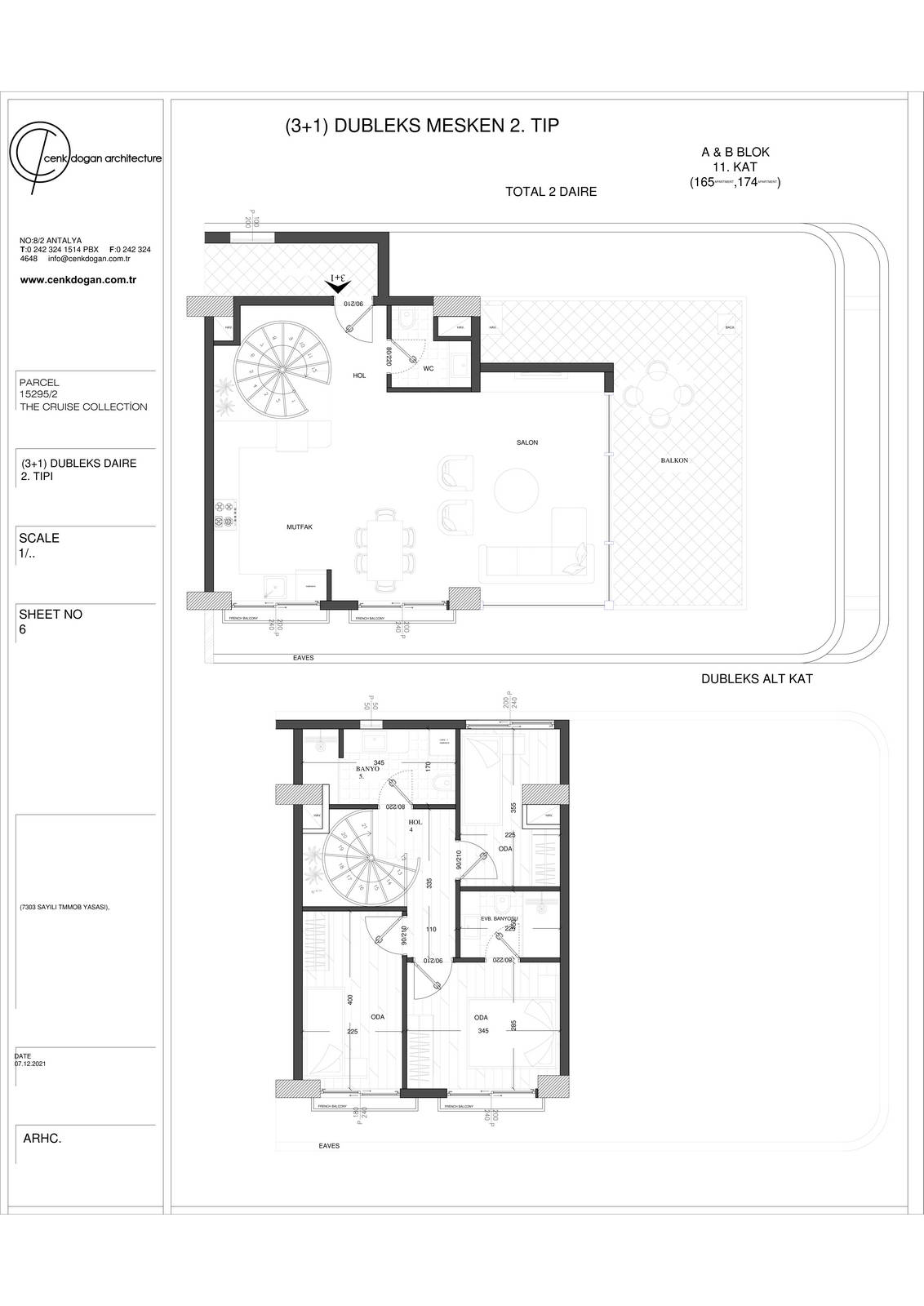 В проекте, который включает в себя 174 квартиры, включая 1 офис, 1+1 площадью 87 м², 2+1 площадью от 110 до 145 м² и 3+1 площадью от 163 до 186 м². Все квартиры расположены на южной стороне, а также все они выходят на