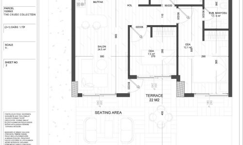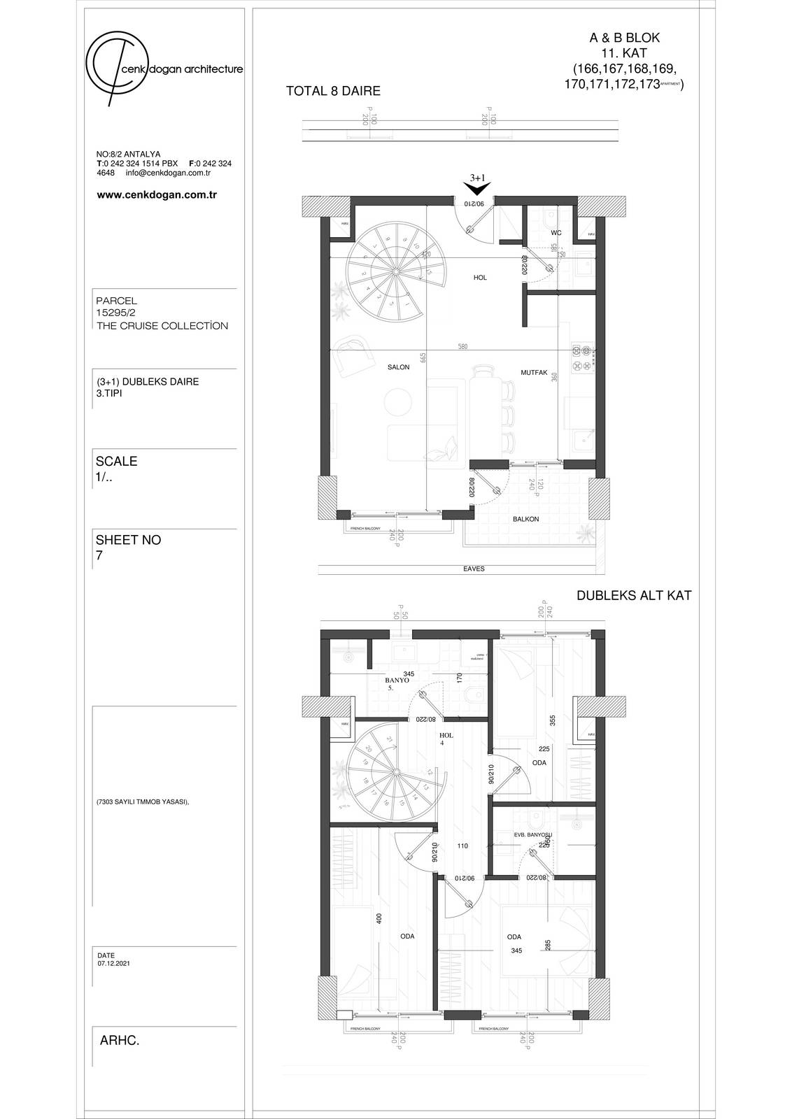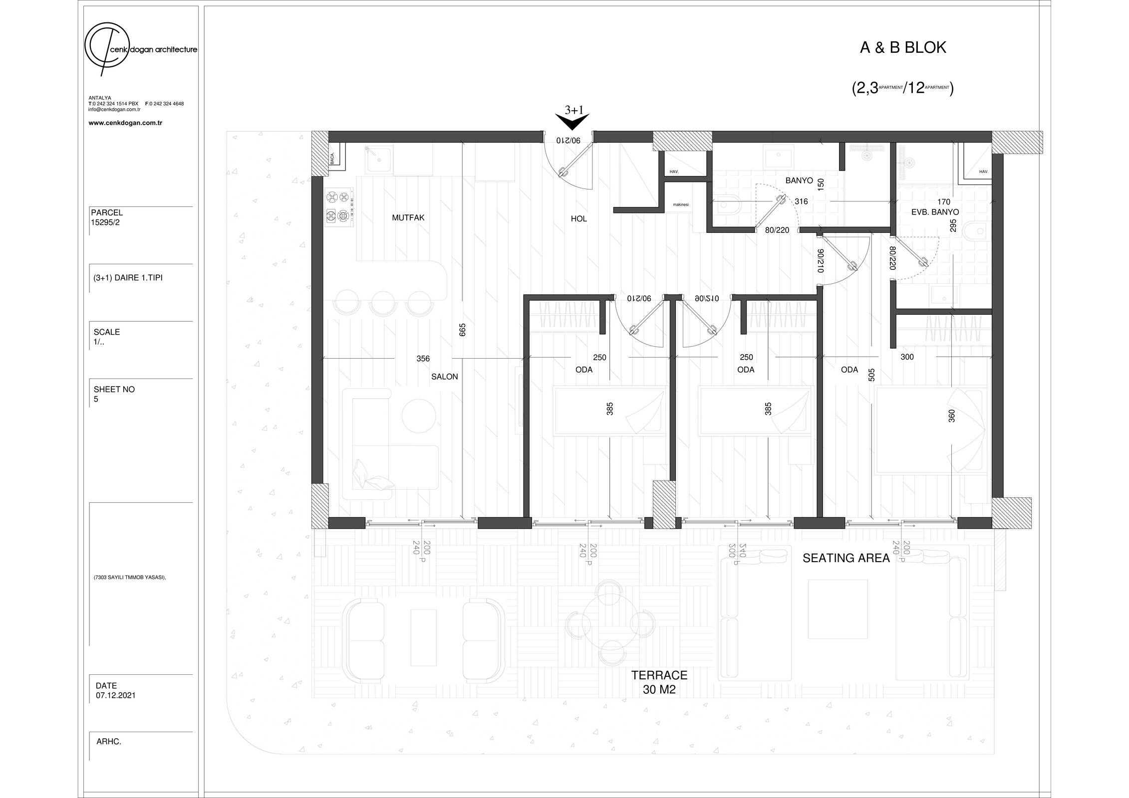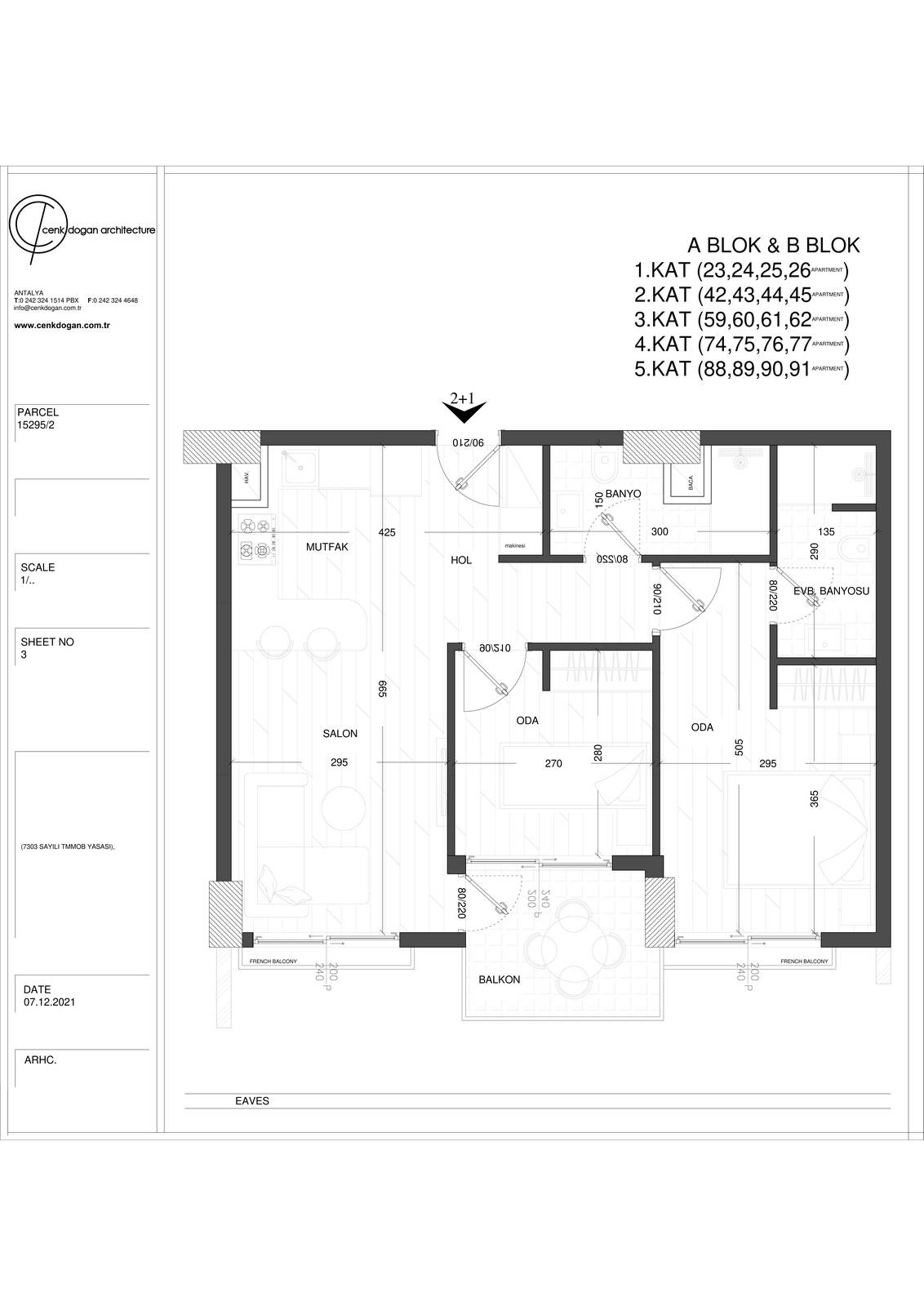 В проекте, который включает в себя 174 квартиры, включая 1 офис, 1+1 площадью 87 м², 2+1 площадью от 110 до 145 м² и 3+1 площадью от 163 до 186 м². Все квартиры расположены на южной стороне, а также все они выходят на