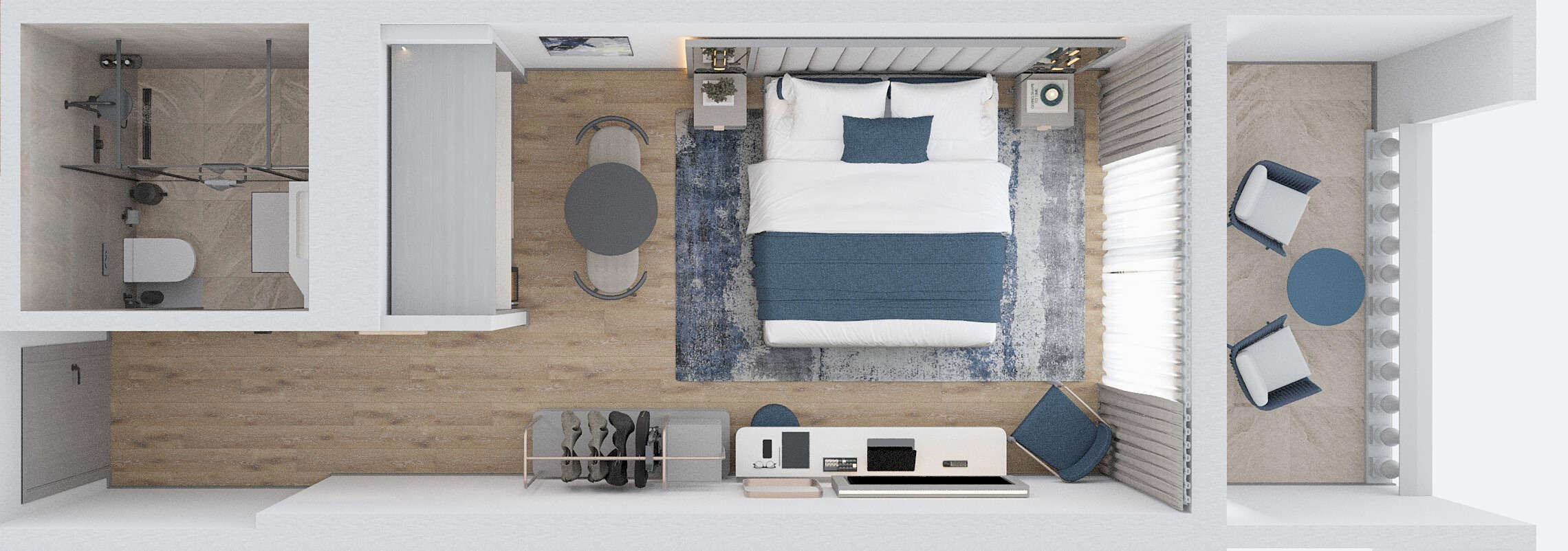Однокомнатный номер с кроватью king-size или twin, санузлом и балконом. Доступны виды на море и горы. - Deluxe – от 50,9 м²