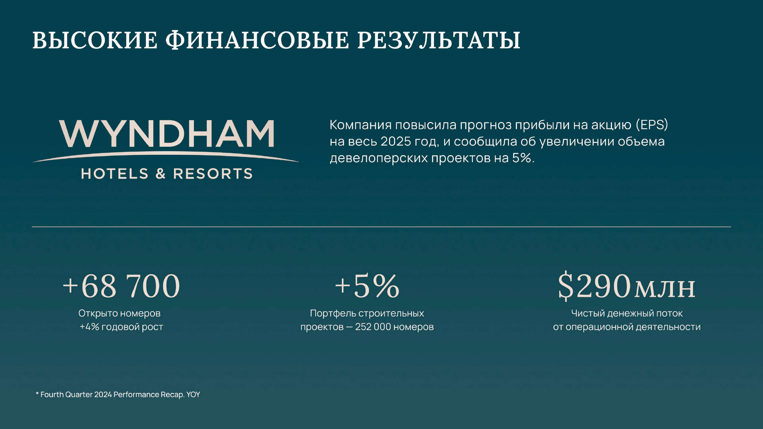 Все сервисы работают по стандартам международной сети Wyndham Hotels & Resorts и управляющей компании Aimbridge Hospitality, которая управляет более чем 1 500 отелями по миру.