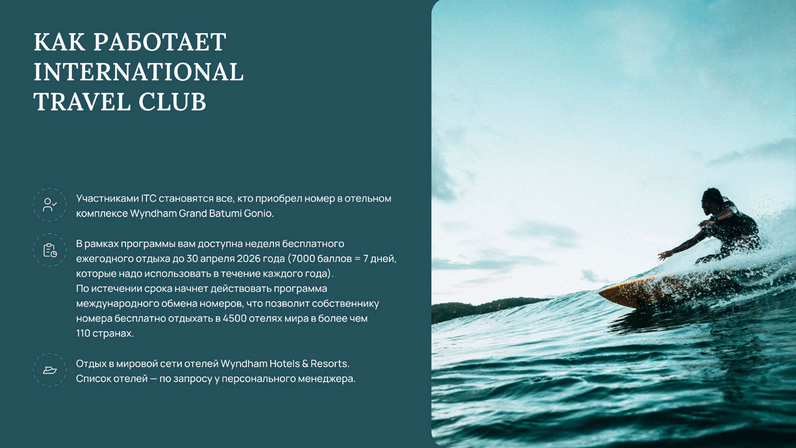 - первый в Грузии all inclusive-комплекс уровня Wyndham Grand с крупнейшей инфраструктурой;