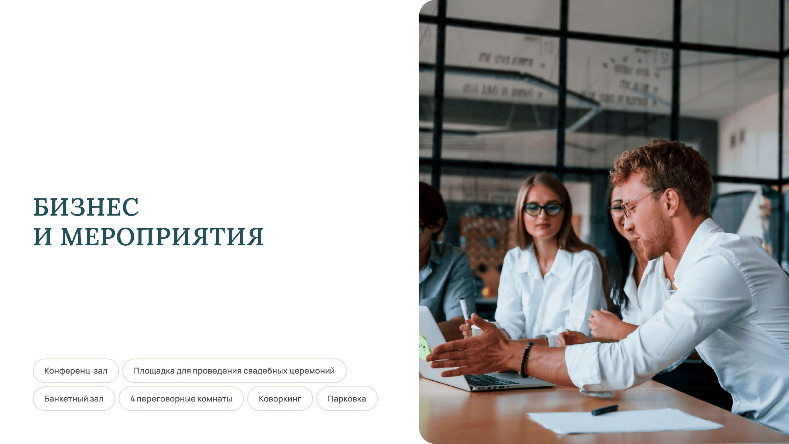 - конференц-центр, коворкинг, залы для мероприятий, свадеб и банкетов;