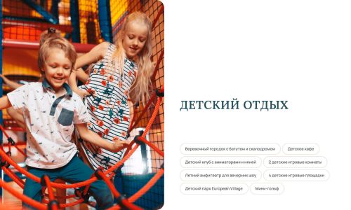- семьям с детьми — из-за аквапарка, детских клубов и семейной инфраструктуры;