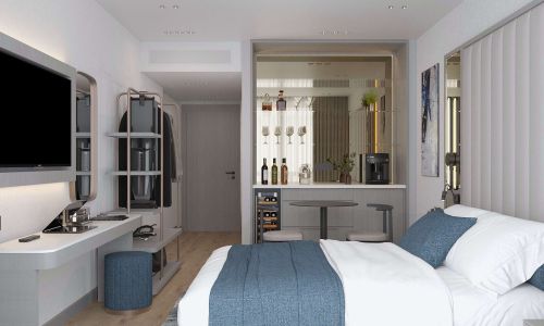 Все юниты передаются с дизайнерской отделкой “под ключ” и гостиничным оснащением — мебель, техника, сантехника, текстиль, что позволяет сразу запускать объект в аренду через управляющую компанию.