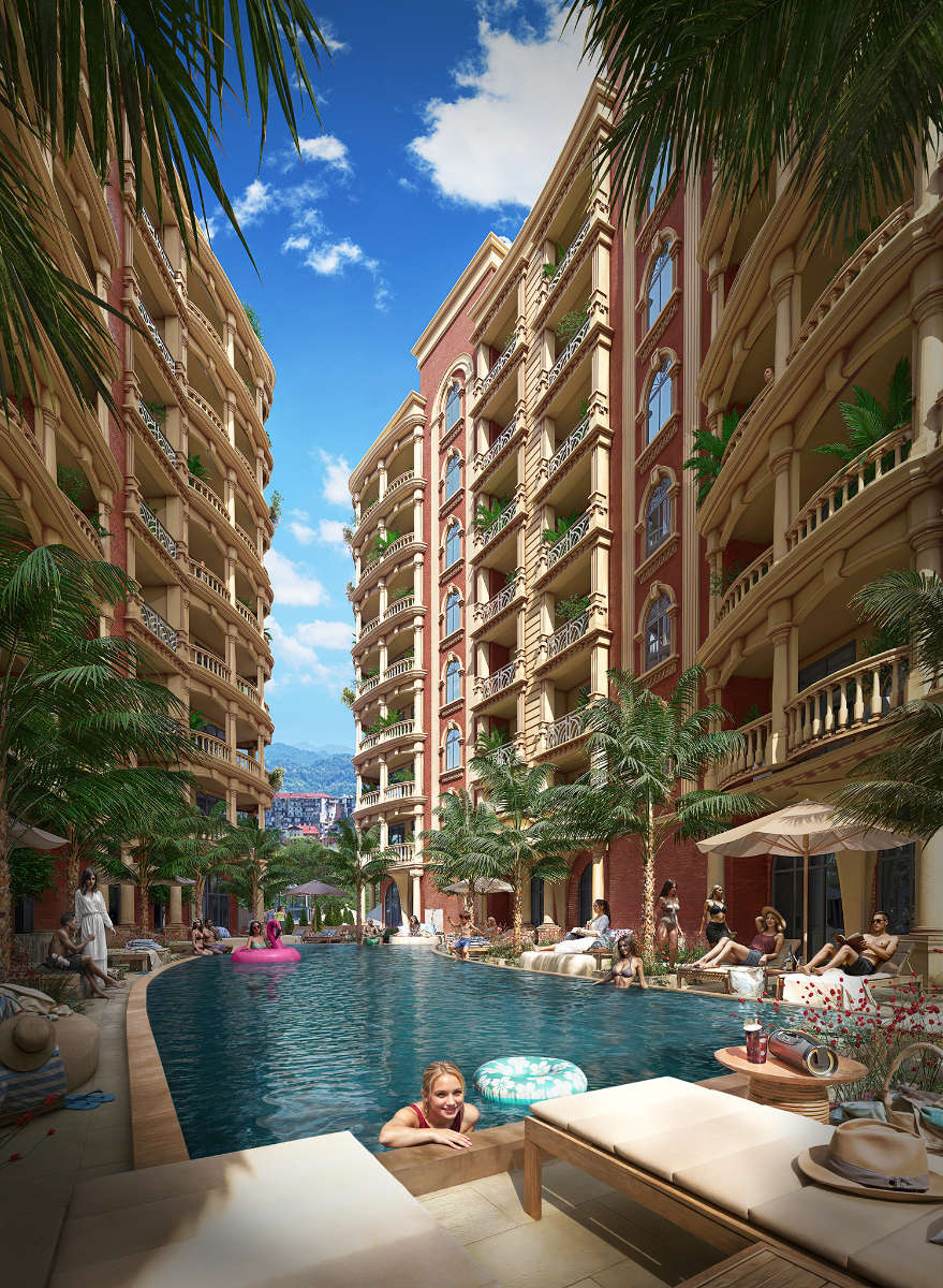 Проект сочетает формат hotel residences (отельные резиденции с доходом от управления) и клубную жилую концепцию: собственник получает и доход в долларах, и возможность пользоваться номером как вторым домом у моря, и расширенные туристические привилегии (RCI, Travel Club, отдых в отелях WorldHotels по миру).